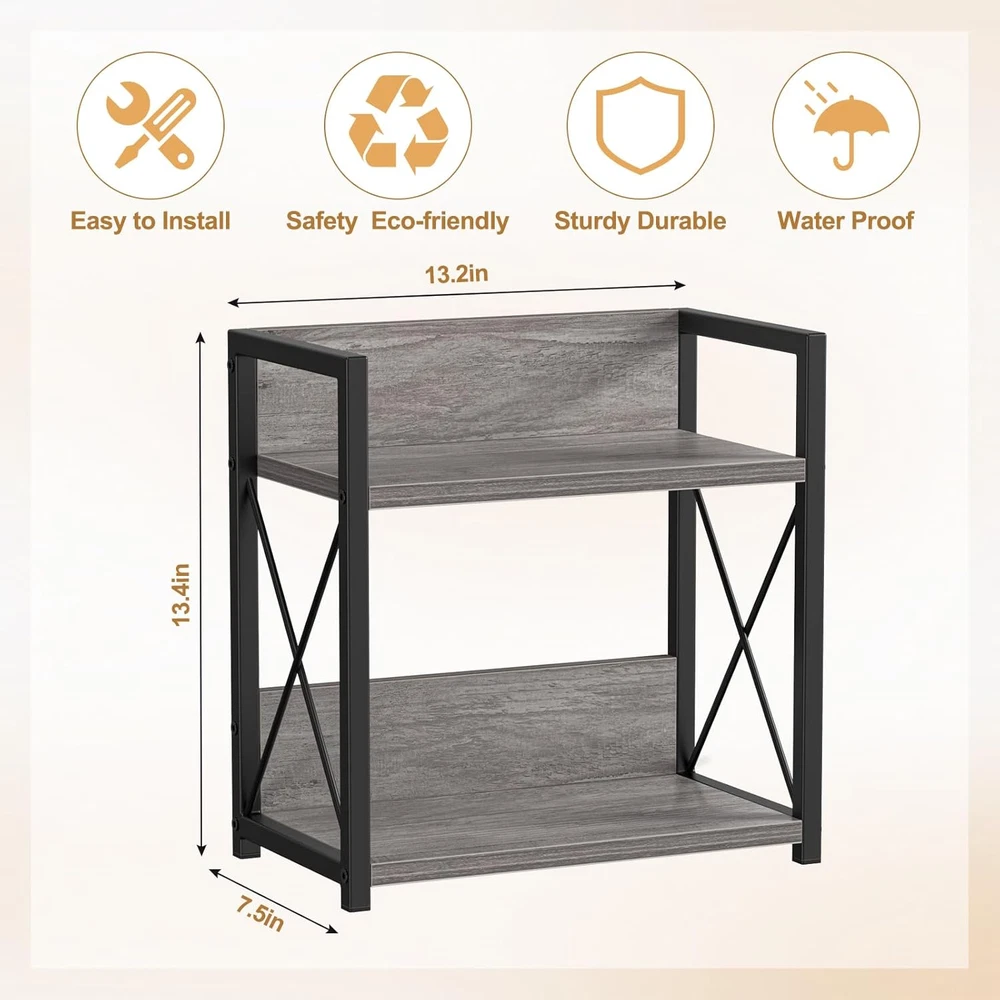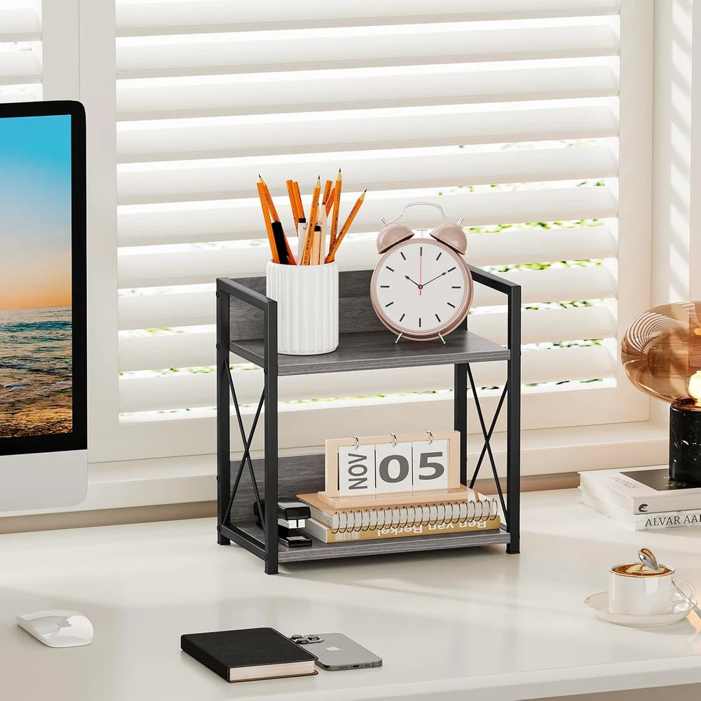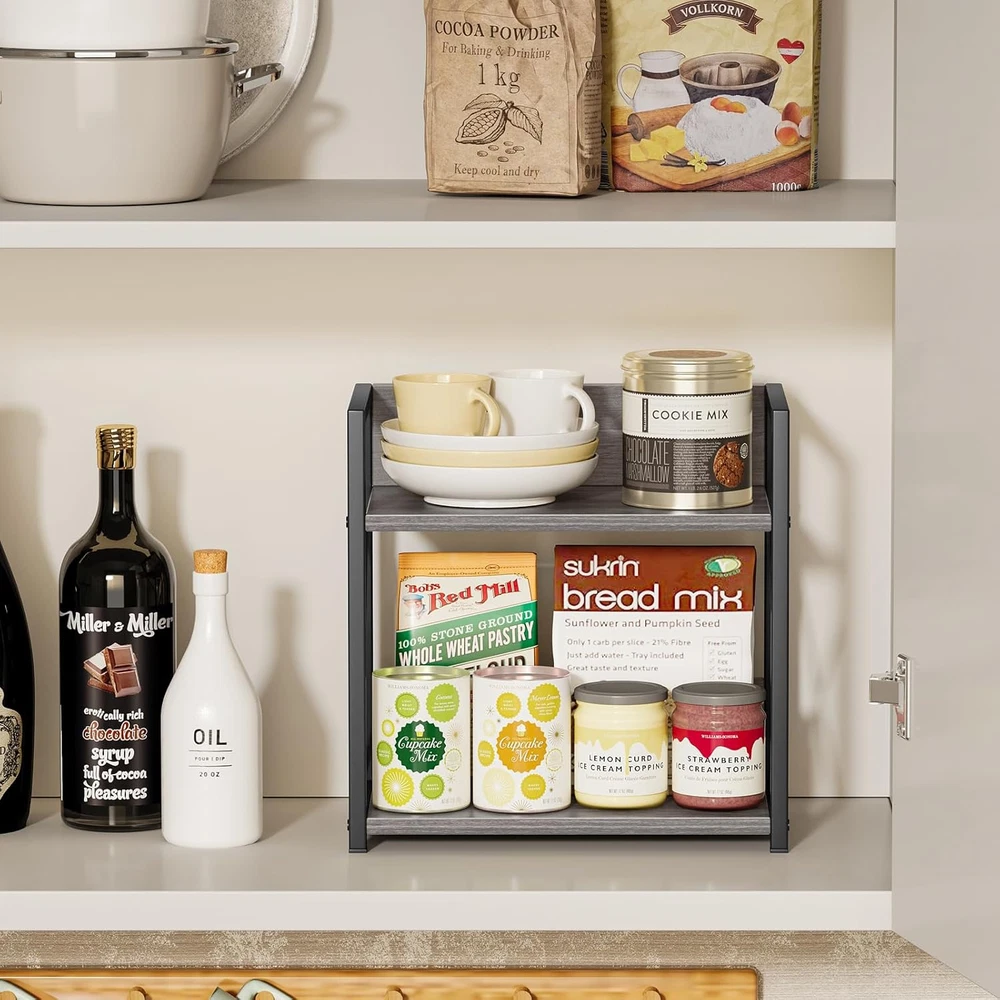 This tiered shelf is a lifesaver for small spaces! It keeps my kitchen counter organized with its sturdy two-tier design—perfect for spices, coffee supplies, or office essentials. The grey finish fits any decor, and assembly was quick with the included tools. Compact yet spacious, it’s a must-have for decluttering!