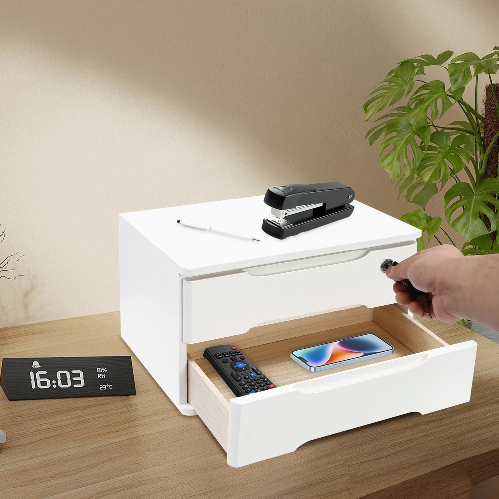 2-Tier Lockable Wooden Desk Organizer with Storage Drawers