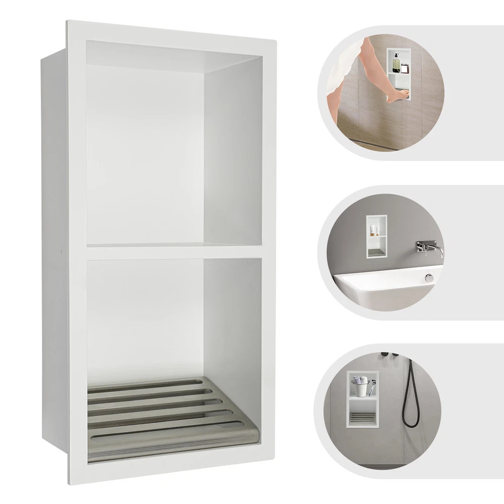 Specifications Color: White Style: Modern Shape: Rectangular Material: Stainless Steel Number of Tiers: 2 Mounting Type: Recessed Mount, Wall-mounted Product Size: 18*10*34cm/7.09*3.94*13.39in Package Size: 39*24*17.5cm/15.35*9.45*6.89in Gross Weight: 2kg/4.41lbs Net Weight: 1.9kg/4.19lbs 2 Tiers Stainless Bathroom Recess Recessed Storage Cabinet Wall Recessed Cabinet Description Are you still worried that you don't have enough storage space in your bathroom? Then choose our recessed storage cabinet. The premium material makes it durable and sturdy. With a generous appearance, it enhances the beauty of your bathroom. In short, it will be your storage assistant! Key Features Build to Last: Made of stainless steel, this product is impact-resistant , rust-resistant , and durable, ensuring your long-term use even in a wet bathroom environment. Highly Practical: The upper tier can be used for shampoo, razor, face cream(not included), etc. The lower tier with a footrest can be used to place your feet while you are wiping your legs , which is highly practical. Easy to Install: You only need to cut the wall into the appropriate size according to the product size, and insert/snap the product into the wall to complete the installation, without spending too much time and effort. Spacing-saving : The recessed installation allows you to maximize the potential of the wall, making good use of wall space and saving countertop space. Simple Clean-up: With its simple construction and smooth surface, you can simply wipe off surface dust with a towel(not included). Ideal Gift : Thanks to its functionality and beauty, you can give this product to your friends as a housewarming, Christmas, birthday, or Thanksgiving gift! Protective Package: To prevent the product from being damaged during transportation, we packed it with foam to protect your products to the maximum extent possible. Good Customer Service: We stand behind all our guests and look forward to assisting you with your purchase. It is our pleasure to answer your confusion and questions. The end of the story between us is not "we sell and you buy". Details White Color: It gives this product a generous appearance, adding beauty and artistic atmosphere to the space. Smooth Edges: The rounded and smooth edges not only add to the aesthetics of the product but also improve the safety of use. Application It is suitable for kitchens, living rooms, bathrooms, dressing rooms, coffee bars, lounges, etc. Specifications Color: White Style: Modern Shape: Rectangular Material: Stainless Steel Number of Tiers: 2 Mounting Type: Recessed Mount, Wall-mounted Product Size: 18*10*34cm/7.09*3.94*13.39in Package Size: 39*24*17.5cm/15.35*9.45*6.89in Gross Weight: 2kg/4.41lbs Net Weight: 1.9kg/4.19lbs Package Included 1* Recessed Storage Cabinet Notes Please check the size carefully before ordering. Please note that this product does not include shampoo, razor, or face cream. Please allow the slight color difference caused by the shooting light and 1-3 cm error due to manual measurement, and make sure you do not mind before ordering. Payment Delivery details Terms of sales About us Contact us Payment We accept ebay payment 。 Fees such as import duties, taxes are not included in the item price or shipping costs. These charges are the buyer's responsibility. Delivery details Shipping: 2-9 working days to: USA Terms of sales We maintain high standards of excellence and strive for hundred percent customer satisfaction. Feedback is very important to us. We hope that you contact us immediately before you give neutral or negative feedback, so that we can address your concerns. It is impossible to address issues if we do not know about them! About us Your satis faction is our ultimate goal. We work hard to earn your trust and future business. Our certified technicians have tested each item before shipping. The unit comes with 1 year limited warranty on all manufacturing defects. a) If you receive a defective item, you may return it or ask for a discount. Please contact us within 14 days after you receive the package. b) What you returned must be intact and in its original packaging as re? u. Customer is responsible for shipping costs of the returned item. c) We will cover the cost of shipping back t with the shipping rate indicated in the registration page. We will send you a new unit or refund the full payment you paid. Thank you. Contact us Business Hour Business Hour: Monday To Friday: 8:30 AM to 5:00 PM (Beijing China time) Due to time zones, our reply to your questions may not be immediately. But within above working time, we will reply your email within 24 hours. If it's non-workdays, please kindly be patient and wait till Monday. Please contact us with ebay message. Please feel free to contact us if you have any questions. Monday To Friday: 8:30 AM to 5:00 PM (Beijing China time) Due to time zones, our reply to your questions may not be immediately. But within above working time, we will reply your email within 24 hours. If it's non-workdays, please kindly be patient and wait till Monday. Please contact us with ebay message. Please feel free to contact us if you have any questions. Brand Unbranded Type Cabinet MPN Does Not Apply Color White Style Modern Shape Rectangular Material Stainless Steel Number of Tiers 2 Mounting Type Recessed Mount, Wall-mounted Product Size 18*10*34cm/7.09*3.94*13.39in Package Size 39*24*17.5cm/15.35*9.45*6.89in Gross Weight 2kg/4.41lbs Net Weight 1.9kg/4.19lbs Item Height 34cm/13.39in Item Width 10cm/3.94in Item Length 18cm/7.09in