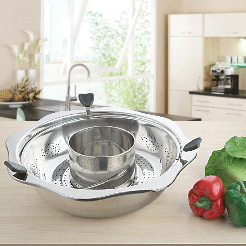 Stainless Steel Hot Pot Stockpot With Lid For Tabletop Cooking Silver