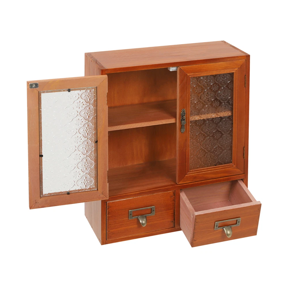 2-tier Storage Cabinet With 2 Drawers 36cm Double Door Wood Storage Cabinet Description Are you still struggling with the cluttered placement of items in your home? You won't be disappointed with this high-class and durable storage cabinet. Our storage cabinet is both practical and beautiful, its large capacity of two tiers and two drawers provides you with plenty of space to store your clothes and sundries at home in an orderly manner, creating a clean and tidy living environment for you. Key Features Build to Last : It is made of premium solid wood and glass, treated with spray painting and polishing processes, which is strong, impact-re sistant, scratch-resistant , and rust-resistant to ensure a long service life. Stable to Use: The thickened material, sturdy connection, and stable structure make it less prone to deformation or fracture, ensuring good load-bearing capacity for daily nee ds. Good Organiser: It has a large capacity of two tiers and two independent drawers, creating plenty of storage space to organize clutter in your home so you can say goodbye to a cluttered room. It also helps children develop good organizing and storage habits from a young age. Space-saving: It fully uses vertical space and has a small footprint (11.81*4.72in), making it easy to create storage space in just a small corner. Its top can also hold items such as water bottles, snacks, and magazines to improve space utilization. Convenient to Use: The clear door allows you to see items inside at a glance, making it easier to select, access, and place items. You can choose to remove or install shelves depending on the height of different items to rationalise your storage space. The two-tier design and two drawers can categorize and organize books, magazines, and decorations, allowing you to find what you want in less time. Easy to Clean: The surface is smooth and flat, so you can easily wipe off the dust with a damp rag (not included). Nice Gift: This practical and beautiful product is a great holiday or housewarming gift for family, friends, and lovers so that they can enjoy a more convenient life. Protective Package: To prevent the product from being damaged during transportation, we packed it with foam and bubble bags to protect your products to the maximum extent possible. Customer Service: We aim to provide high-quality products and services. If you have any questions, please feel free to contact us. We will reply as soon as possible and solve the problem for you. Details Smooth Surface: They add to the beauty of the product while ensuring safer use. Magnetic Doors: Magnetic cabinet doors with convenient handles open and close more smoothly, do not open accidentally when in motion or at rest, and are effective in preventing the entry of dust and insects during daily use. Application It can be used to store toys, cups, drinks, shoes, snacks, books, food, spices, tableware, skincare products, stationery, clothes, pet products, toiletries, cleaning products, laundry detergent, and other items, and is ideal for living rooms, kitchens, offices, bathrooms, laundry rooms, dressing rooms, dormitories, bedrooms, children's rooms, and other places. Specification Color: Brown Style: Modern Shape: Rectangle Material: Solid Wood, Glass Process: Spray Painting, Polishing Assembly Required: Yes Mount Type: Freestanding Number of Tiers: 2 Number of Drawers: 2 Two Tier Height: 26cm/10.24in Product Size: 30*12*36cm/11.81*4.72*14.17in Package Size: 38*32*14cm/14.96*12.6*5.51in Gross Weight: 2.3kg/5.07 lbs Net Weight: 2.19kg/4.83 lbs Package Included 1* Storage Cabinet 1* Shelf 2* Drawers 2* Glass Doors Notes Please note that this product does not include other items shown in the picture. Please allow the slight color difference caused by the shooting light and 1-3cm error due to manual measurement. Please make sure you do not mind before you order. Payment Delivery details Terms of sales About us Contact us Payment We accept ebay payment 。 Fees such as import duties, taxes are not included in the item price or shipping costs. These charges are the buyer's responsibility. Delivery details Shipping: 2-9 working days to: USA Terms of sales We maintain high standards of excellence and strive for hundred percent customer satisfaction. Feedback is very important to us. We hope that you contact us immediately before you give neutral or negative feedback, so that we can address your concerns. It is impossible to address issues if we do not know about them! About us Your satis faction is our ultimate goal. We work hard to earn your trust and future business. Our certified technicians have tested each item before shipping. The unit comes with 1 year limited warranty on all manufacturing defects. a) If you receive a defective item, you may return it or ask for a discount. Please contact us within 14 days after you receive the package. b) What you returned must be intact and in its original packaging as re? u. Customer is responsible for shipping costs of the returned item. c) We will cover the cost of shipping back t with the shipping rate indicated in the registration page. We will send you a new unit or refund the full payment you paid. Thank you. Contact us Business Hour Business Hour: Monday To Friday: 8:30 AM to 5:00 PM (Beijing China time) Due to time zones, our reply to your questions may not be immediately. But within above working time, we will reply your email within 24 hours. If it's non-workdays, please kindly be patient and wait till Monday. Please contact us with ebay message. Please feel free to contact us if you have any questions. Monday To Friday: 8:30 AM to 5:00 PM (Beijing China time) Due to time zones, our reply to your questions may not be immediately. But within above working time, we will reply your email within 24 hours. If it's non-workdays, please kindly be patient and wait till Monday. Please contact us with ebay message. Please feel free to contact us if you have any questions. Shipping Notice Can not
