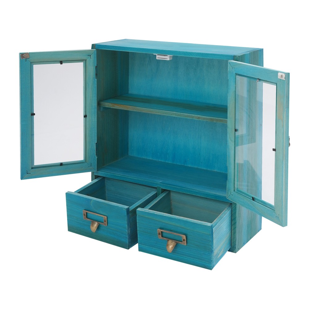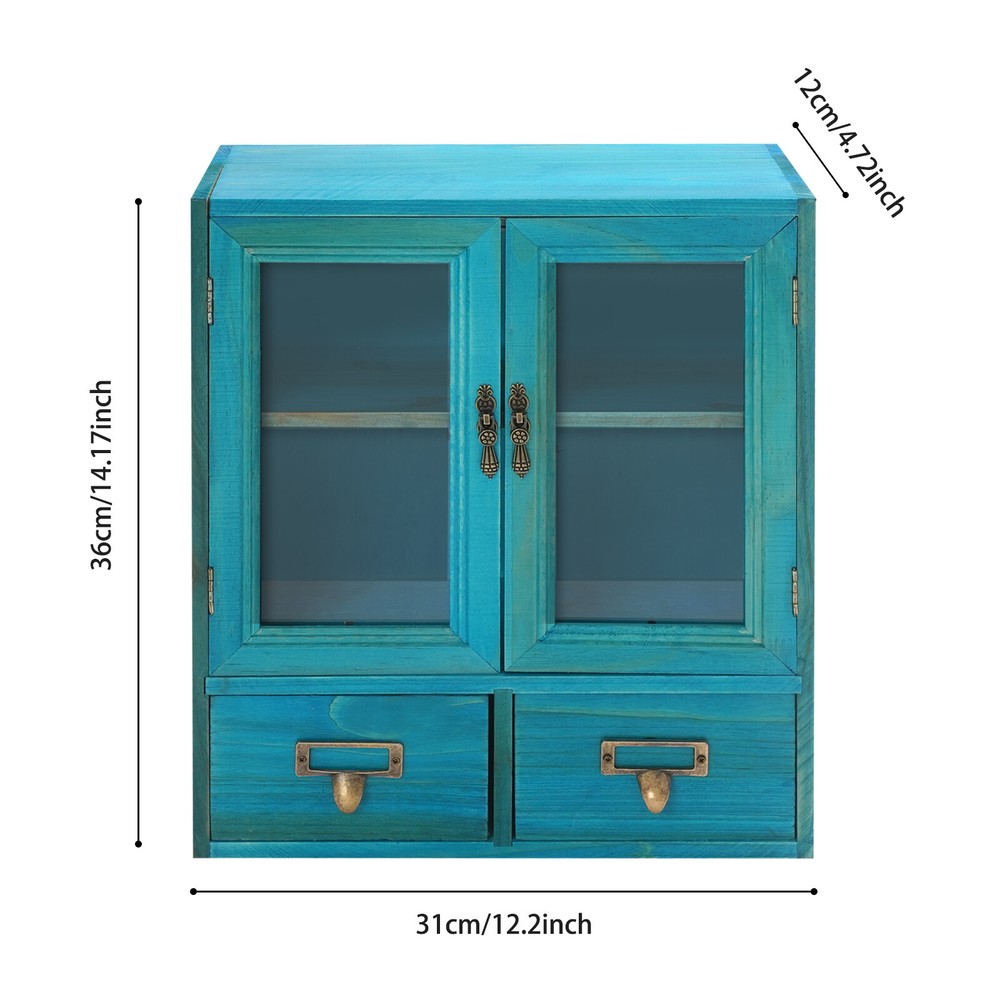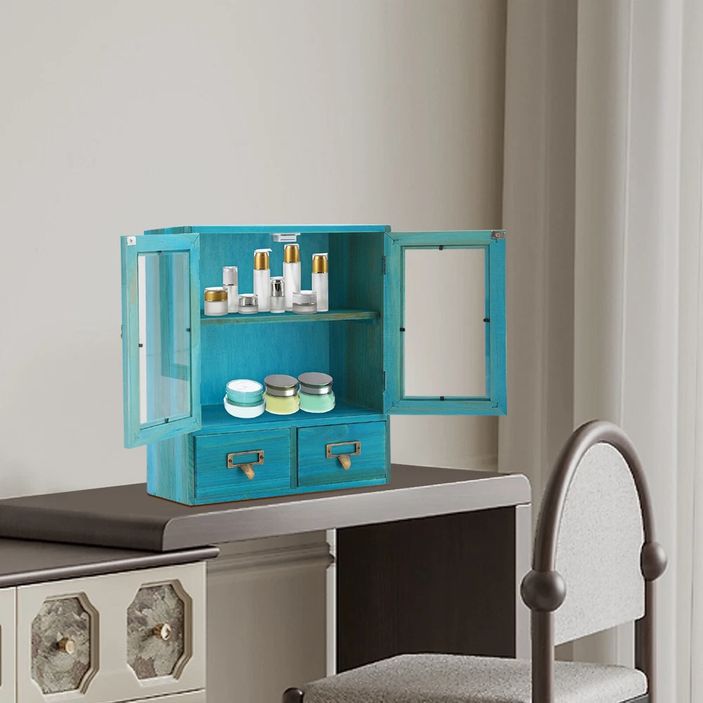 Desktop Drawers Storage Cabinet 16 Drawer Cabinet Wooden Medicine Cabinet Blue