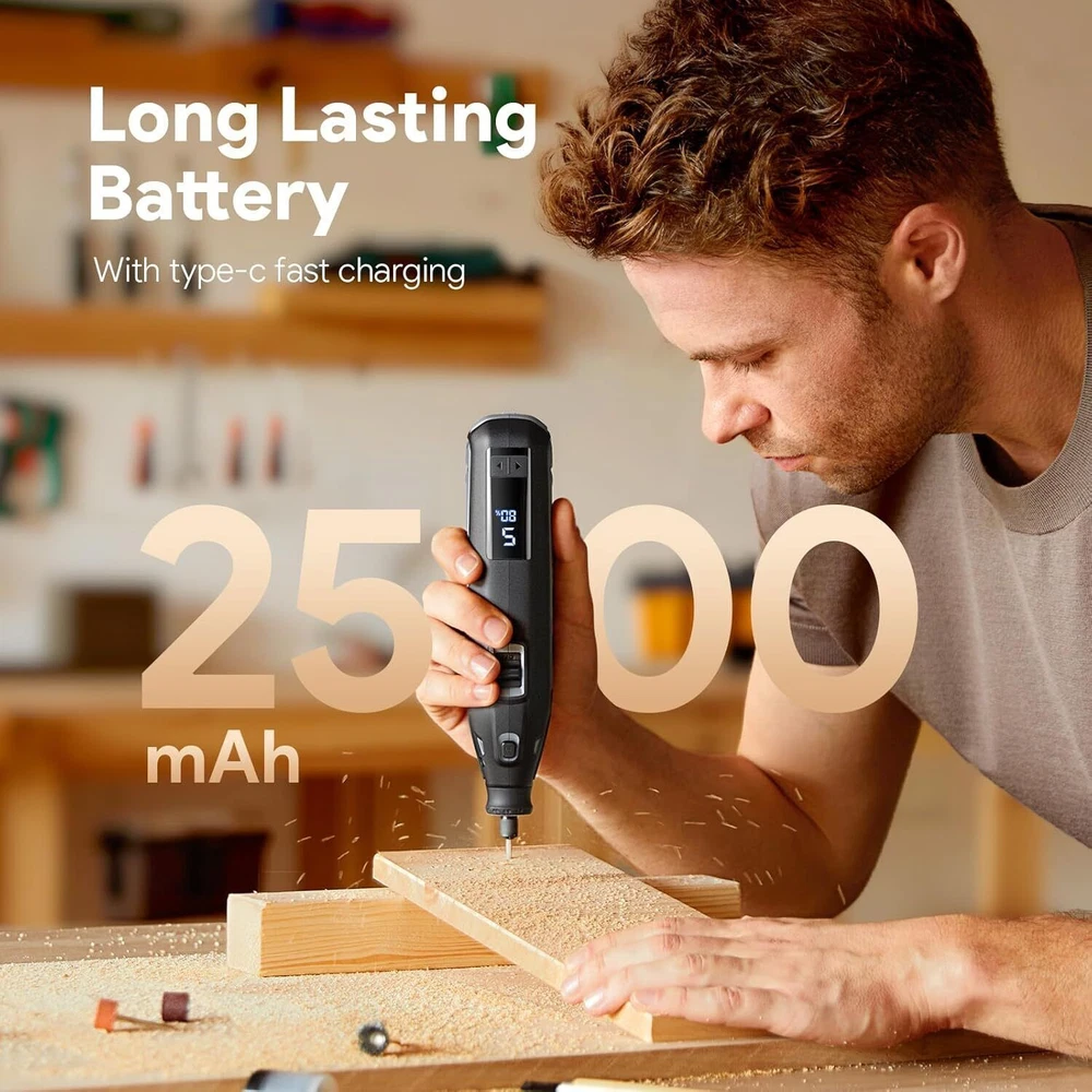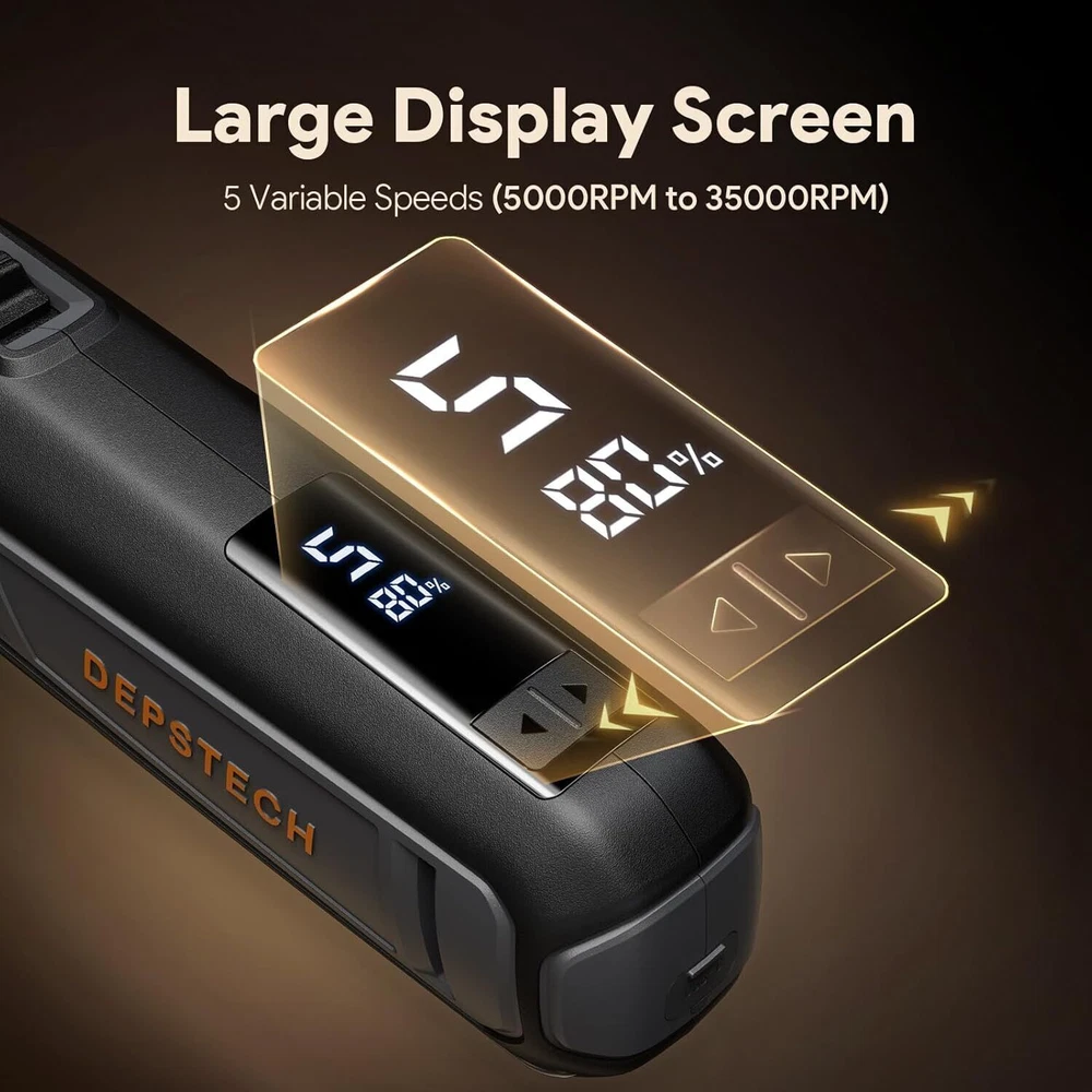 Voltage 12 Volts Power Source Battery Powered Recommended Uses For Product Carving, Cutting, Drilling, Sanding, Engraving, Cleaning, Polishing, DIY Craft, Household Repairs and Automotive Maintenance Carving, Cutting, Drilling, Sanding, Engraving, Cleaning, Polishing, DIY Craft, Household Repairs and Automotive Maintenance Special Feature Large Display Screen, 12V Powerful Motor, 3x 2.5Ah Battery, Support Fast Charging, 5 Variable Speed 5,000RPM to 35,000RPM, 48pcs Enduring Accessories Large Display Screen, 12V Powerful Motor, 3x 2.5Ah Battery, Support Fast Charging, 5 Variable Speed 5,000RPM to 35,000RPM, 48pcs Enduring Accessories About this item ใ๐๐๐ ๐๐จ๐ฐ๐๐ซ๐๐ฎ๐ฅ ๐๐จ๐ญ๐จ๐ซ, ๐๐๐๐-๐๐๐๐๐๐๐๐ใDEPSTECH P1P 12V cordless rotary tool is able to cover most family handcraft scenarios from DIY, home repair, auto repair to garden maintenance etc. It support 5 variable speeds up to 35,000RPM, capable of handling heavy-duty work than the 4V/8V electric grinder. ใ๐๐๐ ๐ ๐๐ฌ๐ญ ๐๐ก๐๐ซ๐ ๐ข๐ง๐ & ๐.๐๐๐ก ๐๐จ๐ง๐ ๐๐๐ญ๐ญ๐๐ซ๐ฒ ๐๐ข๐๐ใDEPSTECH P1P rotary tool kit built-in ๐ ๐ฑ ๐.๐๐๐ก lithium-ion batteries to deliver longer runtime. The convenient USB-C charging cable ensures you're always ready to charge with a power bank, car charger or wall charger. And it supports ๐๐๐ ๐๐๐ฌ๐ญ ๐๐ก๐๐ซ๐ ๐ข๐ง๐ (๐๐ก๐๐ซ๐ ๐ข๐ง๐ ๐ข๐๐จ๐ง ๐๐ฅ๐๐ฌ๐ก๐๐ฌ ๐ช๐ฎ๐ข๐๐ค๐ฅ๐ฒ), allowing you to complete charging in a short time and resume work promptly. ใ๐๐๐ซ๐ ๐ ๐๐ข๐ฌ๐ฉ๐ฅ๐๐ฒ ๐๐๐ซ๐๐๐งใCompared with traditional multi tools, this rotary tool has a more modern and technological appearance design, It comes with a large digital screen that accurately monitors remaining power and speed, so that you can easily control your working status at every moment. ใ๐ ๐๐ข๐ง๐ฌ ๐๐๐ฆ๐จ๐ซ๐ฒ ๐ ๐ฎ๐ง๐๐ญ๐ข๐จ๐งใThis carving tool can remember the speed setting you last used within 5 minutes of shutting down, remains enough time to change accessories or take a break, no need to re-adjust it every time. After 5 minutes, it will return to the default 3rd speed. ใ๐๐ซ๐ ๐จ๐ง๐จ๐ฆ๐ข๐ ๐๐๐ฌ๐ข๐ ๐ง & ๐๐จ๐ฐ ๐๐จ๐ข๐ฌ๐ใErgonomic & Compact design with larger area soft rubber for anti-slip and comfortable grip, maximizing comfort and control during long work sessions. DEPSTECH P1P has less noise and vibration than other rotary tools of the same power, which can reduce interference to the surrounding environment and other people. ใ๐๐ฎ๐ฅ๐ญ๐ข๐ฉ๐ฎ๐ซ๐ฉ๐จ๐ฌ๐ ๐๐ซ๐๐๐ญ ๐๐จ๐จ๐ฅใEnduring 48pcs rotary tool accessories are packed in a EVA carrying bag. These high-quality accessories allow the tool to handle various tasks like cutting, sanding, engraving, drilling and metal processing effortlessly. Equipped with a universal keyless chuck, able to compatible with Dremel accessories & attachments. Voltage โ12 Volts Power Source โBattery Powered Recommended Uses For Product โCarving, Cutting, Drilling, Sanding, Engraving, Cleaning, Polishing, DIY Craft, Household Repairs and Automotive Maintenance Special Feature โLarge Display Screen, 12V Powerful Motor, 3x 2.5Ah Battery, Support Fast Charging, 5 Variable Speed 5,000RPM to 35,000RPM, 48pcs Enduring Accessories Included Components โ1 X Cordless Rotary Tool, 1 X Plastic Case, 1 X Storage Box, 1 X C to C Cable, 1 X Universal Chuck, 1 X Drill Locator, 1 X Cover Shield, 8 X Sanding Paper , 1 X Sanding Shank, 3 X Diamond Burr Bit, 3 X Woodworking Milling Cutter, 1 X HSS Drill, 10 X Double Mesh Cutting Disc, 1 X Cut-off Wheel Mandrel, 3 X Abrasive Stone, 3 X Rubber grinder with Shank, 4 X Felt Wheel, 1 X Felt Wheel Mandrel, 1 X Wire Brushes, 1 X Plastic brushes, 1 X Wrench Item Weight โ1.37 Pounds Maximum Rotational Speed โ35000 RPM Number of Batteries โ1 AAA batteries required. (included) Style โCordless Rotary Tool Item dimensions L x W x H โ9.33 x 1.92 x 2.12 inches Minimum Speed โ5000 RPM Part Number โP1P Item Weight โ1.37 pounds Product Dimensions โ9.33 x 1.92 x 2.12 inches