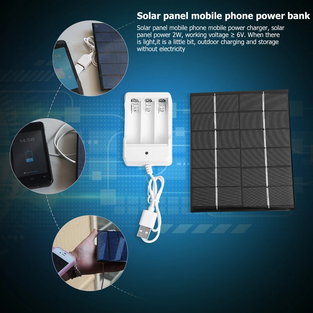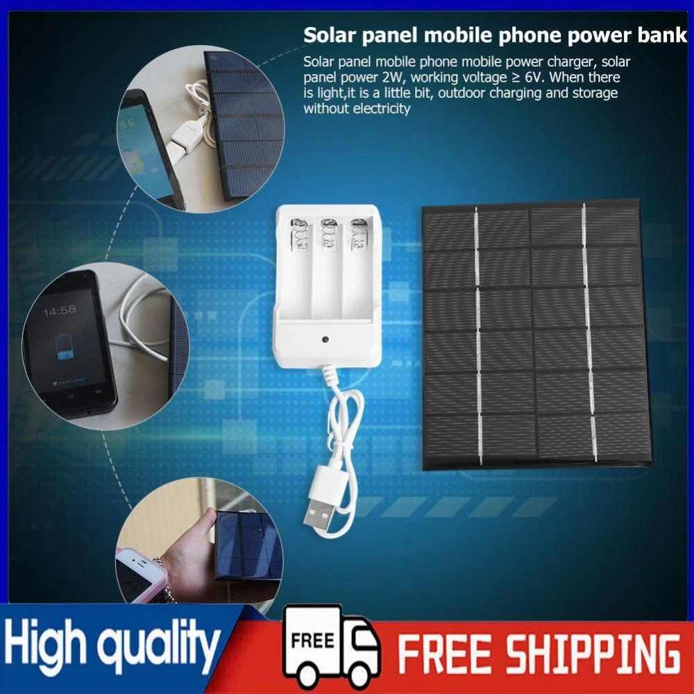 2W 6V Solar Panel for Power Bank Phone Charger AA Rechargeable Charger