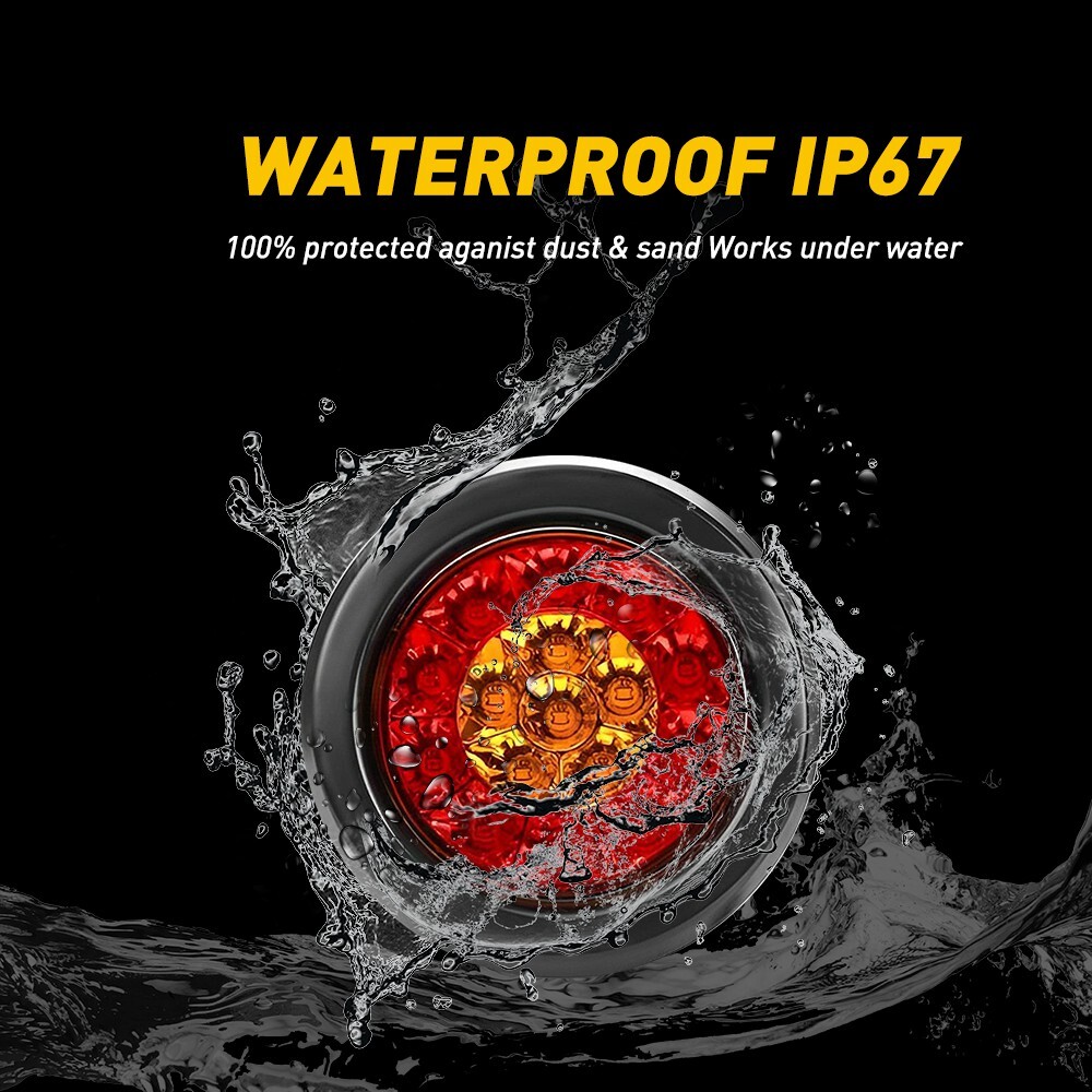 Specification Material: ABS & Rubber Voltage:12V-24V Waterproof grade:IP67 Service life: 50000H+ Light color: Red(10 leds),amber(6 leds) LED quantity: 16 LEDs per unit Universal for: Trucks, trailers, tractors, semi-trailer, Dump Truck, bus, boat, special vehicle, and etc. Features: *High brightness: Adopts 16 pieces of advanced LED lamp beads glowing brightly but not dazzlingly. 100% Brighter than halogen bulbs but more Energy-saving. *Waterproof: The tail light is highly silicon sealed with an IP67 waterproof rating, which works even under extreme conditions such as rain and snow. *Easy to install: 2X 4inch Amber Red Round LED Truck Trailer Tail Lights Stop Turn Brake DRL Lamp Specification Material: ABS & Rubber Voltage:12V-24V Waterproof grade:IP67 Service life: 50000H+ Light color: Red(10 leds),amber(6 leds) LED quantity: 16 LEDs per unit Universal for: Trucks, trailers, tractors, semi-trailer, Dump Truck, bus, boat, special vehicle, and etc. Features: *High brightness: Adopts 16 pieces of advanced LED lamp beads glowing brightly but not dazzlingly. 100% Brighter than halogen bulbs but more Energy-saving. *Waterproof: The tail light is highly silicon sealed with an IP67 waterproof rating, which works even under extreme conditions such as rain and snow. *Easy to install: Easy installation with direct replacement, other modifications are not required. *Connection Black wire connects to negative. Red wire:Braking light (Red light with high brightness) Blue wire:Driving light(Red light with low brightness) Yellow wire: Turn signal light(Amber light) *Functions Tail Light, Running Light, Stop Light, Turn Signal Light, etc. *Wide application: Universal Fits All vehicles with 12V Power Supply such as car, truck, trailer, Semi Trailer, Semi Trucks, boat, flatbed, bus, lorry, van, caravan, camper, RV Jeep etc. Note: Please check the detail information carefully before purchasing. Your satisfaction is our utmost concern, please feel free to contact us for any questions and concerns. Package Include: Tail light*2 Item Specifics Brand AUXITO Placement on Vehicle Rear, Left, Right, Outer, Bed Type Rear Tail Lights/Brake Lights Bar Manufacturer Part Number Does Not Apply Voltage 12V Color Red Brake Light Amber Turn light Fitment Type Performance/Custom To Fit Tail Lights Material ABS Housing ++++ PC Lens Lighting Technology LED Applications Universal For Any 12V Vehicles Heavy trucks LED Type 16 Lighting Type Trailer Lights Waterproof IP67 Position 1 Stop turn tail brake marker Clearance Light Position 2 3rd brake Light, ID Bar Light Widely used Trucks, trailers, tractors, semi-trailer Widely used 1 Dump Truck, bus, boat, special vehicle Widely used 2 Dump Truck, bus, boat, special vehicle Widely used 3 Cab Rails ORV Golf Cart Freightliner Widely used 4 Bus semi-trailer motorhome tractors Dump Truck Widely used 5 travel trailer, boat trailer, horse trailer Widely used 6 camper trailer, cargo trailer etc. Warranty 1 Year Payment Returns DESCRIPTION PAYMENT SHIPPING RETURN POLICY CONTACT US Shop Category Store Home LED Headlight ◈ H4 ◈ H13 LED Reverse Light ◈ T15/921/W16W LED License Plate Light LED Side Marker Light Car Parts & Accessories Tail Light assemblies Other Hot Item Red 15" LED Truck Trailer Strip 3rd Light Brake Rear Turn Stop Tail Light Bar USD 18.99 2x 4inch Round LED Truck Trailer Stop Turn Tail Brake Lights Reverse Waterproof USD 18.99 Red 2X 15" LED Truck Trailer 3rd Strip Brake Lights Rear Turn Tail Light Bar US USD 18.99 2X 4inch Amber Red Round LED Truck Trailer Tail Lights Stop Turn Brake DRL Lamp USD 16.14 2PCS 15" Red LED Truck Trailer Strip Brake Lights 3rd Rear Turn Tail Light Bar USD 18.99 Picture New List Item AUXITO 2*H7 LED Bulb Headlight 120W 20000LM Super Bright Kit High Low Beam White USD 22.41 Fits 2001 02 2003 Honda Civic Chrome Housing Clear Corner Headlight Head Lamps V USD 66.49 For 2007-2018 Jeep Wrangler JK Smoked Lens Amber Front LED Side Marker Lights 2X USD 18.99 For 2004-2009 Mazda 3 Sedan Black Housing Amber Corner Projector Headlight 2pcs USD 104.49 Black Left & Right Projector Headlights For 2010-2014 Subaru Legacy&Outback USD 138.69 Help & Info Payment Policy Shipping Policy Return Policy FAQ About Us 2X 4inch Amber Red Round LED Truck Trailer Tail Lights Stop Turn Brake DRL Lamp Specification Material: ABS & Rubber Voltage:12V-24V Waterproof grade:IP67 Service life: 50000H+ Light color: Red(10 leds),amber(6 leds) LED quantity: 16 LEDs per unit Universal for: Trucks, trailers, tractors, semi-trailer, Dump Truck, bus, boat, special vehicle, and etc. Features: *High brightness: Adopts 16 pieces of advanced LED lamp beads glowing brightly but not dazzlingly. 100% Brighter than halogen bulbs but more Energy-saving. *Waterproof: The tail light is highly silicon sealed with an IP67 waterproof rating, which works even under extreme conditions such as rain and snow. *Easy to install: Easy installation with direct replacement, other modifications are not required. *Connection Black wire connects to negative. Red wire:Braking light (Red light with high brightness) Blue wire:Driving light(Red light with low brightness) Yellow wire: Turn signal light(Amber light) *Functions Tail Light, Running Light, Stop Light, Turn Signal Light, etc. *Wide application: Universal Fits All vehicles with 12V Power Supply such as car, truck, trailer, Semi Trailer, Semi Trucks, boat, flatbed, bus, lorry, van, caravan, camper, RV Jeep etc. Note: Please check the detail information carefully before purchasing. Your satisfaction is our utmost concern, please feel free to contact us for any questions and concerns. Package Include: Tail light*2 Payment Returns All rights reserved. On Dec 16, 2024 at 06:20:40 PST, seller added the following information: