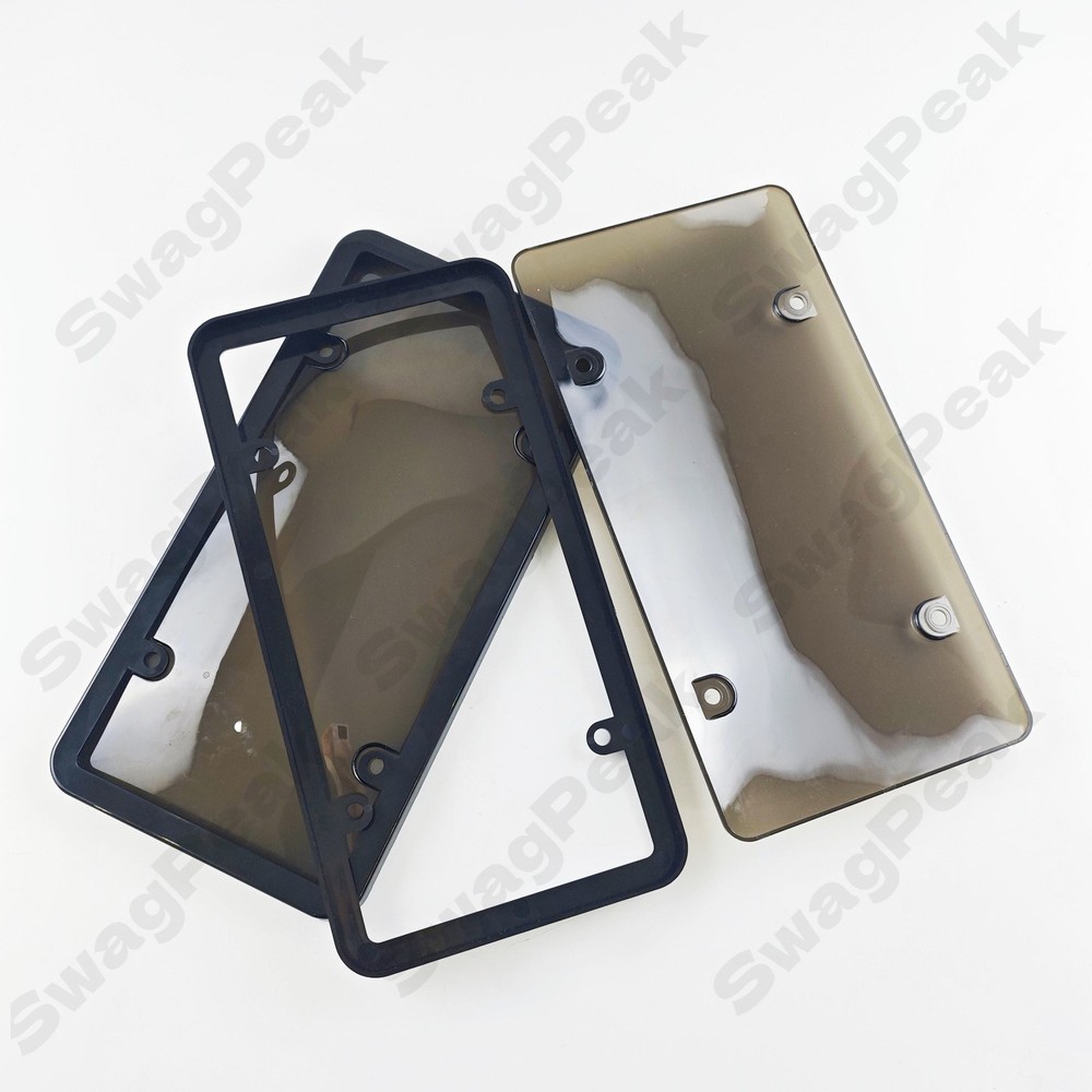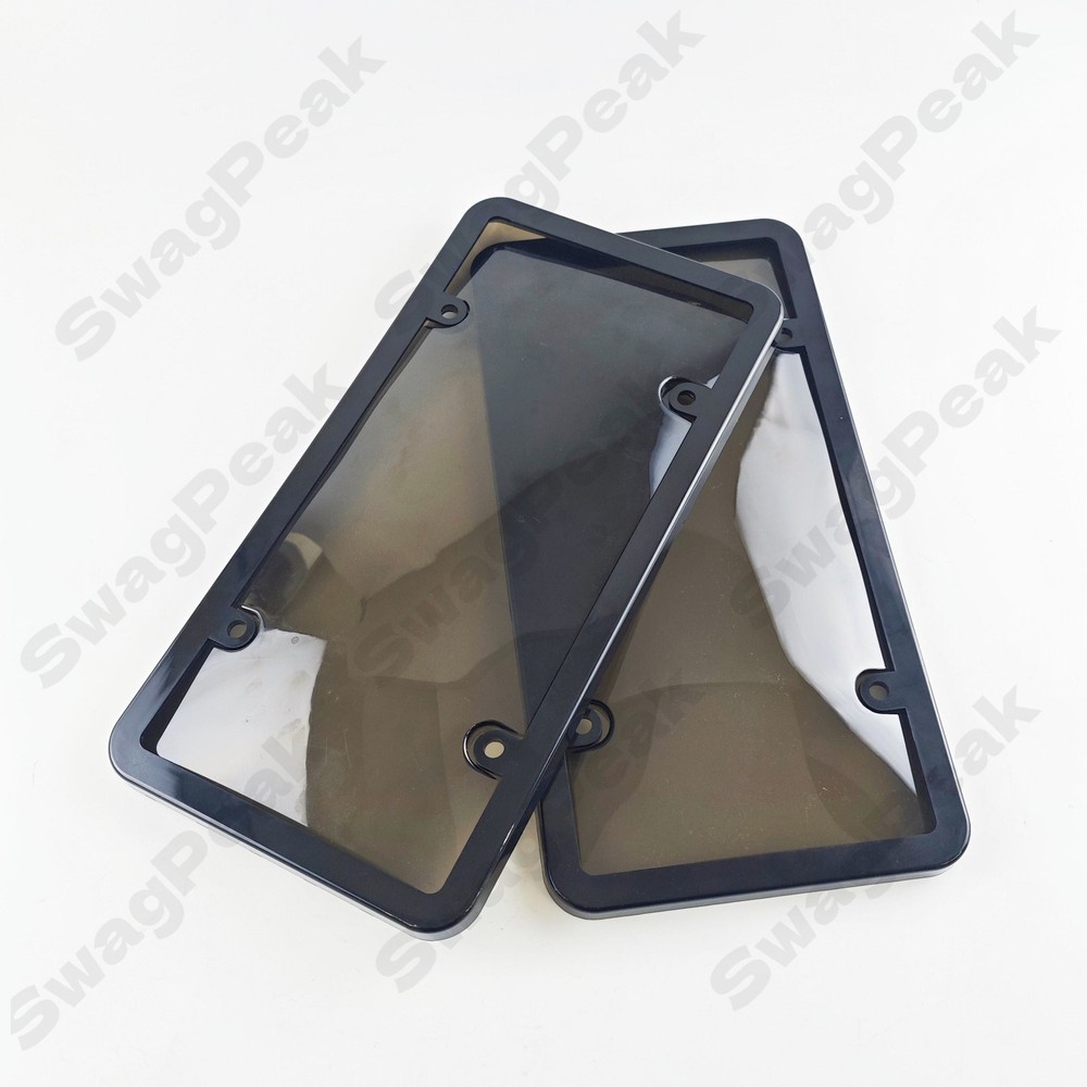 Brand: swagpeak Manufacturer Warranty: 1 Year UPC: Does not apply Personalize: No Color: Shield - Tinted Smoke / Frame - Black Vintage Part: No Suitable For: Car, Caravan, Motorcycle, Trailer Finish: Gloss Placement on Vehicle: Front, Rear, Middle, Center, Bumper, Tailgate, Left, Right Attachment Type: Screw-On Material: Plastic, Metal Performance Part: No gtin13: Does not apply Universal Fitment: Yes Country of Origin: United States Type: License Plate Cover