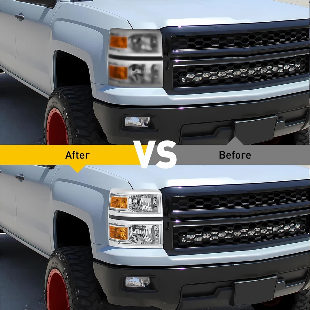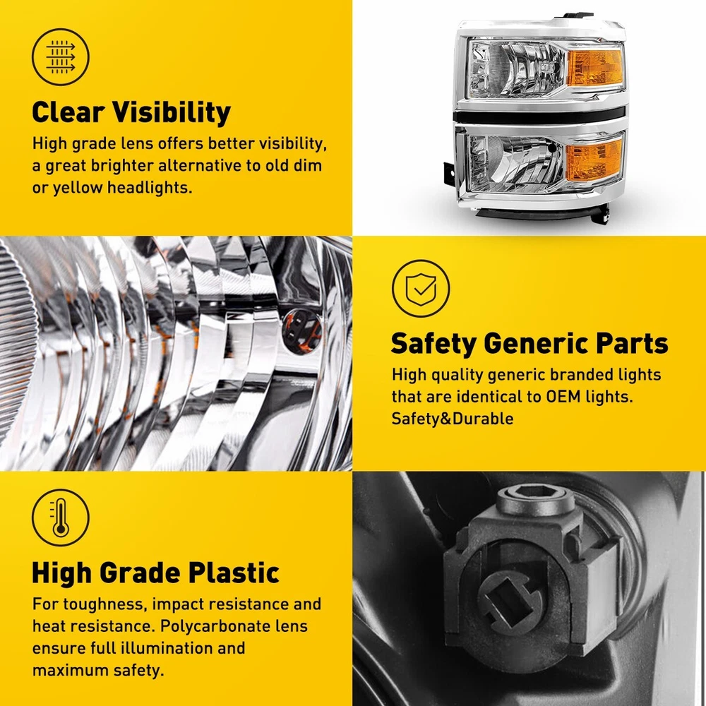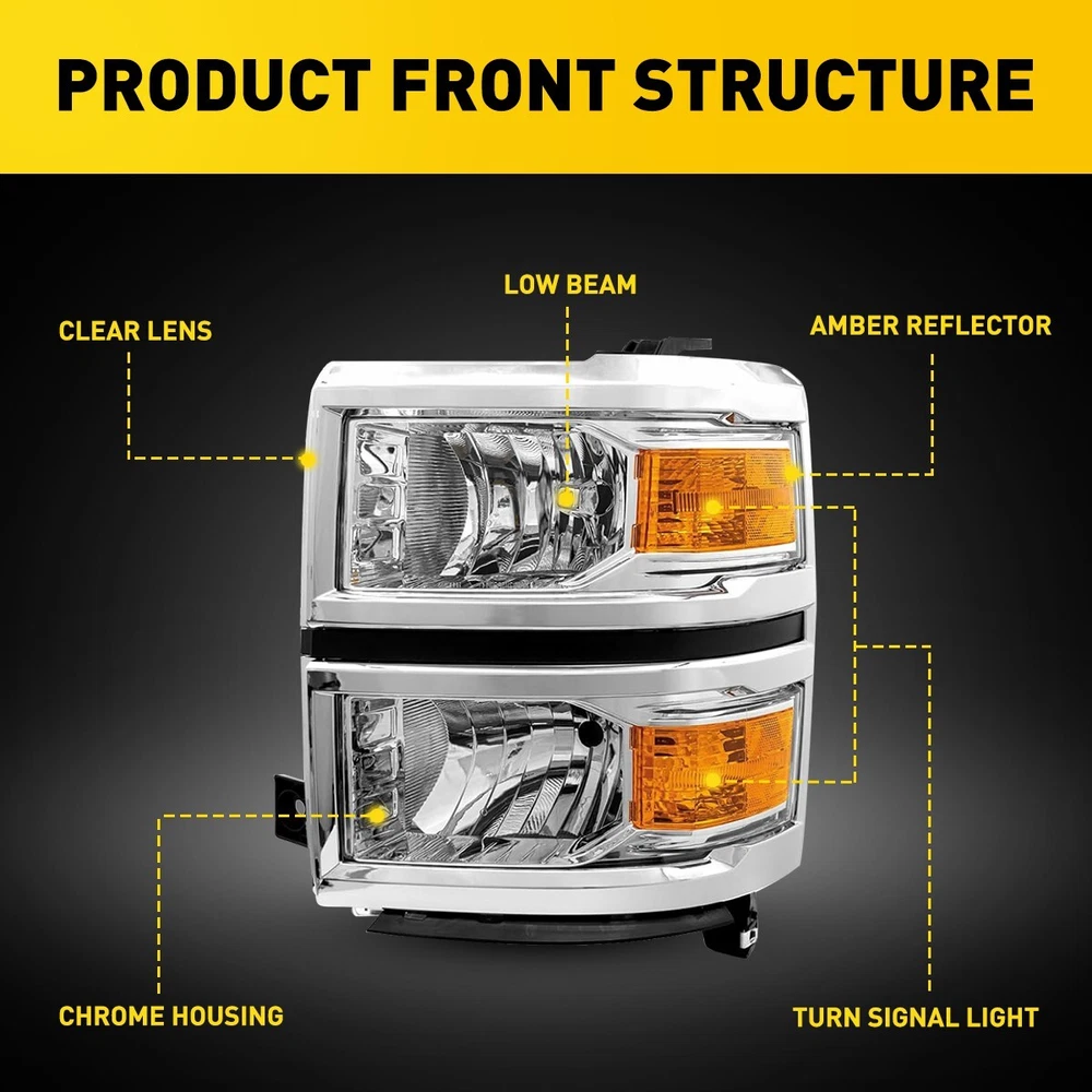 Fit for: 2014-2015 Chevy Silverado 1500 Models Only (Fit 2014 New Body Style Models Only; Does NOT Fit HD Models) Specifications: OE number: 20933724, 20933725, 20933722, 20933723, 23172782, 23172783 GM2502389, GM2503389, GM2502395, GM2503395, GM2502410 Material: ABS+PC (ABS Plastic Housing/Polycarbonate lens) Appearance color: 1.Housing Color: Chrome 2.Lens Color: Clear 3.Reflector Color: Amber Note: Projector × (Not include) DRL × ( Not Include) Bulb × (Not include) 2X Front Headlights for Chevy 2014-2015 Silverado 1500 Chrome Housing Head EXA Fit for: 2014-2015 Chevy Silverado 1500 Models Only (Fit 2014 New Body Style Models Only; Does NOT Fit HD Models) Specifications: OE number: 20933724, 20933725, 20933722, 20933723, 23172782, 23172783 GM2502389, GM2503389, GM2502395, GM2503395, GM2502410 Material: ABS+PC (ABS Plastic Housing/Polycarbonate lens) Appearance color: 1.Housing Color: Chrome 2.Lens Color: Clear 3.Reflector Color: Amber Note: Projector × (Not include) DRL × ( Not Include) Bulb × (Not include) Features: *Easy to install: Direct replacement, drilling and cutting are not required. *Superior quality: Made of ABS and PC materials with toughness and heat resistance functions to ensure its long service life and durability. *Angle adjustment: Equipped with a headlamp Angle adjustment knob, you can adjust the best Angle of view through the knob. Suggestion: 1.Please confirm the OE number before purchasing!!! 2.Professional installation is required!!! Package Included: Headlights *2 (Left+Right) Item Specifics Brand AUXITO Number of Pieces 2 Type Headlight Assembly Placement on Vehicle Front,Left,Right OE/OEM Part Number 20933724, 20933725, 20933722, 20933723, 23172782, 23172783 Fitment for 2014-2015 Chevy Silverado 1500 Models Only Attention Fit 2014 New Body Style Models Only; Does NOT Fit HD Models Manufacturer Warranty 1 Year Universal Fitment No Interchange Part Number GM2502389, GM2503389, GM2502395, GM2503395, GM2502410 Fitment Type Direct Replacement OE/OEM Part Number 20933724, 20933725, 20933722, 20933723, 23172782, 23172783 Fitment for 2014-2015 Chevy Silverado 1500 Models Only Attention Fit 2014 New Body Style Models Only; Does NOT Fit HD Models Manufacturer Warranty 1 Year Universal Fitment No Interchange Part Number GM2502389, GM2503389, GM2502395, GM2503395, GM2502410 Fitment Type Direct Replacement Payment We only accept PayPal payment, should be received within 3 days from the date of purchase. Please keep the consistency of Paypal address and ebay address. Payment should be made within 4 days once you won a item ,or ebay will launch Unpaid Reminder agaist you and there will be bad record on your ebay account . Buyers are responsible for import duties, custom fees and taxes.Please check with your country's custom office to determine the additional costs before you finally make the purchase Shipping All items will be shipped in 48 hours after receiving your payment . We ship this item to US only via USPS first class mail. It usually takes 3-6 working days to deliver. Returns We offer 30 days return policy. Please contact us within 30 days t from the date you receive your order if you have any issues with the product or want return .Refund will be send after we got your resend package. All returned items should be in the original packaging , return tracking information should be provided .. Buyer is responsible for return shipping cost due to the problem not caused by item quality itself . Contact Us Our office hours are MONDAY - FRIDAY 9:00PM - 6:00PM PST, but we will response you once we get your message .There will be some delay on response if you send message or E-Mail on weekend. FAQ Q1: Will this bulb fit my vehicle? A: We can match almost any vehicle to one of our bulb sizes. eBay only lets us include partial vehicle fitments per listing, but if your vehicle does not show up on the compatibility table at the top of our listings, welcome you to contact us for free consulation before purchasing a product. Q2: My item has not arrived, what's taking so long? A: Sometimes items take longer than expected, especially if it’s going far or to rural area. Check with your post office to see if your item has been held up. Sometimes USPS will not update a tracking number until it has arrived at its destination. If your item still has not arrived after a few days, let us know so we can double check for you and help solve it asap. Q3: Do I need to mention the Year, Make and Model in the notes when place order? A: YES. Please include the Year, Make, and Model in the notes section during checkout to ensure you receive everything needed for your kit! Q4: My bulbs won't fit, help! A: Special bulb holder may be required. See if you can take the holder from the stock bulb. If not, let us know. The bulb size may be wrong, double check the item you received with the item you ordered. Do you have an aftermarket lighting housing? These may not be perfectly fitted for aftermarket bulbs and will require some manual modifications. Q5: Neither side lighting up? Both sides flicker, flash, or work inconsistantly. A:Check the headlight fuses, and then check the ballast plugs to insure correct installation. If this doesn't work, there may be a voltage problem with the vehicle. You probably just need a relay or capacitor. Q6: WARNING ABOUT POLARITY Unlike halogen bulbs, LED are polarity sensitive. BEFORE you start your LED kit installation, verify the polarity on your vehicle by simply plugging the LED bulb into your vehicle socket. - if your light turns on, please proceed to install both bulbs onto your vehicle. - if your light DOES NOT turn on, disconnect the bulb and flip the socket in order to reverse the polarity (this will not damage your vehicle electrical system in any way). Once you made sure the LED bulb turns on, please proceed to install both bulbs onto your vehicle. Note: There is no convention when it comes to polarity. Different car manufactures have different polarity 
