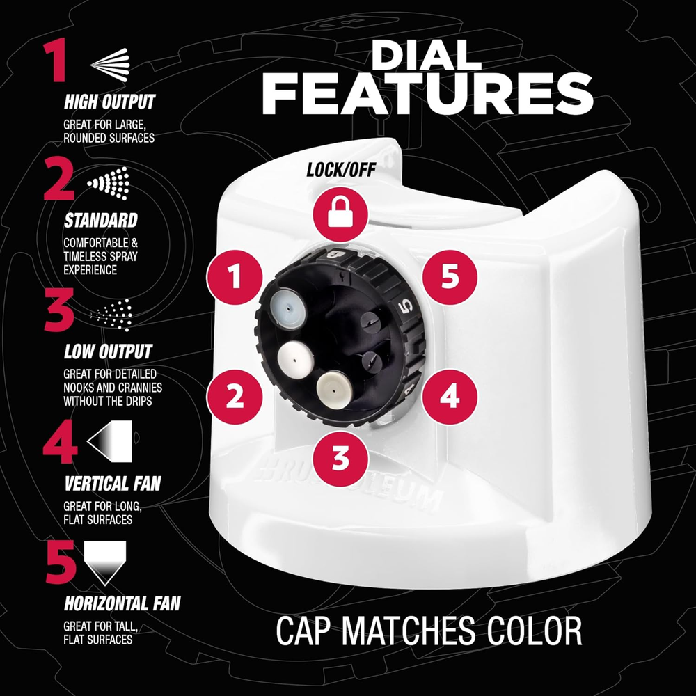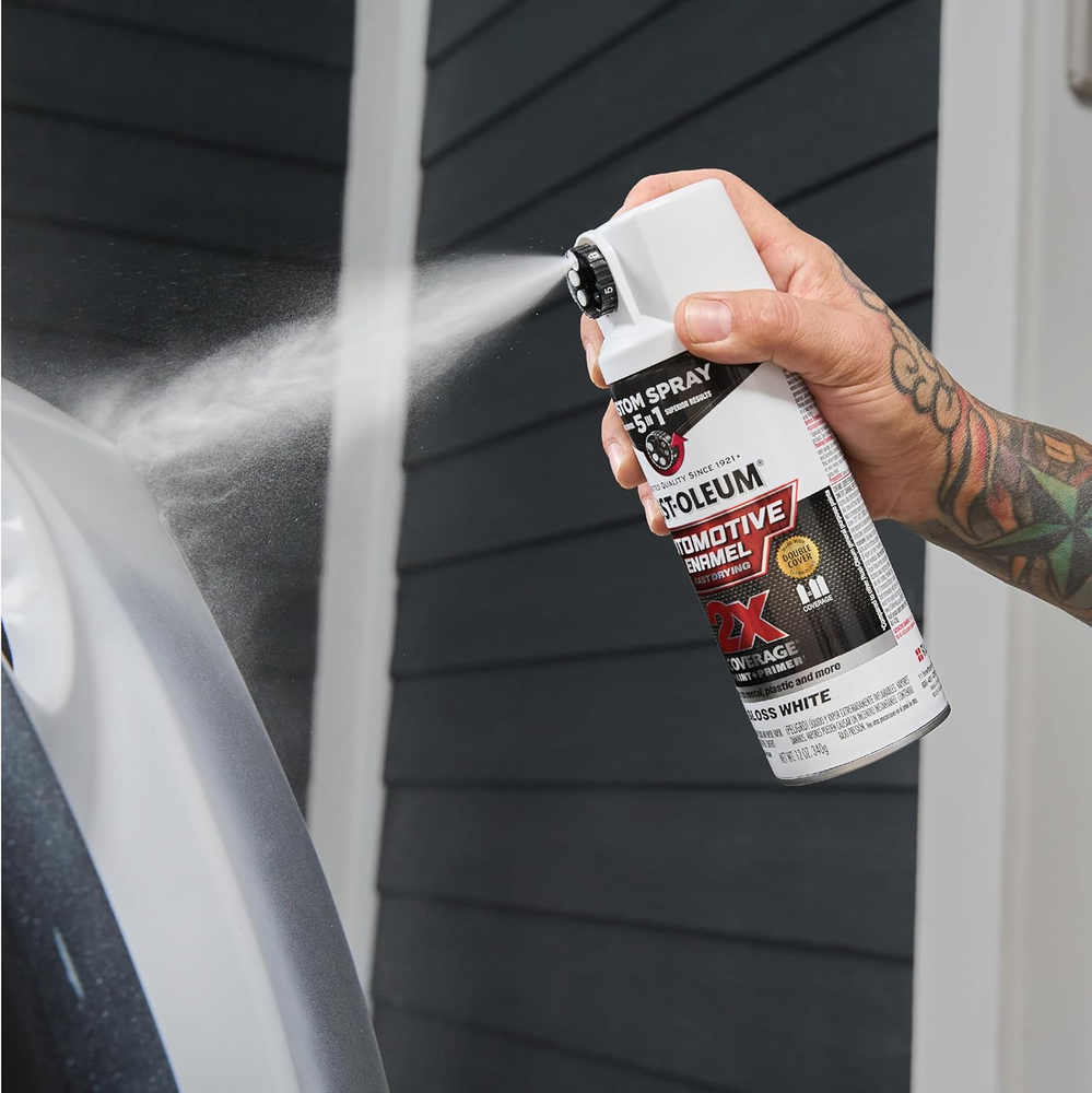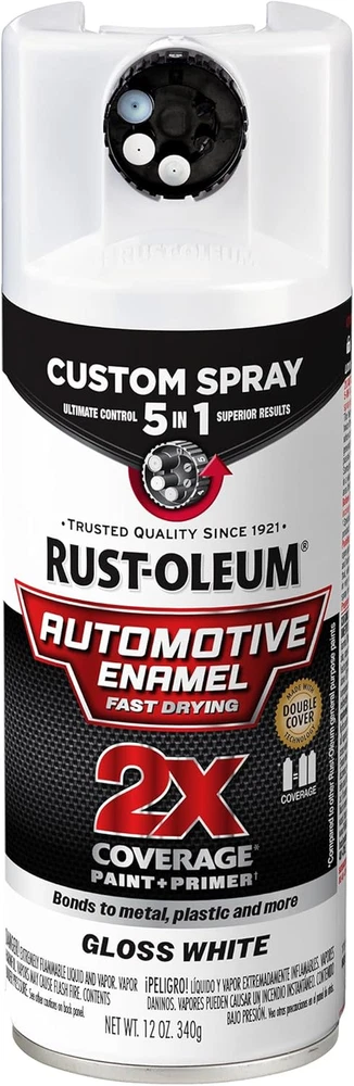 Description: DURABLE, FAST DRYING ACRYLIC FORMULA: Delivers a long-lasting, attractive finish on indoor and outdoor surfaces including metal, wood, plastic and more ULTIMATE 2X COVERAGE: Premium automotive spray paint covers surfaces with fewer passes for faster project completion CUSTOM SPRAY 5-IN-1 DIAL: Offers five spray paint patterns for ultimate control and superior results QUICK DRY AND EXCELLENT COVERAGE: Dries to the touch in 20 minutes and covers up to 12 square feet per can SPRAYS FROM ANY ANGLE: Choose from high output, standard, low output, vertical fan, and horizontal fan spray patterns with 360° any-angle spray technology
