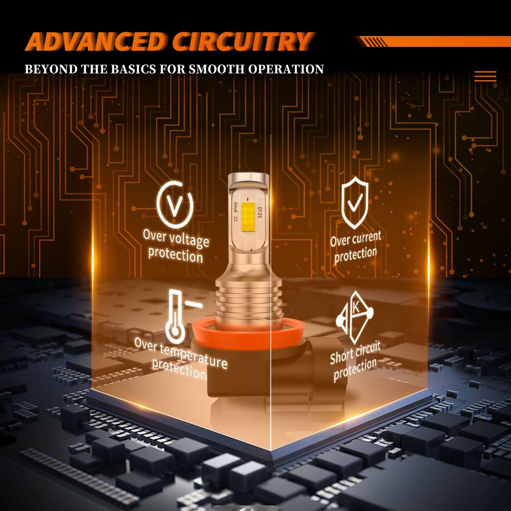 Home Payment Shipping About us Contact us Details H11/ H8 LED Fog Light Bulbs Wireless 6000K White These bulbs are all in one designed, mini sized, 4,000lm bright per set, 6000K, plug and play, let you see far and wider at night without blinding oncoming drivers. High Brightness - H11/ H8 LED headlight uses customized CSP chips, 8000LM per set, 300% brighter than halogen headlights. 360 Degree Lighting - The LED interval of the bulb is about 0.03in, ultra thin designed. 360 degree illumination and no dark spots. 6000K Cool White - Bright white light gives better visibility. No foggy light. Perfect Beam Pattern - The shape and size of the LED chips are close to the filament of halogen bulbs to ensure a perfect beam pattern. CANBUS Free - Built-in intelligent IC driver, solves most computer system problems, compatible with most vehicles. About this item 【300% Brighter】 H11 LED headlight bulbs are designed with double-sided CSP LED chips, 6000K cool white, 8,000Lumen per set, 300% brighter than stock halogen bulbs, a perfect upgrade for halogen headlights. Allows driver get a farther, brighter, and clearer vision when driving at night 【50,000+hrs Lifespan】 The advanced CSP LED technology effectively reduces the energy consumption of H11 led headlight during operation. Premium aviation aluminum and 12,000RPM high-speed silent cooling fan effectively pull the heat away from the LED chips, which ensures long service life of up to 50,000 hours 【1:1 Beam Pattern】 H8 H11 led headlights 1:1 simulate the beam pattern of halogen bulbs, use ultra-thin 0.03in baseboard to ensure 360° lighting without black spots. And the emitted light beam is focused on the ground, will not cause glare to oncoming drivers 【10min Installation】 Unlike other LED lights, H11 headlight bulbs have no external driver and connector, fully all in one. That makes the bulbs almost the same size as the halogen bulb. Due to the wireless design, installation is a breeze, just plug and play 【99% CANbus Ready】 Built-in anti-flicker CANbus unit, H11 / H8 LED headlights are compatible with 99% of vehicles’ systems, no polarity, no radio interference, and error-free. Some sensitive models may require resistors Parameter: Model:H11 / H8 / H9 Power:40W/per bulb, 80W/per pair Lumens:4000LM/per bulb, 8000LM/per pair Color Temperature:6000K White Light source: 3570 (CSP) Certified by:CE & ROHs Voltage: DC 12V-18V Warranty:5 YEARS Lifetime: More than 50000 hours Placement on Vehicle: Front Applicable Used as a: Fog Light, Daytime Running Light Bulb Suitable For Pickup, Wagon, UTB, Cab, ATV, SUV, Jeep, Truck, Bus etc. Package include: 2x H11 H8 LED Fog Light New and old packaging will be shipped randomly!! Install Caution: 1. As a safety precaution, make sure that the car has had time to cool down properly before starting the installation process. 2. Put the vehicle into park or make sure it is securely in gear. 3. Make sure to have the ignition turned off and the keys removed. 4. Be careful to avoid burns, especially when turning on or off the vehicles lighting. 5. Be careful to avoid crushing or cutting the bulbs. Also make sure to not touch the bulbs with your fingers, as this will cause blotting. 6. Fully examine the connection of the contact points, ports and the wires as faulty connections can cause lighting problems. 7. Make certain that the end of the bulb does not come in contact with the interior light shield of the headlight when adjusting the bulb. Shipping Policy Payment Method Returns Policy Shipping Policy Payment Method Returns Policy Home Payment Shipping About us Contact us Store Categories Store Categories For Chevrolet For Ford For GMC For Ram For Dodge For Kia For Nissan For Sabaru For Acura For Buick For Cadillac For Honda For Jeep For Mazda For Mitsubishi For Toyota For Volkswagen For Volvo For Lexus Other Details H11/ H8 LED Fog Light Bulbs Wireless 6000K White These bulbs are all in one designed, mini sized, 4,000lm bright per set, 6000K, plug and play, let you see far and wider at night without blinding oncoming drivers. High Brightness - H11/ H8 LED headlight uses customized CSP chips, 8000LM per set, 300% brighter than halogen headlights. 360 Degree Lighting - The LED interval of the bulb is about 0.03in, ultra thin designed. 360 degree illumination and no dark spots. 6000K Cool White - Bright white light gives better visibility. No foggy light. Perfect Beam Pattern - The shape and size of the LED chips are close to the filament of halogen bulbs to ensure a perfect beam pattern. CANBUS Free - Built-in intelligent IC driver, solves most computer system problems, compatible with most vehicles. About this item 【300% Brighter】 H11 LED headlight bulbs are designed with double-sided CSP LED chips, 6000K cool white, 8,000Lumen per set, 300% brighter than stock halogen bulbs, a perfect upgrade for halogen headlights. Allows driver get a farther, brighter, and clearer vision when driving at night 【50,000+hrs Lifespan】 The advanced CSP LED technology effectively reduces the energy consumption of H11 led headlight during operation. Premium aviation aluminum and 12,000RPM high-speed silent cooling fan effectively pull the heat away from the LED chips, which ensures long service life of up to 50,000 hours 【1:1 Beam Pattern】 H8 H11 led headlights 1:1 simulate the beam pattern of halogen bulbs, use ultra-thin 0.03in baseboard to ensure 360° lighting without black spots. And the emitted light beam is focused on the ground, will not cause glare to oncoming drivers 【10min Installation】 Unlike other LED lights, H11 headlight bulbs have no external driver and connector, fully all in one. That makes the bulbs almost the same size as the halogen bulb. Due to the wireless design, installation is a breeze, just plug and play 【99% CANbus Ready】 Built-in anti-flicker CANbus unit, H11 / H8 LED headlights are compatible with 99% of vehicles’ systems, no polarity, no radio interference, and error-fr