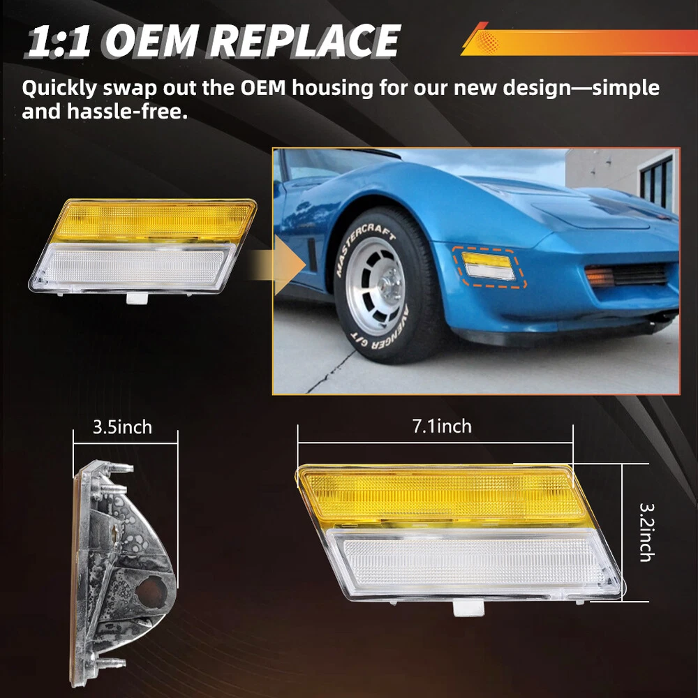 Product Detail Copyright©MotoringPlus Details This page features One Pair (2 Pieces) OEM-Spec Amber & Clear Lens Front Corner Turn Signal Marker Lights Kit For 1980-1982 Chevry Corvette C3 These lamps are made with high-quality Polymethy l Methacrylate (PMMA) and Polycarbonate (PC) plastics No modification required! Each piece is easy to install with an OEM fit, Instantly transform your car and give it a modern and trendy appearance and feel! Note: Bulbs & socket adapters are NOT included Specifications: 100% Brand new and quality Lens Color: Amber & Clear A complete set of two lamps, replacement for the driver side & passenger sides Compatible With 1980-1982 Chevry Corvette C3 Directly replace or repair your car's front signal marker lamps CE DOT SAE approved Application: For 1980 1981 1982 Chevry Corvette C3 Replace OEM # 5936591 & 5936593 Please make sure you have available space in your car for these lamps to fit before placing or de r. Package include: 2PCS Driver & Passenger side Front Corner Turn Signal M arker Lights (Amber & Clear Lens) Installation: Direct replacement the OEM parts without any modification needed Note: Professional installation is highly recommended! Returns Policy Shipping Policy Payment Method About US Contact Us Returns Policy Please check actual stock bulb model & housing size before purchasing replacement bulbs. Compatibility list on eBay listing is not a complete list and it is a known issue that there are errors on it. Half year warranty from the purchased date. Please contact us via ebay message before returning the defectived item. Our warranty does not extended to any products that are physically damaged or that are not under normal operating conditions as a result of misuse or improper installation on the buyers/user's part. Return items should include the original packaging and all accessories. Buyers MUST contact us for the returning address. In all cases, buyers pay shipping fees at their own cost to return products for exchange or refund. We will be responsible for the postage of replacements. Refund will be made upon receipt of the returned item. Our goal is to make sure you are a happy buyer and pleasant shopping with us. If you have any problems, please contact us immediately before leaving us any negative or neutral feedback. We understand the concerns and frustrations you might have, and will do our endeavor to resolve the issues. Please give us the opportunity to resolve any problem. Shipping Policy Item will be shipped from China / Hongkong Post by Standard International Post. All orders will be shipped to buyer's paypal shipping address within 24 hours after receiving your verified payment (Excluding Weekends and Public Holidays) International order may takes about 15-25 business day delivery time for most countries. Transactions on weekends or public holidays,item will be sent later on work time. Payment Method We accept Paypal ONLY. Unpaid transaction will be cancelled after 8 days About US Contact Us We are dedicated to providing you the best shopping experience and high quality items at a very low price. If you are satisfied with our service,Please remember to leave us 5 STAR for All Detailed Seller Ratings If you found any problem/issue of our merchandise/service,please let us know before leaving any negative feedback! Please feel free to contact us if you have any question. Any message will be replied within 24 hours. We will try our best to help! Home Payment Shipping About us Contact us Copyright©MotoringPlus Home Payment Shipping About us Contact us Store Categories Store Categories SIDE MARKER LIGHT TURN SIGNAL LIGHT TAIL BRAKE LIGHT LICENSE PLATE LIGHT DECODER OTHERS Other Product Detail Copyright©OFFKAT Why Buy From Us Why Buy From Us Details This page features One Pair (2 Pieces) OEM-Spec Amber & Clear Lens Front Corner Turn Signal Marker Lights Kit For 1980-1982 Chevry Corvette C3 These lamps are made with high-quality Polymethy l Methacrylate (PMMA) and Polycarbonate (PC) plastics No modification required! Each piece is easy to install with an OEM fit, Instantly transform your car and give it a modern and trendy appearance and feel! Note: Bulbs & socket adapters are NOT included Specifications: 100% Brand new and quality Lens Color: Amber & Clear A complete set of two lamps, replacement for the driver side & passenger sides Compatible With 1980-1982 Chevry Corvette C3 Directly replace or repair your car's front signal marker lamps CE DOT SAE approved Application: For 1980 1981 1982 Chevry Corvette C3 Replace OEM # 5936591 & 5936593 Please make sure you have available space in your car for these lamps to fit before placing or de r. Package include: 2PCS Driver & Passenger side Front Corner Turn Signal M arker Lights (Amber & Clear Lens) Installation: Direct replacement the OEM parts without any modification needed Note: Professional installation is highly recommended! Returns Policy Shipping Policy Payment Method About US Contact Us Returns Policy Our 60-day Satisfaction Guarantee assures our customers that they will receive all orders promptly and exactly as described. In addition, it allows customers to return new and unused products in their original factory condition for any reason within 60 days from the date of purchase. Buyers are responsible for appropriate packing, returning shipping cost, insurance and returning the item in "new" condition. Used items will not be accepted for return. We will replace the returning item with an identical item, issue a full store credit or a full refund. Our goal is to make sure you are a happy buyer and pleasant shopping with us. If you have any problems, please contact us immediately before leaving us any negative or neutral feedback. We understand the concerns and frustrations you might have, and will do our endeavor to resolve the issues. Please give us the opportunity to resolve any problem. Shipping Policy We only ship to paypal confirmed address. Item will be sent within 24 
