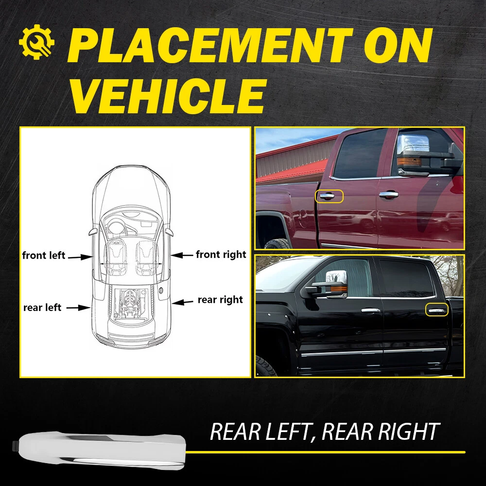 Fit for: Chevrolet 2016-2022 Silverado 1500 Custom 2015-2018 Silverado 1500 LS 2015-2021 Silverado 1500 SSV 2022 Silverado 1500 ZR2 2014-2022 Silverado 1500 (submodel: High Country, LT, LTZ, WT) 2019-2022 Silverado 1500 (submodel: Custom Trail Boss, LT Trail Boss, RST) 2019 Silverado 1500 LD (submodel: Custom, LT, WT) 2020-2022 Silverado 2500 HD Custom 2015-2022 Silverado 2500 HD (submodel: High Country, LT, LTZ, WT) 2015-2022 Silverado 3500 HD (submodel: High Country, LT, LTZ, WT) 2015-2016 Suburban LTZ 2017-2020 Suburban Premier 2015-2020 Suburban (submodel: LS, LT) 2015-2016 Tahoe LTZ 2017-2020 Tahoe Premier 2X Rear Exterior Chrome Door Handle Set Chevy for 14-19 Silverado GMC Sierra Fit for: Chevrolet 2016-2022 Silverado 1500 Custom 2015-2018 Silverado 1500 LS 2015-2021 Silverado 1500 SSV 2022 Silverado 1500 ZR2 2014-2022 Silverado 1500 (submodel: High Country, LT, LTZ, WT) 2019-2022 Silverado 1500 (submodel: Custom Trail Boss, LT Trail Boss, RST) 2019 Silverado 1500 LD (submodel: Custom, LT, WT) 2020-2022 Silverado 2500 HD Custom 2015-2022 Silverado 2500 HD (submodel: High Country, LT, LTZ, WT) 2015-2022 Silverado 3500 HD (submodel: High Country, LT, LTZ, WT) 2015-2016 Suburban LTZ 2017-2020 Suburban Premier 2015-2020 Suburban (submodel: LS, LT) 2015-2016 Tahoe LTZ 2017-2020 Tahoe Premier 2015-2020 Tahoe (submodel: LS, LT, PPV, SSV) GMC 2014-2021 Sierra 1500 Base 2014-2022 Sierra 1500 (submodel: Denali, SLE, SLT) 2019-2022 Sierra 1500 (submodel: AT4, Elevation) 2022 Sierra 1500 (submodel: AT4X, Denali Ultimate, Pro) 2019 Sierra 1500 Limited Base 2019, 2022 Sierra 1500 Limited SLE 2022 Sierra 1500 Limited (submodel: AT4, Denali, Elevation, Pro, SLT) 2020-2022 Sierra 2500 HD AT4 2015-2021 Sierra 2500 HD Base 2022 Sierra 2500 HD Pro 2015-2022 Sierra 2500 HD (submodel: Denali, SLE, SLT) 2020-2022 Sierra 3500 HD AT4 2015-2021 Sierra 3500 HD Base 2022 Sierra 3500 HD Pro 2015-2022 Sierra 3500 HD (submodel: Denali, SLE, SLT) 2015-2020 Yukon (submodel: Denali, SLE, SLT) 2015-2020 Yukon XL (submodel: Denali, SLE, SLT) Specifications OE Number: 22923598, 22923594, GM1520151 Color: Chrome Placement on Vehicle: Rear left + rear right of outer door Features: *Perfect Fitment Comply with the industrial standards, use it with confidence. *Strict Quality Control All of our handles undergo strict quality control not just before shipping but throughout the production process. *Durable Material Mainly made of high-quality material to ensure the long service life and durability. *Simple Installation Easy installation with direct replacement, other modifications are not required. *Warm Notice Please double-check the part number and models in the description to guarantee it fits your vehicle before ordering. Packaging Include: Door handle*2 Item Specifics Finish Chrome Fitment Type Direct Replacement Interchange Part Number 22923598, 22923594, GM1520151 Number of Pieces 1 Brand AUXITO Features Without Key Hole 30-Day Return Policy Manufacturer Part Number MBS-WM-SILVERADO-14-19 Manufacturer Warranty 1-year unlimited-mileage warranty OE/OEM Part Number 22923598, 22923594 Other Part Number 22923598, 22923594 Part Link Number GM1520151 Part Name Exterior Door Handle Partslink Number GM1520151 Performance Part No Placement on Vehicle Left Right, Rear Quantity Sold individually Superseded Part Number 22923598, 22923594, GM1520151 Type Exterior Door Handle Payment We accept PayPal via eBay Secure Check-Out only. Immediate payment needs to be processed for items with Add to Cart option so that any promotional discounts can be applied to your order immediately. Shipping 1 .We do everything we can to ship your orders out as soon as possible. 2. Shipping and Handling: We process orders within two business day after the payment was clear. Returns Our 30-day Satisfaction Guarantee assures our customers that they will receive all orders promptly and exactly as described. In addition, it allows customers to return new and unused products in their original factory condition for any reason within 30 days from the date of purchase. 1. All returns must be pre-approved by AUXITO and have a return merchandise authorization(RMA) number. Unauthorized returns will not be accepted. 2. Buyers are responsible for appropriate packing, returning shipping cost, insurance and returning the item in "new" condition. Used items will not be accepted for return. 3. We will replace the returning item with an identical item, issue a full store credit or a full refund. Contact Us Our Working Time:(GMT+8)Monday to Friday,9:00-18:00. For inquires and customer support, please send your email via ebay email system. All emails will be responded to within 24 hours during business days. Feedbacks 1. We appreciate your business and strived to improve our customer service and our commitment to quality. 2. We will leave a positive feedback immediately after payment is received. We appreciate a positive feedback as much as you do. 3. If for some reason there is any issue with the purchase, please contact us prior to leaving feedback, and we will be glad to work with you to have it resolved. DESCRIPTION PAYMENT SHIPPING RETURN POLICY CONTACT US Hot Item Fit For 2015-2019 Hyundai Center Light Gray Sonata Armrest Console Lid Cover USD 13.29 Waterproof Motorcycle Handlebar Dual USB Phone Charger Cigarette Lighter Socket USD 13.29 4" Red Truck Long Performance High Flow Cold Air Intake Cone Dry Filter Cotton USD 27.54 AUXITO 7440/7443 Turn LED Signal Light Bulbs Anti Hyper Flash Amber Super Bright USD 21.84 146PCS For Toyota RAV4 Fender Door Hood Bumper Trim Clip Retainer Fastener Kit USD 10.92 Hot Item 4" Red Truck Long Performance High Flow Cold Air Intake Cone Dry Filter Cotton USD 27.54 146PCS For Toyota RAV4 Fender Door Hood Bumper Trim Clip Retainer Fastener Kit USD 10.92 Waterproof Motorcycle Handlebar Dual USB Phone Charger Cigarette Lighter Socket USD 13.29 AUXITO 7440/7443 Turn LED Signal Light Bulbs Anti Hyper Flash Amber Super Bright USD 21.84 Fi