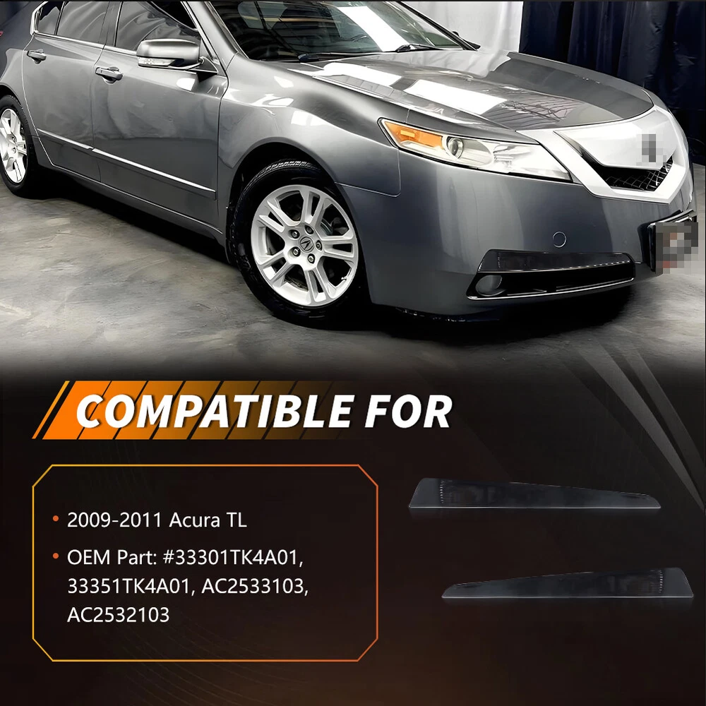 Product Detail Copyright©MotoringPlus Details This page features One Pair (2 Pieces) Smoked / Tinted Lens Front Bumper Parking Turn Signal Lights Kit For 2009-2011 Acura TL These lamps are made with high-quality Polymethy l Methacrylate (PMMA) and Polycarbonate (PC) plastics No modification required! Each piece is easy to install with an OEM fit, Instantly transform your car and give it a modern and trendy appearance and feel! Note: Bulbs & socket adapters are NOT included Specifications: 100% Brand new and quality Lens Color: Smoked / Tinted A complete set of two lamps, replacement for the driver side & passenger sides Compatible With 2009-2011 Acura TL Directly replace or repair your car's front bumper turn signal lamps CE DOT SAE approved Application: For 2009 2010 2011 Acura TL Replace OEM # 33301TK4A01, AC2533103, 33351TK4A01, AC2532103 Please make sure you have available space in your car for these lamps to fit before placing or der. Package include: 2PCS Driver & Passenger side Front Bumper Turn Signal Lights (Smoked / Tinted Lens) Installation: Direct replacement the OEM parts without any modification needed Note: Professional installation is highly recommended! Returns Policy Shipping Policy Payment Method About US Contact Us Returns Policy Please check actual stock bulb model & housing size before purchasing replacement bulbs. Compatibility list on eBay listing is not a complete list and it is a known issue that there are errors on it. Half year warranty from the purchased date. Please contact us via ebay message before returning the defectived item. Our warranty does not extended to any products that are physically damaged or that are not under normal operating conditions as a result of misuse or improper installation on the buyers/user's part. Return items should include the original packaging and all accessories. Buyers MUST contact us for the returning address. In all cases, buyers pay shipping fees at their own cost to return products for exchange or refund. We will be responsible for the postage of replacements. Refund will be made upon receipt of the returned item. Our goal is to make sure you are a happy buyer and pleasant shopping with us. If you have any problems, please contact us immediately before leaving us any negative or neutral feedback. We understand the concerns and frustrations you might have, and will do our endeavor to resolve the issues. Please give us the opportunity to resolve any problem. Shipping Policy Item will be shipped from China / Hongkong Post by Standard International Post. All orders will be shipped to buyer's paypal shipping address within 24 hours after receiving your verified payment (Excluding Weekends and Public Holidays) International order may takes about 15-25 business day delivery time for most countries. Transactions on weekends or public holidays,item will be sent later on work time. Payment Method We accept Paypal ONLY. Unpaid transaction will be cancelled after 8 days About US Contact Us We are dedicated to providing you the best shopping experience and high quality items at a very low price. If you are satisfied with our service,Please remember to leave us 5 STAR for All Detailed Seller Ratings If you found any problem/issue of our merchandise/service,please let us know before leaving any negative feedback! Please feel free to contact us if you have any question. Any message will be replied within 24 hours. We will try our best to help! Home Payment Shipping About us Contact us Copyright©MotoringPlus Home Payment Shipping About us Contact us Store Categories Store Categories SIDE MARKER LIGHT TURN SIGNAL LIGHT TAIL BRAKE LIGHT LICENSE PLATE LIGHT DECODER OTHERS Other Product Detail Copyright©OFFKAT Why Buy From Us Why Buy From Us Details This page features One Pair (2 Pieces) Smoked / Tinted Lens Front Bumper Parking Turn Signal Lights Kit For 2009-2011 Acura TL These lamps are made with high-quality Polymethy l Methacrylate (PMMA) and Polycarbonate (PC) plastics No modification required! Each piece is easy to install with an OEM fit, Instantly transform your car and give it a modern and trendy appearance and feel! Note: Bulbs & socket adapters are NOT included Specifications: 100% Brand new and quality Lens Color: Smoked / Tinted A complete set of two lamps, replacement for the driver side & passenger sides Compatible With 2009-2011 Acura TL Directly replace or repair your car's front bumper turn signal lamps CE DOT SAE approved Application: For 2009 2010 2011 Acura TL Replace OEM # 33301TK4A01, AC2533103, 33351TK4A01, AC2532103 Please make sure you have available space in your car for these lamps to fit before placing or der. Package include: 2PCS Driver & Passenger side Front Bumper Turn Signal Lights (Smoked / Tinted Lens) Installation: Direct replacement the OEM parts without any modification needed Note: Professional installation is highly recommended! Returns Policy Shipping Policy Payment Method About US Contact Us Returns Policy Our 60-day Satisfaction Guarantee assures our customers that they will receive all orders promptly and exactly as described. In addition, it allows customers to return new and unused products in their original factory condition for any reason within 60 days from the date of purchase. Buyers are responsible for appropriate packing, returning shipping cost, insurance and returning the item in "new" condition. Used items will not be accepted for return. We will replace the returning item with an identical item, issue a full store credit or a full refund. Our goal is to make sure you are a happy buyer and pleasant shopping with us. If you have any problems, please contact us immediately before leaving us any negative or neutral feedback. We understand the concerns and frustrations you might have, and will do our endeavor to resolve the issues. Please give us the opportunity to resolve any problem. Shipping Policy We only ship to paypal confirmed address. Item will be sent within 24 hours after pa