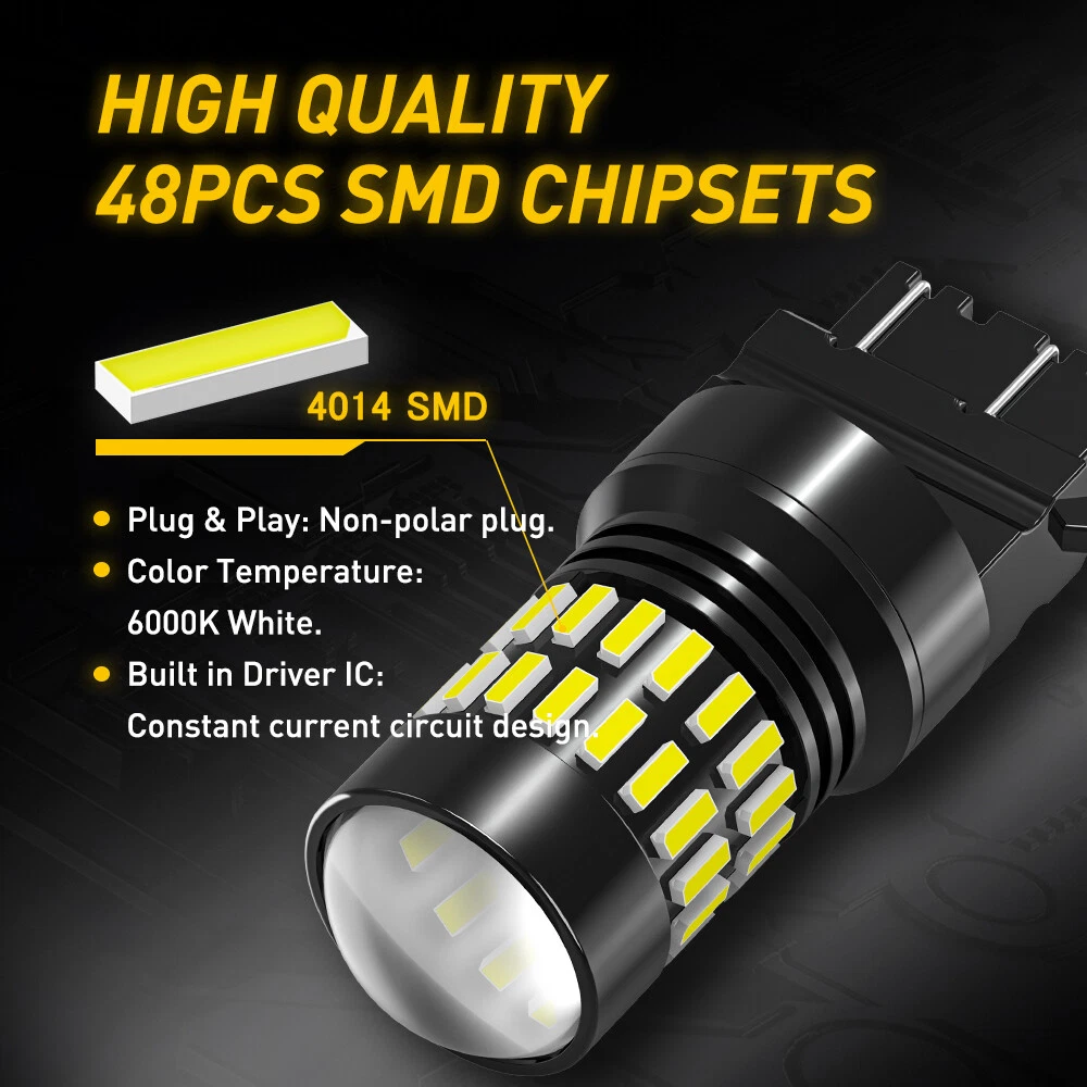 Feature: This item is extremely super bright 3157 6000K xenon white high power 48-4014 SMD led bulbs, especially designed for replacing Daytime Running Light,Driving Bulbs,turn signal light,back up reverse light, brake tail light,Parking light etc. This bulb is equipped with high quality 48 pieces led chips and luxury design that will make your cars looks much brighter than halogen or stock lamp,highly recommended. Most important Note: This bulbs is compatible with CK/SRCK and standard socket type, no worry about the burn out the fuse. Specification LED Chips: 48 pieces high power 4014 chips per bulb. Lumen: 1200LM/per bulb,Total 2400LM. 2X White 3157 48 SMD LED Tail Brake Stop Backup Reverse Turn Signal Light Bulb A Feature: This item is extremely super bright 3157 6000K xenon white high power 48-4014 SMD led bulbs, especially designed for replacing Daytime Running Light,Driving Bulbs,turn signal light,back up reverse light, brake tail light,Parking light etc. This bulb is equipped with high quality 48 pieces led chips and luxury design that will make your cars looks much brighter than halogen or stock lamp,highly recommended. Most important Note: This bulbs is compatible with CK/SRCK and standard socket type, no worry about the burn out the fuse. Specification LED Chips: 48 pieces high power 4014 chips per bulb. Lumen: 1200LM/per bulb,Total 2400LM. Warranty: Full ONE Year guaranteed for manufacturer quality. Color: 6000K xenon white CANBUS ERROR FREE: No. For some vehicles, it may require install decoder or load resistor to avoid turn signal hyper flash or fast blinking. Application: Daytime Running Light,Driving Bulbs,turn signal light,back up reverse light, brake tail light, etc. Voltage: 12V~24V, bulit in IC driver,much stable current than normal led bulbs in the marker, longer life span. Size: as our photo show. Please Note: Please check your car manual or original bulb to confirm the bulb size, length is correct or not before purchasing to save your time. The compatible vehicle lists is only partial lists,no fully included due o Ebay listing compatible vehicles limitation. Please clickSylvnia Bulb size guide to check the bulb size is correct or not. Cross Reference: 3156 3056 3156A 3456 4156 3157 3157A 3047 3057 3357 3457 3457A 3757 4057 4111 4157,4157NA,3157LL,3356, 4157, 4114,3157A, T25, etc. Package including: 2x 3157 LED 4014 48-SMD super bright white led bulb Item Specifics Features CANbus Compatible Bulb Fitment Code 3156,3157,3056,3356,3456,4156,3047,3157A Manufacturer Warranty 2 Years More LED Car Light We have T15 921 1156 1157 3157 3156 7443 7440 P21W PY21W Light Colour White MPN AUXITO48H3157 More Car Light We Have 7 Indicator Light/Glove Box Light/Footwell Light More Car Light We Have 2 Work Light/Wheel Light/Warning Strobe Light More Car Light We Have 6 Instrument Panel Light/High Beam/Headlight Colour Temperature 6500K OE/OEM Part Number AUXITO3157LED Voltage 12V More Car Light We Have 8 Fog Light/Emergency Light/Daytime Running Light Performance Part YES Lighting Technology LED Reference OE/OEM Number AUXITO HIGH QUALITY LED Suitable For Accessory Light Brake Light Emergency Light Parking Light Rear Light Reverse Light Third Brake Light Combination Light Daytime Running Light Off-Road Light Indicator Light Tail light Turn Signal Light Tail Light Beam Angle 360° More Headlight LED Kit We Have H1 H3 H7 H11 H9 H8 9005 HB3 9006 HB4 9014 H4 More Car Light We Have 9 Combination Light/Centre Brake Light/Brake Light Universal Fitment YES Model 3157 Car Light HIGH Quality More Headlight LED Kit We Have 2 9003 HB2 9004 HB1 9007 HB5 9008 H13 More Car Light We Have 5 Off-Road Light/Map Light/Low Beam/Light Bar Interchange Part Number AUXITO48H3157 More Car Light We Have 1 Dome Light/Parking Light/Number Plate Light More Foglight LED Kit We Have H1 H3 H7 H10 H11 H8 H9 H16 9005 HB3 9006 HB4 881 Light Color Cold White Number of Bulbs 2 More Car Light We Have 4 Side Indicator Light/Reverse Light/Rear Light Classic Car Part YES More Car Light We Have 3 Underbody Light/Third Brake Light/Side Marker Light Manufacturer Part Number AUXITO UK STOCK More Car Light We Have 10 Boot Light/Accessory Light Brand AUXITO More LED Car Light We have 2 T10 W5W 194 168 175 C5W 31mm 36MM 39MM 41/42MM Bulb Life Hours Up to 30,000 Hours Type Light Bulb Color Temperature 6500K FAQ ♥ If you have a decoding problem or any other problems, please contact us first, we will help you with it. We will reply you within 24 hours in working days. I'm a new seller, thanks a lot for your trust and convince! I will serve you with all my heart. ♥ Q1: Will this bulb fit my vehicle? A: We can match almost any vehicle to one of our bulb sizes. eBay only lets us include some vehicle fitments per listing, but if your vehicle does not show up on the compatibility table at the top of our listings, welcome you to contact us for free consulation before purchasing a product. Q2: My item has not arrived, what's taking so long? A: Sometimes items take longer than expected, especially if it’s going far or to rural area. Check with your post office to see if your item has been held up. Sometimes Royal Mail will not update a tracking number until it has arrived at its destination. If your item still don't arrive after a few days, let us know so we can double check for you and help solve it asap. Q3: My bulbs won't fit, help! A: Special bulb holder may be required. See if you can take the holder from the stock bulb. If not, let us know. The bulb size may be wrong, double check the item you received with the item you ordered. Do you have an aftermarket lighting housing? These may not be perfectly fitted for aftermarket bulbs and will require some manual modifications. Q4: Neither side lighting up? Both sides flicker, hyper flash, or work inconsistantly. A:Check the light fuses, and then check the ballast plugs to insure correct installation. If this doesn't work, there may be a voltage problem with the vehicle. You probably jus