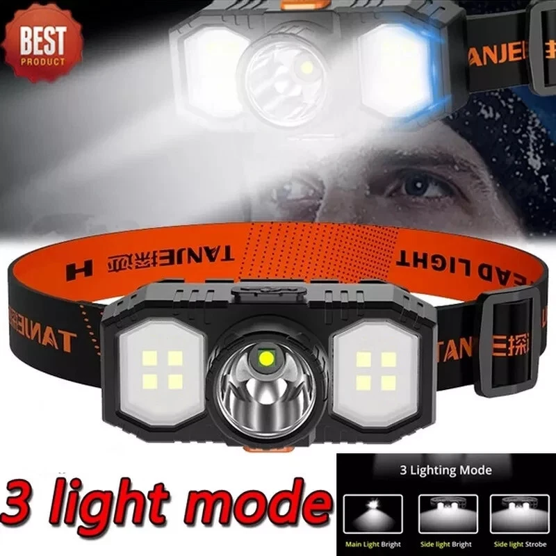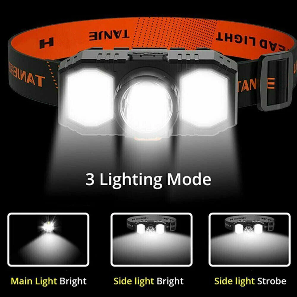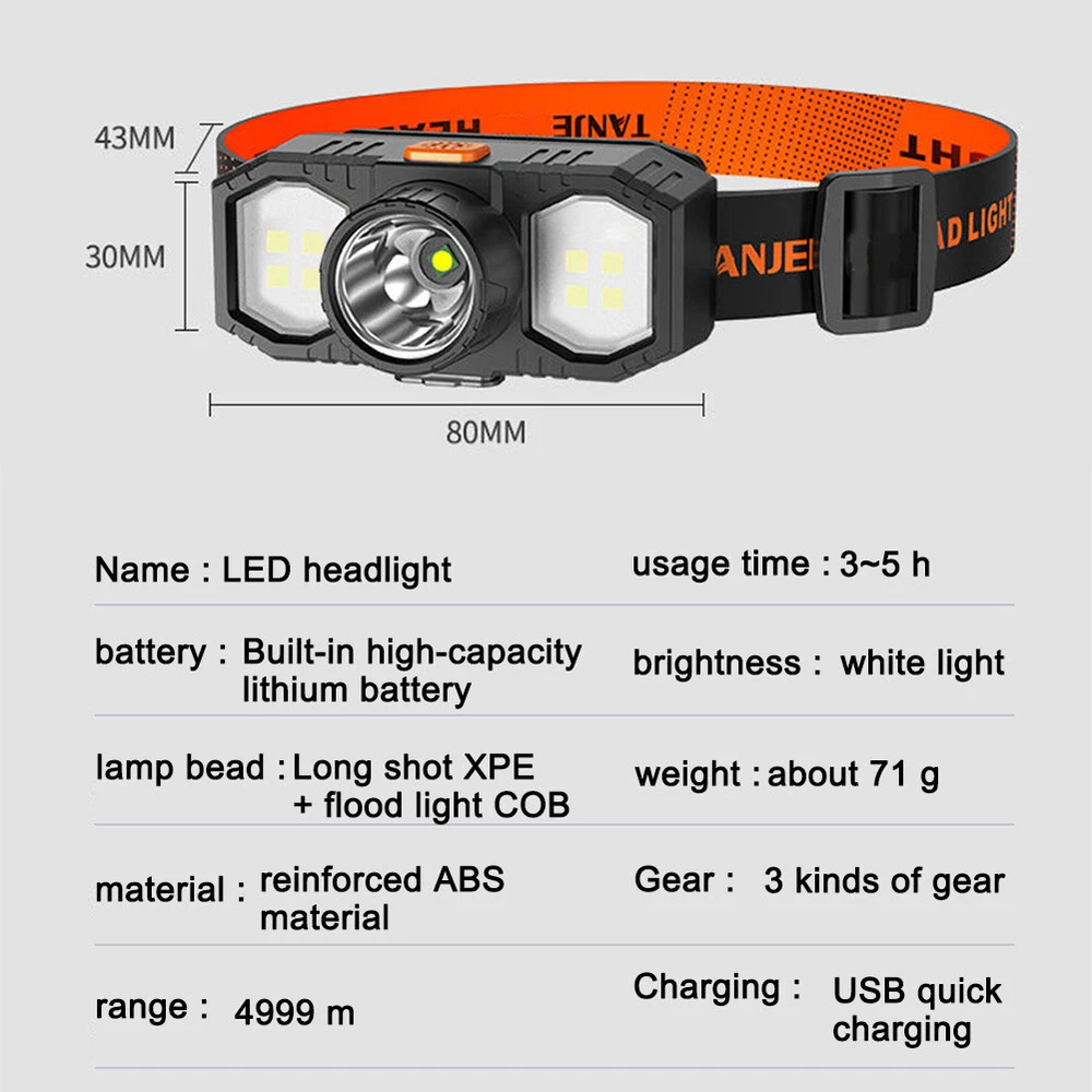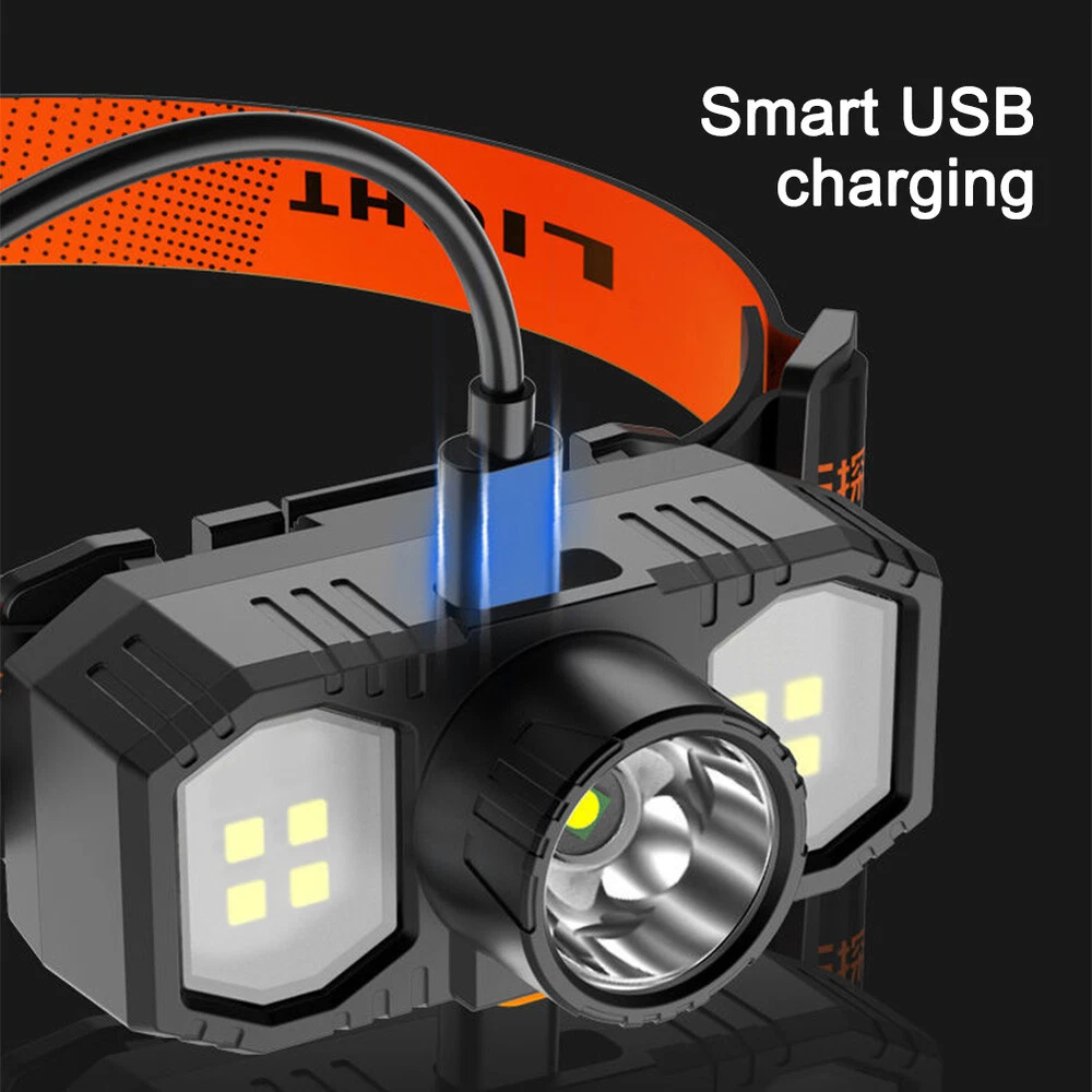 2XCOB Faro Recargable USB Super Brillante LED Cabeza Antorcha Faro Impermeable