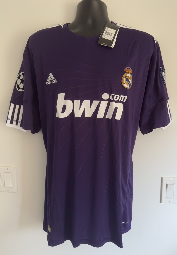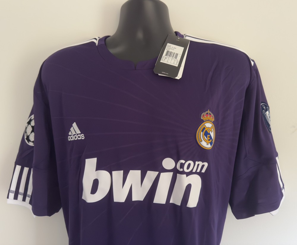 2XL BNWT Real Madrid 2010/11 Third Jersey Shirt 10/11 3rd Top Kit Ronaldo Era. Dispatched via Canada Post. Authentic Real Madrid FC X Adidas product. Product code: P95678 Brand new with tags condition. No stains, holes, marks or other blemishes on the fabric. The shirt has been stored out of direct sunlight to avoid any heat related damage. Shirt sponsor (bwin) is in perfect condition with no peeling, cracking or lifting. Adult size double extra-large (2XL). Pit-to-pit measurement is approximately 24.5 inches. Shoulder-to-hem measurement is approximately 32 inches. Official Champions League Star Ball patch on right sleeve. Official Champions League Trophy (9 times winners) patch on the left sleeve. The patches are the official flock material and have been professionally applied. They show no peeling or other signs of wear. All pictures are my own and are of the exact shirt you will receive. All available items ship from a pet-free and smoke-free environment. All purchases will be packed securely and shipped the next working day.