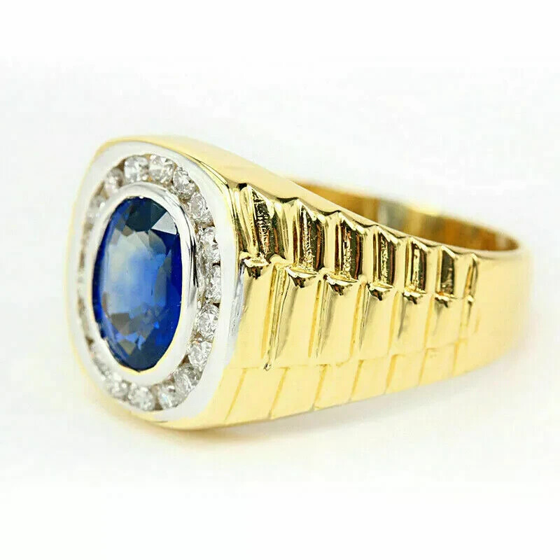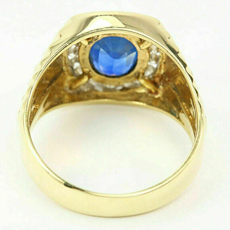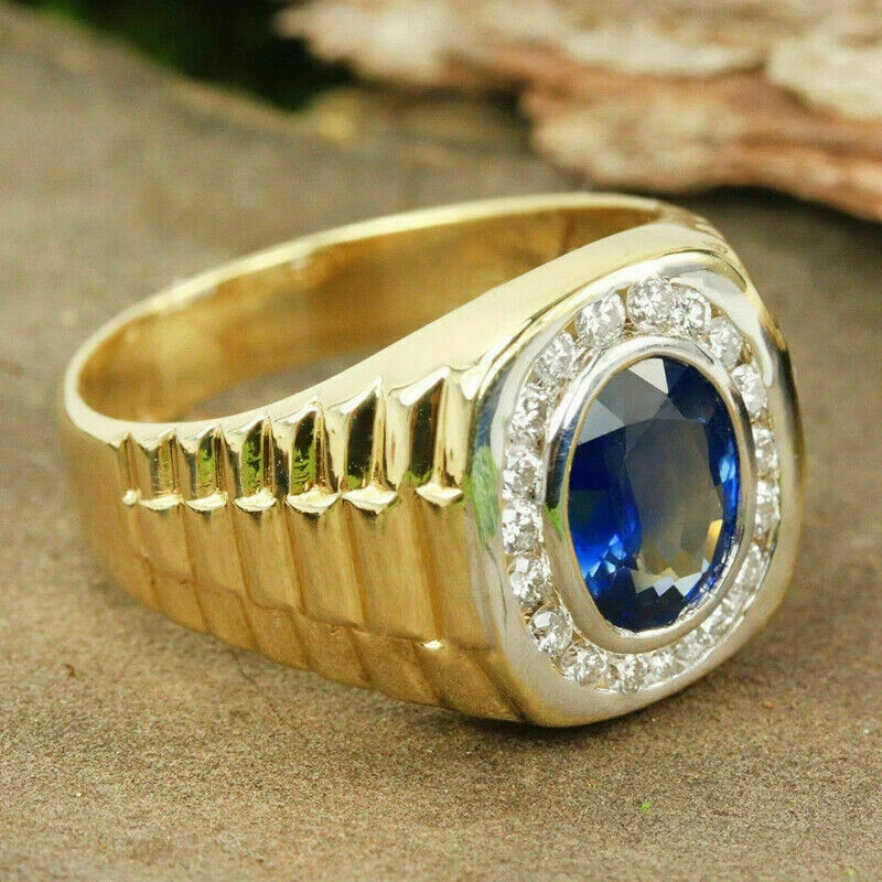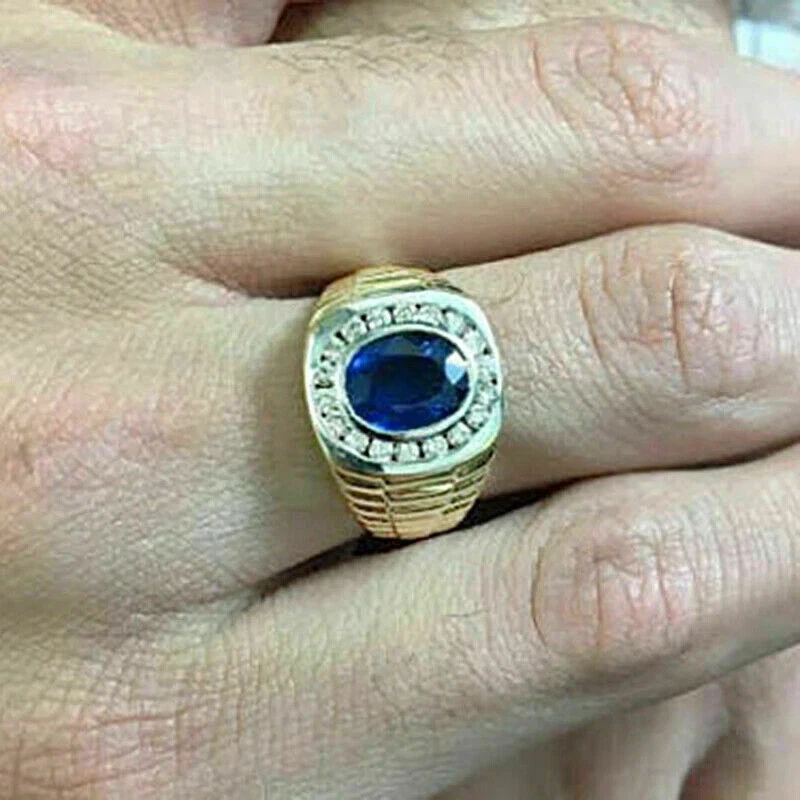 2ct Oval Lab-Created Sapphire Halo Men's Engagement Ring 14K Yellow Gold Plated Customization: Want to add your personal touch to this piece? Contact us and we will create one just for you. Most customization requests include: 1) Ring Resizing 2) Redesign 3) Metal Change (Silver/10K Gold / 14K Gold /18K Gold) 4) Metal Color Change (White/Yellow/Rose/Black) 5) Color Stones (White Topaz, Pink Sapphire, etc) 6) Engraving (Name or any message - no of characters subject to size of jewelry) 7) Anything under the sun that catches your fancy, we will give it a try :) Payment: We accept payment via PayPal only. You can also pay using your credit card, via paypal, by using paypal as a guest. Payment is required within 3 days of the sale of an item. Shipping: International shipments are usually delivered within 2 to 6 weeks, depending on the time taken to clear customs. We are not responsible for any delays due to customs. Please note that all countries charge a duty on imported goods. A customs clearing charge is also imposed in many countries. We are not responsible for the amount of duty or any other related charges. Terms & Sale: We want to ensure that you are completely satisfied with your purchase. If not, then please let us know before leaving any feedback and allow us to work with you to completely resolve any issues that you might be facing. You can return the item for a full refund LESS shipping, within 14 days of item(s) receipt date. There is no restocking fee. 100% Satisfaction Guaranteed. All returns must reach us within 14 days after the item was delivered to you the item must be in the original condition and with the original tags attached. Contact Us: You can contact us by clicking on 'ask seller a question'