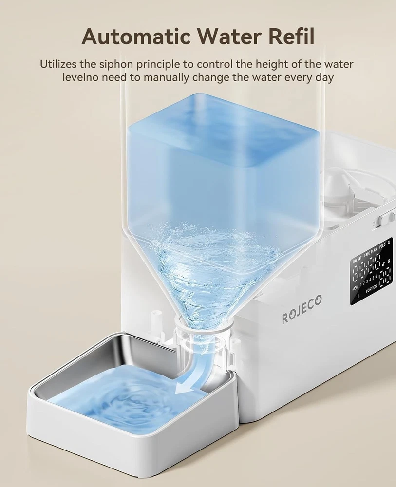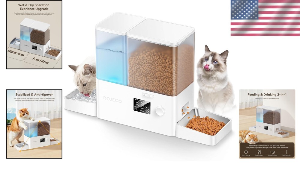 2-in-1 Automatic Cat & Dog Feeder with Water Dispenser – BPA-Free & Hygienic ‹ › ‹ › ‹ › ‹ › ‹ › ‹ › ‹ › ‹ › ‹ › ‹ › 2-in-1 Automatic Cat & Dog Feeder with Water Dispenser - BPA-Free & Hygienic Features: 2-in-1 feeder with separate water dispenser to prevent wet food and promote pet health. 5L food and 3.5L water capacity supports extended travel for up to 7 days for 2 cats. Transparent barrels for easy monitoring of food and water levels. LED lights for nighttime visibility and reminders when food is low or the water needs replenishing. Supports 1-6 meals per day, with adjustable portions for a scientific feeding plan. Graining siphon automatic water supply maintains a consistent water level. Dual power supply via Type-C interface and batteries for worry-free operation during outages. Easy to clean with removable parts and accessories, including a cleaning brush. Benefits: Reduces the risk of pets eating moldy or spoiled food. Prevents overfeeding and promotes healthier eating habits with precision feeding options. Peace of mind during extended travel or busy days, with extended food and water supplies. Enhanced hygiene ensures fresh food and clean water for your pets. Durable, BPA-free materials contribute to a safe feeding environment for your loved ones. Why choose our 2-in-1 Automatic Feeder? Give your pets the care they deserve, even when you're not home. Our 2-in-1 Automatic Cat & Dog Feeder combines convenience with advanced features to ensure your furry friends are fed and hydrated, no matter the circumstances. With ample capacity for extended trips, cutting-edge hygiene design, and easy cleaning, this feeder is truly a game-changer. Invest in your pet's health and well-being today with this innovative feeder and water dispenser. Experience the freedom of worry-free feeding! Shipping Free & Fast Shipping - We offer free shipping to most of the USA with a normal delivery time of 3-7 days. However, due to the current situation, additional delivery time (up to 3 weeks) may be required for some items. Alternative Carriers - We may use alternative carriers (e.g. USPS, FedEx, UPS, etc.) to ensure your package arrives safely and on time. Due to the use of multiple carriers, we are unable to provide a tracking number automatically. Handling Time - Orders are processed and shipped within 1-2 business days of receiving cleared payment. Shipping Restrictions - Shipping to Alaska, Hawaii, Puerto Rico, Guam, and other US territories may incur shipping charges or delivery restrictions. Please contact us before ordering, or your order can be refunded/cancelled. State Restrictions - There may be restrictions based on your state of purchase. For example, certain items may not be shipped to California due to state regulations. Contact for Tracking Updates - If you require tracking updates or have any concerns about the delivery of your order, please feel free to contact us, and we will be happy to assist you. Return 30-Day Hassle-Free Returns - We want you to be completely satisfied with your purchase. If you are not, you can return the item within 30 days of receiving it for a full refund or exchange. Easy Return Process - To start a return, simply contact us and we will provide you with a prepaid return shipping label and detailed instructions. Restocking Fee - There are no restocking fees for returns. However, the buyer is responsible for return shipping costs if the return is not due to a seller's error. Refund Processing Time - Refunds will be processed within 5 business days of receiving the returned item in its condition. Payment We accept all major credit cards, PayPal, and Apple Pay for your convenience. Your payment information is secure and encrypted to ensure a safe and seamless transaction. Please complete your payment within 3 days of purchase to avoid any delays in shipping. Feedback Your feedback is extremely important to us. We strive to provide the best products and customer service possible. If you are satisfied with your purchase, please take a moment to leave us a positive review. If you have any concerns or issues with your order, please contact us before leaving negative feedback. We are committed to resolving any problems and ensuring your satisfaction. Contact Us If you have any questions or concerns, please feel free to out to our customer support team. You can contact us through the eBay messaging system. We are available Monday to Friday, 9:00 am to 5:00 pm EST, and we will do our best to respond to your inquiry within 24 hours. Buy it now and enjoy a pleasant shopping experience! Model: Automatic Cat Feeder and Water Dispenser MPN: Automatic_Cat_Feeder_and_Water_Dispenser Unit Quantity: 1.0 count Features: Automatic Feeder,2-in-1 design,Automatic feeding,Feeding schedule,Food storage,Removable,Hygiene visibility,BPA-free materials,Granular feeding adjustment,LED lights for visibility,Siphon principle for water,Stable triangular design,Easy to clean Type: Automatic Feeder Material: Plastic Color: White Number of Bowls: 2 Life Stage: All Dog Breed: Extra small Smart Home Protocol: Manual Smart Home Compatibility: None