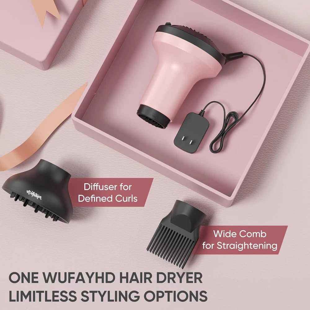 $ 34.84Travel Hair Dryer Ceramic Diffuser Curly Hair Fast Dry Frizz Reduction 3Speeds