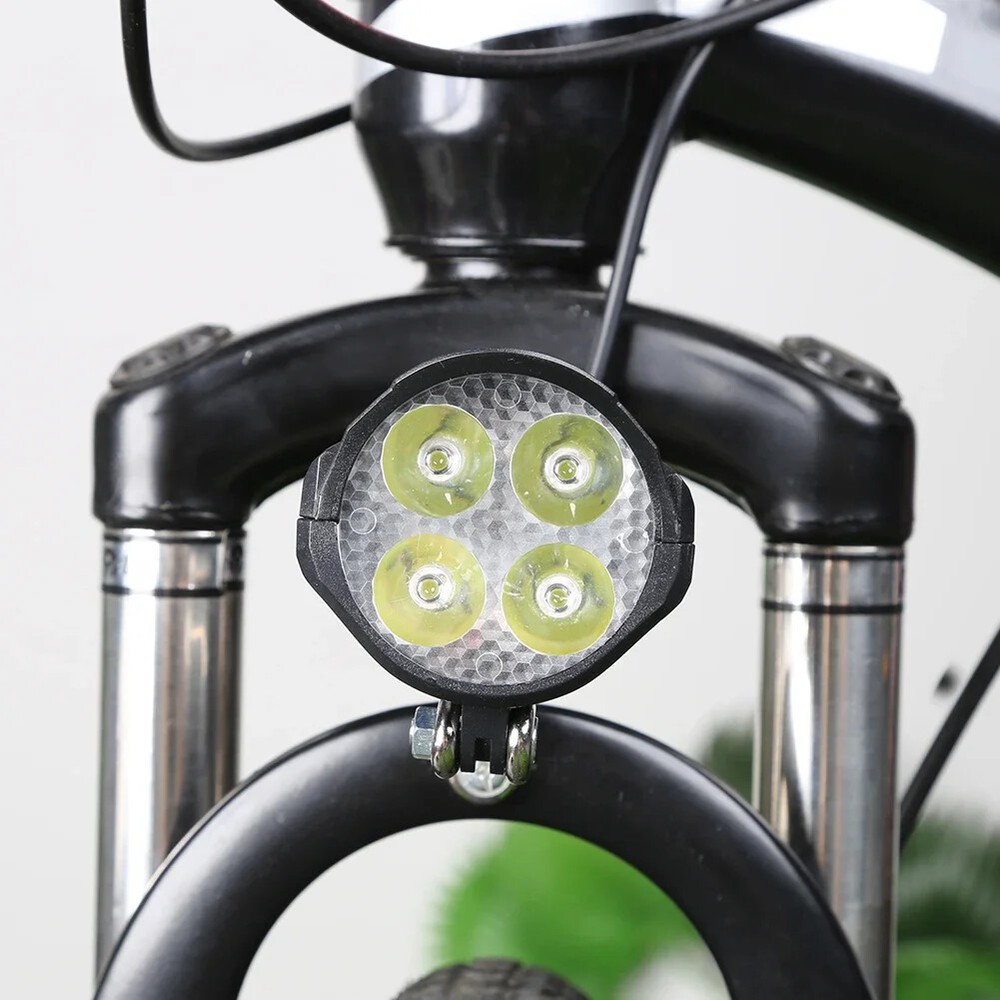 48V Electric Scooter LED Front Light with Horn High Brightness LED Headlight Energy Saving Easy Installation Cycling Accessories Feature: 1. Multifunctional Design: This 48V electric bike light combines a front headlight and horn in one unit, providing illumination and audible warning signals for riders in low visibility conditions, enhancing safety. 2. High Brightness Illumination: Equipped with high-brightness LED light source, this light offers clear and bright illumination, allowing riders to see the road ahead more clearly, avoiding obstacles and potential hazards. 3. Powerful Horn Sound: The built-in horn delivers loud and clear audio, providing effective warning signals to pedestrians and other vehicles, alerting them to the presence of the electric bike. 4. Easy Installation: With its simple design, this light is easy to install and suitable for various electric bike models. No professional assistance is required, making installation hassle-free. 5. Environmentally Friendly: Utilizing LED light source technology, this light has low power consumption, which not only saves energy but also extends the battery life of the electric bike. By reducing environmental impact, it promotes eco-friendliness. Specification: Main material: ABS Product color: black Product body size: approximately 63mm (2.48in) x 60mm (2.36in) x 53mm (2.09in) Net weight of product: approximately 90g Operating voltage: 48V Note: Due to the different monitor and light effect, the actual color of the item might be slightly different from the color showed on the pictures. Thank you! Please allow 1-2cm measuring deviation due to manual measurement. 1 x Electric Bicycle Light