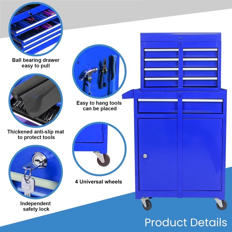 You may also like Floating Tool Rack Heavy Duty Pegboard Storage Holds 40 Tools Garage Organizer 72.54 USD 76.36 USD Free shipping 5% off 5-Drawer 2-in-1 Rolling Tool Box Chest Cabinet on Wheels for Garage Workshop New 185.24 USD 194.99 USD Free shipping 5% off 2-in-1 Rolling Tool Chest Box Cabinet on Wheels for Garage Workshop 5-Drawer Red 155.6 USD 163.79 USD Free shipping 5% off 22in Plastic Portable Tool Box Hardware Storage Organizer Removable Utility Tray 25.79 USD 27.15 USD Free shipping 5% off Power Tool Organizer Cart W/ Charging Station Garage Floor Rolling Storage Cart 132.51 USD 139.48 USD Free shipping 5% off The AK-HTS1-001 2 in 1 rolling tool chest is sturdy, and not easy to deform or bend. made of high-quality cold-rolled steel. And coated with an anti-corrosion paint surface which is waterproof and rustproof. Design to organize and store tools better! Perfect for any kind of project – DIY projects, home improvement, auto mechanics, and more. The tool chest has 5 drawers and 1 large bottom cabinet, which has various spaces to store various tools. this tool box is designed with 4 360° universal wheels(2 brake wheels) to make it ideal for professionals who need to bring their tools to different job sites. Meanwhile, comfortable side handles make it easier to push or pull the tool chest, provide stability and support, and improve control and maneuverability. This rolling tool chest is great for home workshops and some professional environments and could be placed in the garage, workshop, warehouse, etc. CONVENIENT STORAGE SOLUTION - Our AK-HTS1-001 rolling tool chest offers ample space to organize and store your tools, ensuring easy access and efficient workflow in your garage or workshop. (Tips: For the convenience of transportation, we placed the top of the toolbox at the bottom of the toolbox. ) DURABLE CONSTRUCTION - Built with high-quality materials, our tool chest is designed to withstand heavy-duty use and resist wear and tear, providing long-lasting durability and reliability. Design to organize and store tools better! Perfect for any kind of project - DIY projects, home improvement, auto mechanics, and more. SMOOTH ROLLING WHEELS - Equipped with sturdy wheels, this rolling tool chest allows for effortless mobility, making it easy to transport your tools to different locations within your workspace. VERSATILE DESIGN - With multiple compartments and drawers, our tool chest offers versatile storage options, allowing you to categorize and arrange your tools systematically for quick identification and retrieval. SECURE LOCKING SYSTEM - Rest assured that your tools will be safe and secure with the built-in locking mechanism of our rolling tool chest, providing peace of mind when storing valuable or sensitive equipment. PRODUCT INFORMAITON Overall: 23” L x 11” D x 47. 2” H Overall Product Weight: 38. 6 lb Box Size: 27” L x 13” W x 22. 5" H;46 lb Product Type: Rooling Tool Chest Primary Material: Steel Locking System: Yes Drawers Included: Yes Number of Drawers: 5 Ball-Bearing Drawer Glides: Yes Color: Red; Blue; Black; Orange Drawer Liner Included: Yes Soft Close or Self Close Drawer Glides: Yes Wheels Included: Yes Locking Casters/Wheels: No Removable Casters/ Wheels: Yes Cabinet: Yes Shelves Included: Yes Number of Shelves: 1 Legs Included: No Power Strip Included: No Side Push Handles: Yes Supplier Intended and Approved Use: Residential Use Weight Capacity: 300 lbs Powder Coated: Yes Drawer Slide: Soft Close; Ball Bearing Worktop Material: Steel Adjustable Shelves: Yes Assembly Required: Yes Installation Location: Wheels; Side Push Handles You may also like Floral Medley 3-Compartment Utensil Holder Kitchen Organizer Ceramic Stoneware 32.12 USD 33.81 USD Free shipping 5% off Painted Meadows Mug Set 15oz Ceramic Microwave Dishwasher Safe Rustic Kitchen US 13.16 USD 13.85 USD Free shipping 5% off Vintage Floral Canister Acrylic Knob Kitchen Storage Coffee Tea Flour Home Decor 29.24 USD 30.78 USD Free shipping 5% off Scalloped Stoneware Serving Bowl Durable Microwave Dishwasher Safe Centerpiece 23.52 USD 24.76 USD Free shipping 5% off Fresh Floral Glass Hummingbird Feeder Ant Moat Leakproof 20oz 6 Feeding Ports US 20.57 USD 21.65 USD Free shipping 5% off Electric Salad Spinner Wash Dry Vegetables Fruits Lettuce Bowl Kitchen Tool New 26.68 USD 28.08 USD Free shipping 5% off Wildflower Enamel Steel Colander 5 Quart Colorful Floral Design Kitchen Tool New 32.8 USD 34.53 USD Free shipping 5% off Keepsake Floral Stainless Steel Serving Spoon Set 2 Piece Cooking Mixing Serving 14.38 USD 15.14 USD Free shipping 5% off Peel Stick Removable Floral Wallpaper Adhesive Vinyl Home Decor 30.75sq ft New 25.08 USD 26.4 USD Free shipping 5% off Tulip Fragrance Oil Diffuser Plug-in LED Night Light Aromatherapy Home Decor New 18.09 USD 19.04 USD Free shipping 5% off Comfortable Small Pet Bed Plush Polyester Farmhouse Floral Design Dogs New 40.78 USD Free shipping Ceramic Pig Planter W/ Drainage Hole Rustic Home Decor Garden Accent Piece New 27.64 USD 29.1 USD Free shipping 5% off
