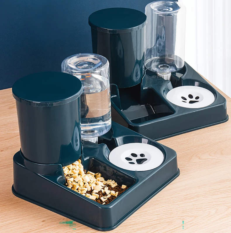 The Automatic Cat Feeder Water Dispenser Set is a convenient 2-in-1 solution for feeding and watering your pets. With two bowls included, one for food and one for water, this set ensures your furry friends have easy access to their meals and hydration. The tilted design helps prevent food and water from getting mixed together, and the automatic feeder feature makes feeding time hassle-free. Made of durable plastic in a sleek black color, this set is a practical and stylish addition to any pet owner's household.
