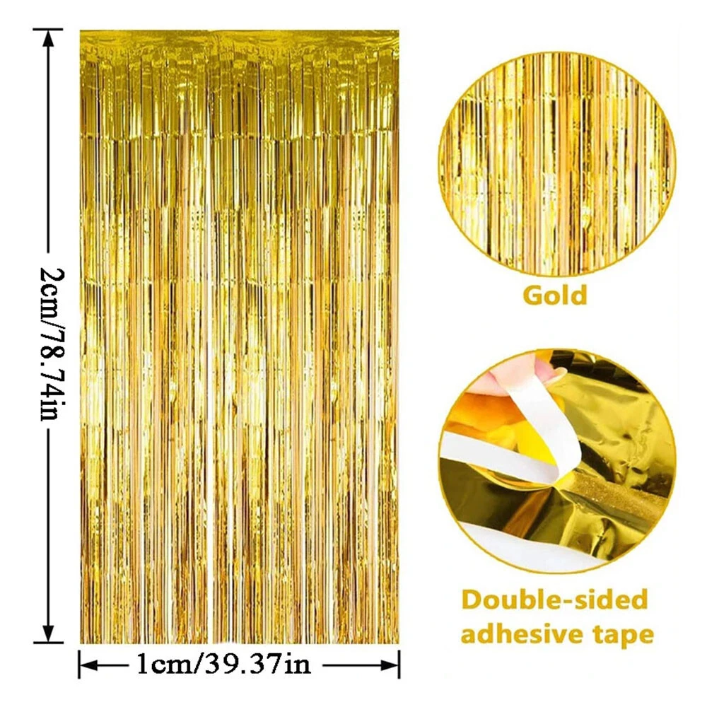Wall Decor Tinsel Tassels Curtain Party Decoration Metallic Foil Backdrop board Metallic Tinsel Foil Fringe Curtains Backdrop for Birthday New Year Eve Party Photo Wedding Decor Advanced Birthday Party Decorations Backdrop Wall Foil Tassel Fringe Curtain Kids Adult Photo Booth Baby Shower Party Supplies Type: rain curtain Size:Length:2 meters(6.5 feet) Width:1 meter(3.2 feet) Color:As Show Use For: Wedding, birthday, party, Valentine's Day and other atmosphere background curtains. With double-sided adhesive tape on top, easy to paste on window, door and walls. Perfect wall decor and door decor for Christmas, Adult Anniversary birthday party, wedding party, etc. Also can be used as backdrop for DIY photo booths. Use: party decoration, birthday, wedding decoration, baby shower, mermaid party decor, bachelorette party decor etc. Package Include: 1 Bag 1*2m Metallic Tinsel Foil Fringe Curtains each small package is individually packaged