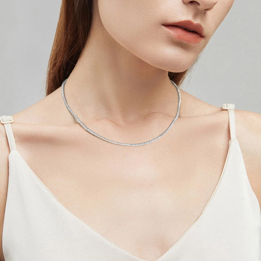 2mm D Color VVS1 Moissanite Women Tennis Chain Necklace S925 Silver Pass Tester