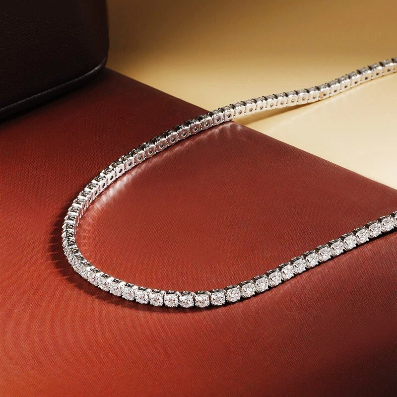 Country/Region of Manufacture: China Occasion: Anniversary, Birthday, Christmas, Engagement, Graduation, Mother's Day, Valentine's Day, Wedding, Party, Daily Theme: Angels, Art, Beauty, Colleges & Universities, Family & Friends, Fashion & Costumes, Hip Hop, Love, Luck, Memorial Base Metal: Sterling Silver Closure: Lobster Necklace Length: 41cm (adjustable) Metal: Sterling Silver Type: Necklace MPN: Does not apply Certification: GRA Number of Diamonds: 121 Material: Moissanite, Sterling Silver Main Stone Color: White/Colorless Main Stone Creation: Lab-Created Cut Grade: Excellent Features: Engraved, Nickel-Free Diamond Clarity Grade: Very, Very Slightly Included (VVS1) Main Stone Shape: Round Country of Origin: China Gemstone Clarity Grade: Eye Clean Diamond Color Grade: D Setting Style: Channel-Set Main Stone: Moissanite Customized: Yes Style: Chain, Tennis Main Stone Treatment: Not Enhanced Metal Purity: 925 Brand: Muxi Jewelry Secondary Stone: Moissanite Total Carat Weight: 3.63ct