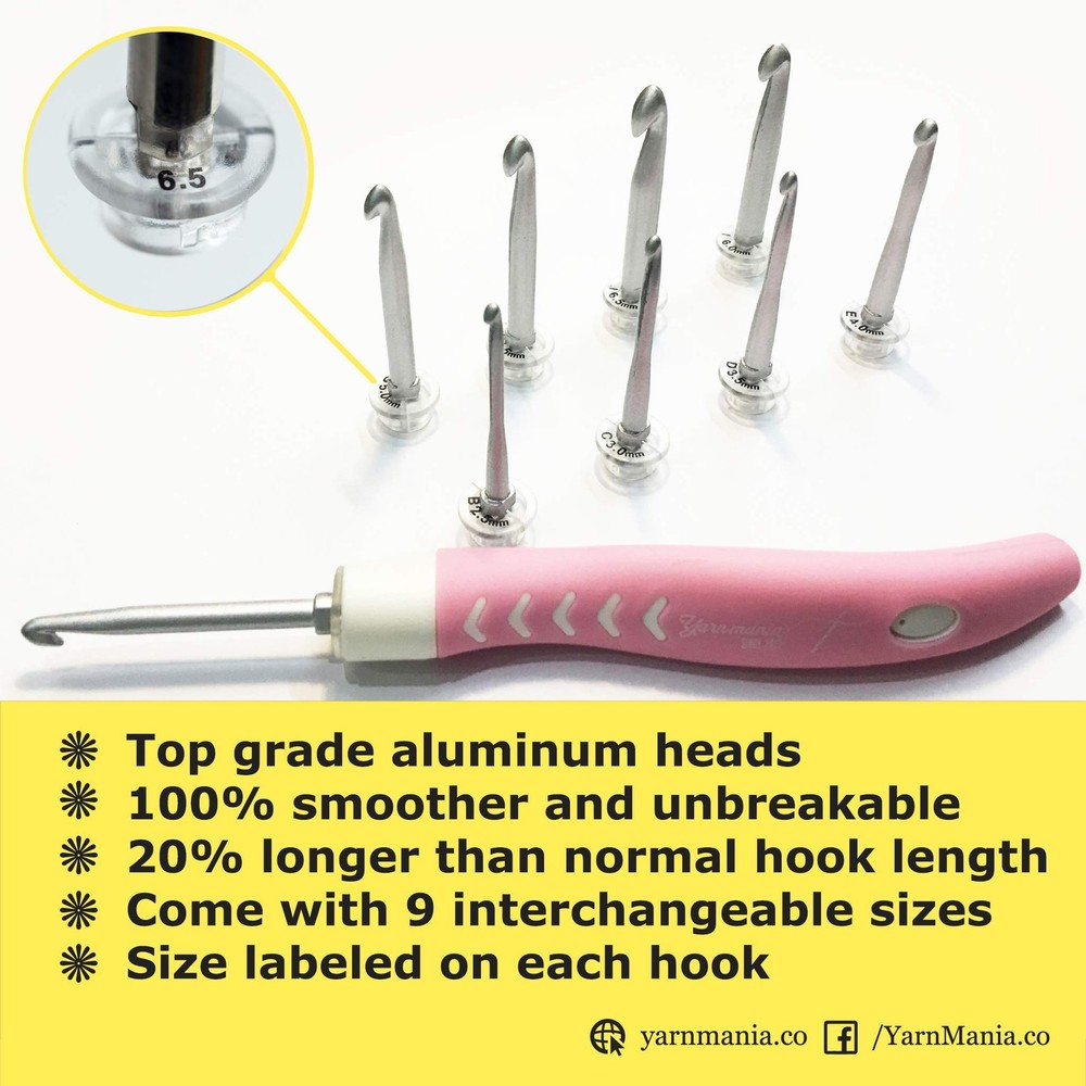These light-up crochet hooks are a game-changer! The rechargeable handle is so convenient, and the adjustable brightness lets me work comfortably even in low light. The 9 interchangeable sizes make it easy to switch between projects, and the grip feels great in my hands. No more straining my eyes—now I can crochet anywhere, anytime. Highly recommend for anyone who loves crafting on the go or in dim spaces!