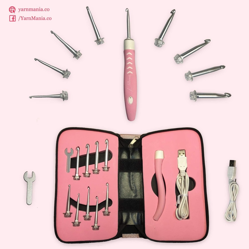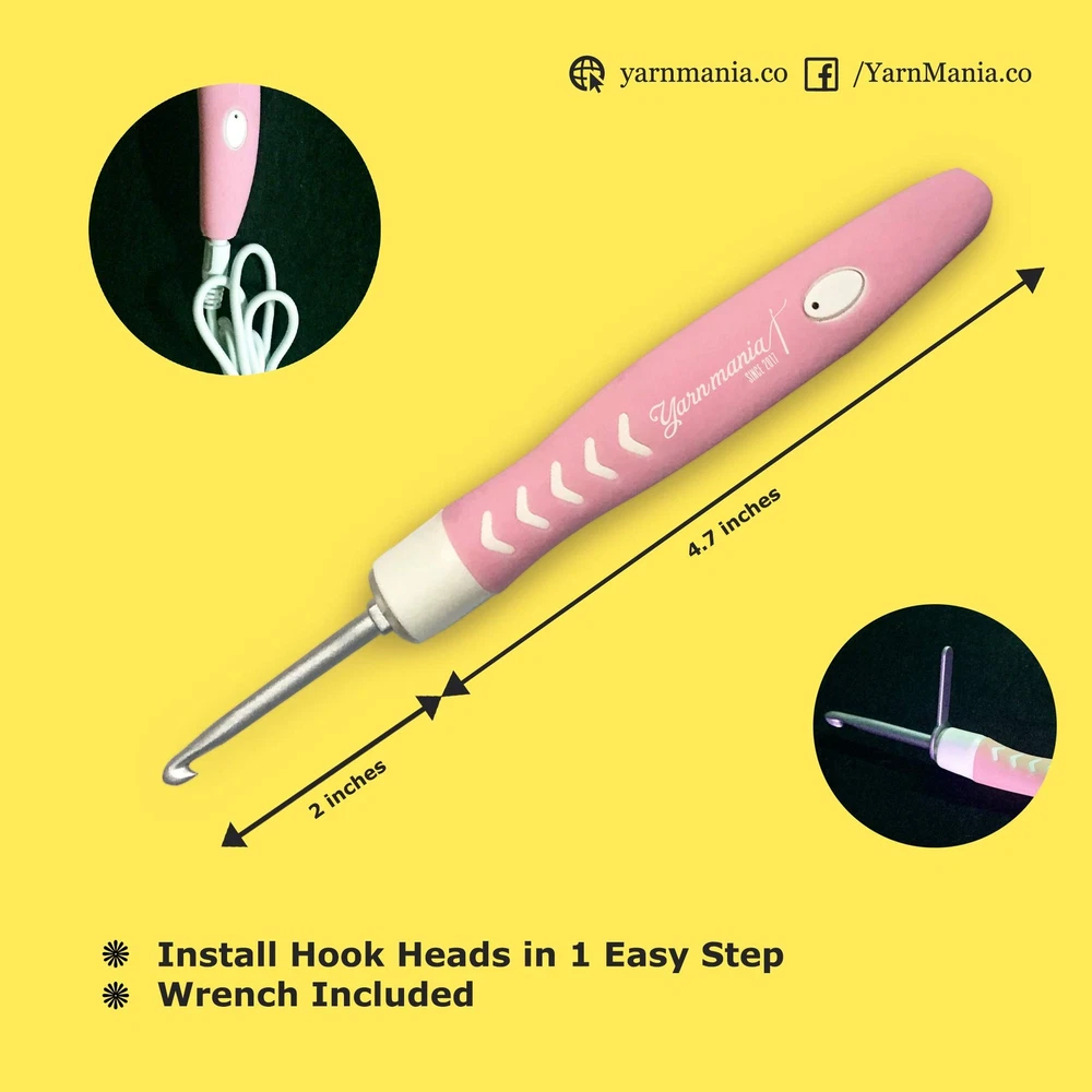 You should never crochet in a dark space. However, you might end up in poorly-lit areas at times, so you won’t be able to crochet properly since you can’t clearly see the patterns, loops, and stitches you’ll be doing. Wouldn’t it be nice to have portable illumination together with your crocheting kit? With our crocheting hooks, you can! They have a rechargeable light-up handle that can be set to bright or dim to match your stitching needs wherever you are. The Light Up Crochet Hooks by lets you crochet anywhere, even in the dark! With only one purchase, you’ll get a complete set of crocheting tools and accessories. This crocheting kit includes a crochet handle, 12 hooks of different sizes (2.0, 2.5, 3.0, 3.5, 4.0, 4.5, 5.0, 5.5, 6.0, 6.5, 7.0, and 8.0mm), a pair of scissors, tapestry needles, stitch markers, and a measuring tape. All of these items come in a storage case made of premium leather with a secure zipper closure. Designed with LEDs with adjustable brightness and a unique, curved body with a silicone cover, the crochet hook holder provides you with ample lighting and an easy yet secure grip as you knit. It can be fully charged within 30 minutes and can last up to 6 to 12 hours, making it perfect to bring when you’re traveling. The hooks are made of sturdy aluminum that’s resilient to rusting, bending, or breaking. No need to worry about buying new crochet hooks anytime soon since ours can last for years to come. Here’s more to love about our complete crochet kit: - One-step installation of hook heads - Includes a mini-wrench for tightening the hooks - Great gift for pros and beginners Knit masterpieces to your heart’s content. Add the Light Up Crochet Hooks to your cart TODAY! A Complete Crocheting Kit - Get a curved crochet handle with LED, 12 interchangeable aluminum crochet hooks, scissors, tapestry needles, stitch markers, a measuring tape, and a premium leather case. Comfortable Grip - The crochet handle has a unique, ergonomic curved design and a soft silicone cover so it's easy to hold and manipulate. This makes it perfect for beginners and users with a weak grip. Durable Construction - Each crochet hook is made of sturdy aluminum material, so it won’t easily bend or break. These crocheting hooks won't quickly rust, so you can own this crochet kit for years. Convenient To Use - The easy-grip handle has a LED light with 2 light settings that have no glazing or blinding effect, perfect for adding illumination or focused lighting as you work on your piece. Quick Charging & Long Lasting - All you need is 30 minutes to fully charge the light up crochet hook handle. One full charge lasts up to 6 to 12 hours, so you can knit a scarf or centerpiece anywhere.