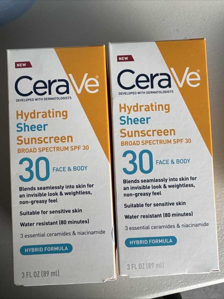 2x CeraVe Hydrating Mineral Sunscreen SPF 30 for Face+Body 3oz Exp 12/26.