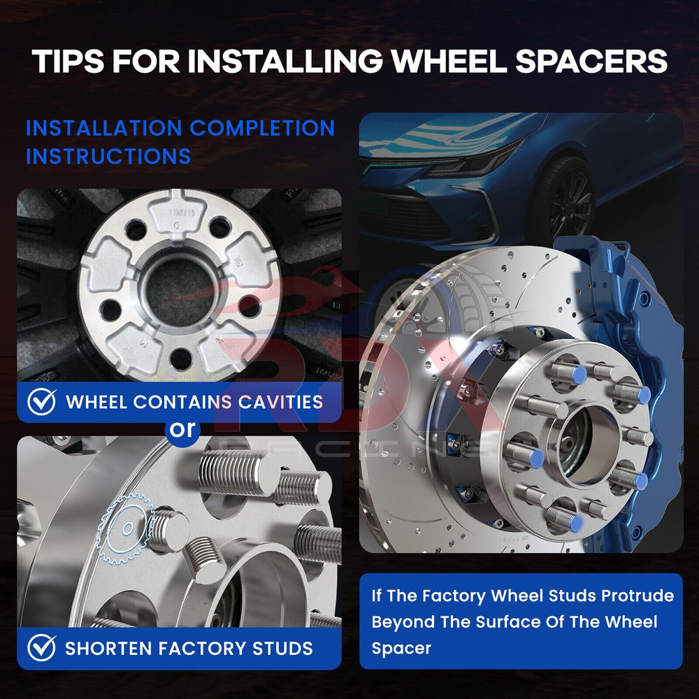 Adapter Thickness: 32mm (1.25 Inch) Each Side Quantity: 2 Pieces Bolt Pattern: 6x127(6x5") & 6x135 (Hub) to 6x139.7(6x5.5'') (Wheel) Center Bore: 87.1mm Thread Pitch: 14mm X 1.5 Adapter Type: Bolt pattern conversion adapter (Lug centric) This adapter set includes open end lug nuts to secure the adapters onto your factory hubs Your Factory wheel studs may extend past the surface of the wheel adapters. In this case you will need to: 1. Adjust the factory studs to a shorter length. 2. Check that the wheels have open slots (cavities) between the fastener holes. 3. Replace the factory studs with a new set of shorter studs.