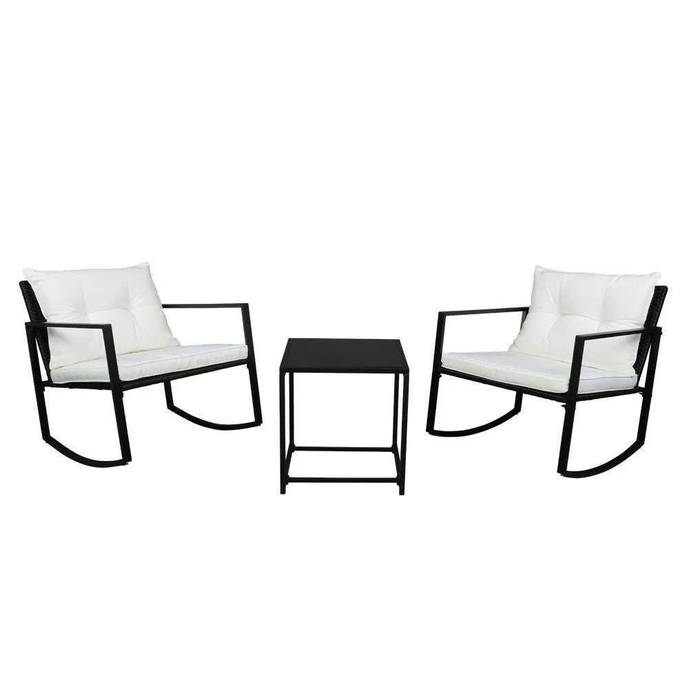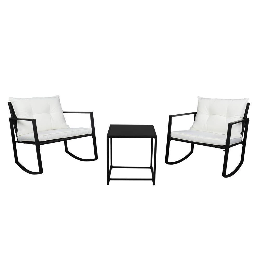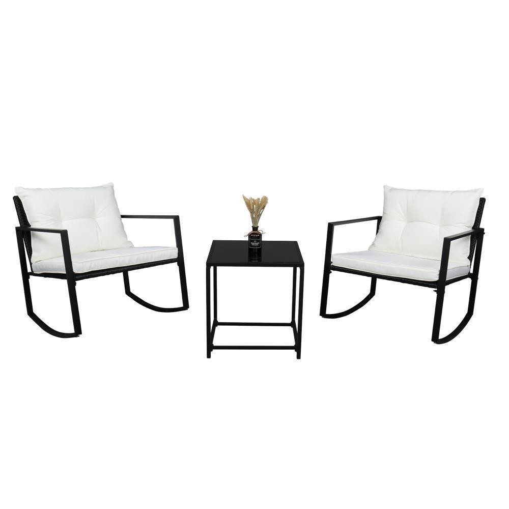 2pc Coffee Table & 1pc Exposed Rocking Chair Set in Black