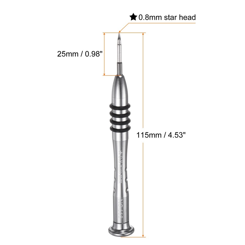 Document The mini magnet screwdriver is made of S2 material, a high-hardness material commonly used in hardware, good for electronic equipment.Ergonomic pen-shaped design aluminum alloy handle provides comfortable grip and excellent control.The tiny screwdriver has a swivel cap at the end of the handle to allow easy and quick use of different screwdriver tips.This small screw driver head features a magnetic design that holds small screws securely in place, preventing them from being lost or misplaced during repairs, allowing you to handle tiny components with precision and efficiency.This pen-style manual screwdriver is suitable for a variety of electronic devices and gadgets, such as repairing cell phones, watches, glasses, cameras, laptops, game consoles, keyboards and other electronic devices.Notice: To prevent damage to the screw and the drill, please do not attempt to turn screws with mismatched sizes. 2pcs 0.8mm Precision Magnetic Star Screwdriver with Aluminum Handle, Silver Tone The mini magnet screwdriver is made of S2 material, a high-hardness material commonly used in hardware, good for electronic equipment. Ergonomic pen-shaped design aluminum alloy handle provides comfortable grip and excellent control. The tiny screwdriver has a swivel cap at the end of the handle to allow easy and quick use of different screwdriver tips. This small screw driver head features a magnetic design that holds small screws securely in place, preventing them from being lost or misplaced during repairs, allowing you to handle tiny components with precision and efficiency. This pen-style manual screwdriver is suitable for a variety of electronic devices and gadgets, such as repairing cell phones, watches, glasses, cameras, laptops, game consoles, keyboards and other electronic devices. Notice: To prevent damage to the screw and the drill, please do not attempt to turn screws with mismatched sizes. Hot Item Payment 1.We accept eBay payment . 2.Payment must be received within 7 business days of auction closing. Shipping 1.We ship to your eBay or Paypal address. Please make sure your eBay and Paypal address is correct before you pay. 2.Items will be shipped within 1-3 business day when we received payment. 3.Delivery time depends on destination and other factors. Description Policy 2pcs 0.8mm Precision Magnetic Star Screwdriver with Aluminum Handle, Silver Tone The mini magnet screwdriver is made of S2 material, a high-hardness material commonly used in hardware, good for electronic equipment. Ergonomic pen-shaped design aluminum alloy handle provides comfortable grip and excellent control. The tiny screwdriver has a swivel cap at the end of the handle to allow easy and quick use of different screwdriver tips. This small screw driver head features a magnetic design that holds small screws securely in place, preventing them from being lost or misplaced during repairs, allowing you to handle tiny components with precision and efficiency. This pen-style manual screwdriver is suitable for a variety of electronic devices and gadgets, such as repairing cell phones, watches, glasses, cameras, laptops, game consoles, keyboards and other electronic devices. Notice: To prevent damage to the screw and the drill, please do not attempt to turn screws with mismatched sizes. Hot Item Payment 1.We accept eBay payment . 2.Payment must be received within 7 business days of auction closing. Shipping 1.We ship to your eBay or Paypal address. Please make sure your eBay and Paypal address is correct before you pay. 2.Items will be shipped within 1-3 business day when we received payment. 3.Delivery time depends on destination and other factors.