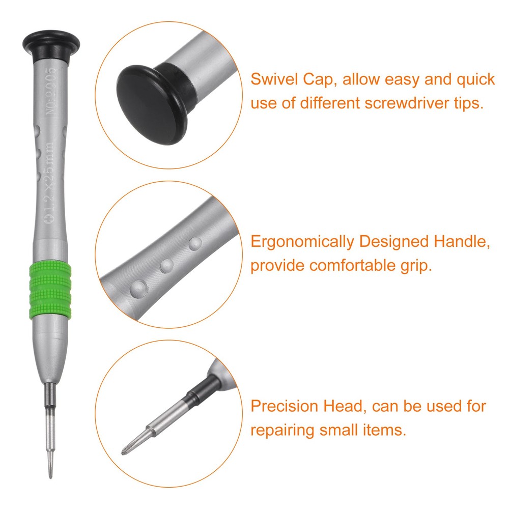 Document The mini magnet screwdriver is made of S2 material, a high-hardness material commonly used in hardware, good for electronic equipment.Ergonomic pen-shaped design aluminum alloy handle provides comfortable grip and excellent control.The tiny screwdriver has a swivel cap at the end of the handle to allow easy and quick use of different screwdriver tips.This small screw driver head features a magnetic design that holds small screws securely in place, preventing them from being lost or misplaced during repairs, allowing you to handle tiny components with precision and efficiency.This pen-style manual screwdriver is suitable for a variety of electronic devices and gadgets, such as repairing cell phones, watches, glasses, cameras, laptops, game consoles, keyboards and other electronic devices.Notice: To prevent damage to the screw and the drill, please do not attempt to turn screws with mismatched sizes. 2pcs 1.2mm Precision Magnetic Phillips Screwdriver with Non-slip Handle, Green The mini magnet screwdriver is made of S2 material, a high-hardness material commonly used in hardware, good for electronic equipment. Ergonomic pen-shaped design aluminum alloy handle provides comfortable grip and excellent control. The tiny screwdriver has a swivel cap at the end of the handle to allow easy and quick use of different screwdriver tips. This small screw driver head features a magnetic design that holds small screws securely in place, preventing them from being lost or misplaced during repairs, allowing you to handle tiny components with precision and efficiency. This pen-style manual screwdriver is suitable for a variety of electronic devices and gadgets, such as repairing cell phones, watches, glasses, cameras, laptops, game consoles, keyboards and other electronic devices. Notice: To prevent damage to the screw and the drill, please do not attempt to turn screws with mismatched sizes. Hot Item Payment 1.We accept eBay payment . 2.Payment must be received within 7 business days of auction closing. Shipping 1.We ship to your eBay or Paypal address. Please make sure your eBay and Paypal address is correct before you pay. 2.Items will be shipped within 1-3 business day when we received payment. 3.Delivery time depends on destination and other factors. Description Policy 2pcs 1.2mm Precision Magnetic Phillips Screwdriver with Non-slip Handle, Green The mini magnet screwdriver is made of S2 material, a high-hardness material commonly used in hardware, good for electronic equipment. Ergonomic pen-shaped design aluminum alloy handle provides comfortable grip and excellent control. The tiny screwdriver has a swivel cap at the end of the handle to allow easy and quick use of different screwdriver tips. This small screw driver head features a magnetic design that holds small screws securely in place, preventing them from being lost or misplaced during repairs, allowing you to handle tiny components with precision and efficiency. This pen-style manual screwdriver is suitable for a variety of electronic devices and gadgets, such as repairing cell phones, watches, glasses, cameras, laptops, game consoles, keyboards and other electronic devices. Notice: To prevent damage to the screw and the drill, please do not attempt to turn screws with mismatched sizes. Hot Item Payment 1.We accept eBay payment . 2.Payment must be received within 7 business days of auction closing. Shipping 1.We ship to your eBay or Paypal address. Please make sure your eBay and Paypal address is correct before you pay. 2.Items will be shipped within 1-3 business day when we received payment. 3.Delivery time depends on destination and other factors.
