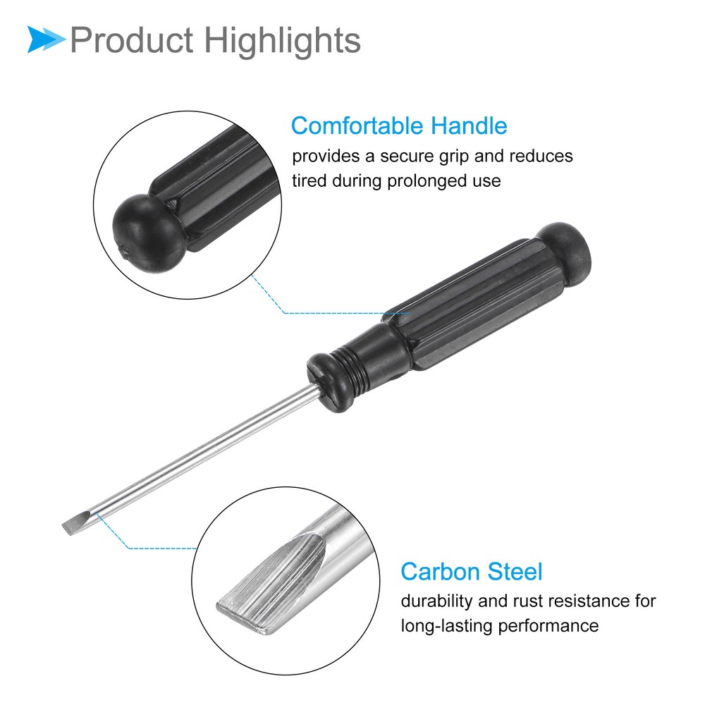 Document Attributes:* Size: 2.5mm* Total Length: 93mm / 3.15-inch* Shaft Material: Carbon SteelWhat Is Included:* 2 Pieces x Micro ScrewdriversApplications & Features:--- This screwdriver is a multifunctional tool suitable for a variety of electronic devices and appliances and can be used on laptops, computers, game consoles, pocket knives, doorbells, dishwashers, routers, and more.--- The screwdriver features a comfortable handle that provides a secure grip and reduces tired during prolonged use--- The screwdriver is made from carbon steel material ensuring strength, durability and rust resistance for long-lasting performance.Useful Tips:--- Please confirm the screwdriver size before buying. 2pcsSmall Slotted Screwdriver 2.5mm 93mm Flat Screwdriver W Black Handle Attributes: * Size: 2.5mm * Total Length: 93mm / 3.15-inch * Shaft Material: Carbon Steel What Is Included: * 2 Pieces x Micro Screwdrivers Applications & Features: --- This screwdriver is a multifunctional tool suitable for a variety of electronic devices and appliances and can be used on laptops, computers, game consoles, pocket knives, doorbells, dishwashers, routers, and more. --- The screwdriver features a comfortable handle that provides a secure grip and reduces tired during prolonged use --- The screwdriver is made from carbon steel material ensuring strength, durability and rust resistance for long-lasting performance. Useful Tips: --- Please confirm the screwdriver size before buying. Hot Item Payment 1.We accept eBay payment . 2.Payment must be received within 7 business days of auction closing. Shipping 1.We ship to your eBay or Paypal address. Please make sure your eBay and Paypal address is correct before you pay. 2.Items will be shipped within 1-3 business day when we received payment. 3.Delivery time depends on destination and other factors. Description Policy 2pcsSmall Slotted Screwdriver 2.5mm 93mm Flat Screwdriver W Black Handle Attributes: * Size: 2.5mm * Total Length: 93mm / 3.15-inch * Shaft Material: Carbon Steel What Is Included: * 2 Pieces x Micro Screwdrivers Applications & Features: --- This screwdriver is a multifunctional tool suitable for a variety of electronic devices and appliances and can be used on laptops, computers, game consoles, pocket knives, doorbells, dishwashers, routers, and more. --- The screwdriver features a comfortable handle that provides a secure grip and reduces tired during prolonged use --- The screwdriver is made from carbon steel material ensuring strength, durability and rust resistance for long-lasting performance. Useful Tips: --- Please confirm the screwdriver size before buying. Hot Item Payment 1.We accept eBay payment . 2.Payment must be received within 7 business days of auction closing. Shipping 1.We ship to your eBay or Paypal address. Please make sure your eBay and Paypal address is correct before you pay. 2.Items will be shipped within 1-3 business day when we received payment. 3.Delivery time depends on destination and other factors.