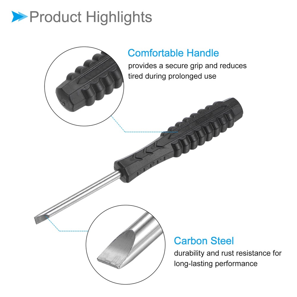 Document Attributes:* Size: 4.0mm* Total Length: 115mm / 3.15-inch* Shaft Material: Carbon SteelWhat Is Included:* 2 Pieces x Micro ScrewdriversApplications & Features:--- This screwdriver is a multifunctional tool suitable for a variety of electronic devices and appliances and can be used on laptops, computers, game consoles, pocket knives, doorbells, dishwashers, routers, and more.--- The screwdriver features a comfortable handle that provides a secure grip and reduces tired during prolonged use--- The screwdriver is made from carbon steel material ensuring strength, durability and rust resistance for long-lasting performance.Useful Tips:--- Please confirm the screwdriver size before buying. 2pcsSmall Slotted Screwdriver 4.0mm 115mm Flat Screwdriver W Anti-slip Handle Attributes: * Size: 4.0mm * Total Length: 115mm / 3.15-inch * Shaft Material: Carbon Steel What Is Included: * 2 Pieces x Micro Screwdrivers Applications & Features: --- This screwdriver is a multifunctional tool suitable for a variety of electronic devices and appliances and can be used on laptops, computers, game consoles, pocket knives, doorbells, dishwashers, routers, and more. --- The screwdriver features a comfortable handle that provides a secure grip and reduces tired during prolonged use --- The screwdriver is made from carbon steel material ensuring strength, durability and rust resistance for long-lasting performance. Useful Tips: --- Please confirm the screwdriver size before buying. Hot Item Payment 1.We accept eBay payment . 2.Payment must be received within 7 business days of auction closing. Shipping 1.We ship to your eBay or Paypal address. Please make sure your eBay and Paypal address is correct before you pay. 2.Items will be shipped within 1-3 business day when we received payment. 3.Delivery time depends on destination and other factors. Description Policy 2pcsSmall Slotted Screwdriver 4.0mm 115mm Flat Screwdriver W Anti-slip Handle Attributes: * Size: 4.0mm * Total Length: 115mm / 3.15-inch * Shaft Material: Carbon Steel What Is Included: * 2 Pieces x Micro Screwdrivers Applications & Features: --- This screwdriver is a multifunctional tool suitable for a variety of electronic devices and appliances and can be used on laptops, computers, game consoles, pocket knives, doorbells, dishwashers, routers, and more. --- The screwdriver features a comfortable handle that provides a secure grip and reduces tired during prolonged use --- The screwdriver is made from carbon steel material ensuring strength, durability and rust resistance for long-lasting performance. Useful Tips: --- Please confirm the screwdriver size before buying. Hot Item Payment 1.We accept eBay payment . 2.Payment must be received within 7 business days of auction closing. Shipping 1.We ship to your eBay or Paypal address. Please make sure your eBay and Paypal address is correct before you pay. 2.Items will be shipped within 1-3 business day when we received payment. 3.Delivery time depends on destination and other factors.