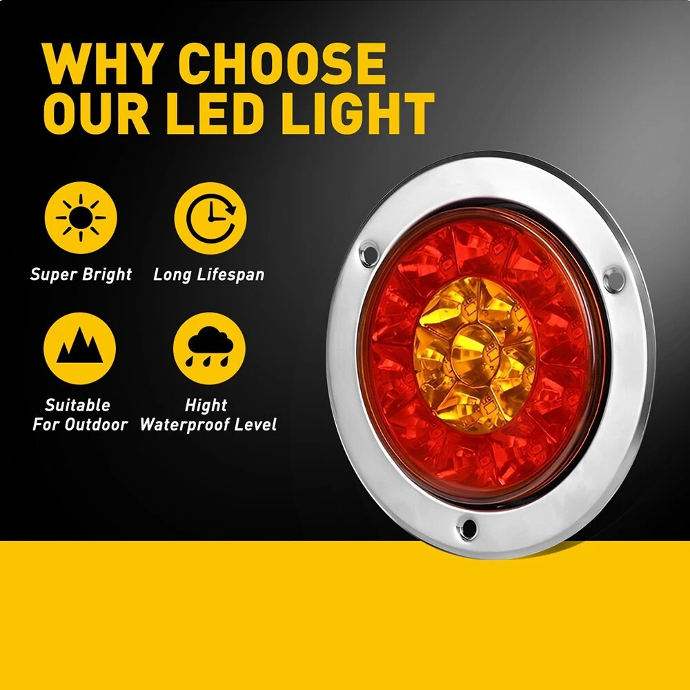 Light Color: Red,Amber Color: Red(10 leds), ,amber(6 leds) Brand: Unbranded gtin13: Does not apply Lighting Type: Trailer Lights Lighting Technology: LED Universal Fitment: Yes Lens Color: Clear Manufacturer Warranty: 1 Year UPC: Does not apply Suitable for: Tail Light, Running Light, Stop Light, Turn Signal Light, etc. Material: ABS & Stainless steel Type: Rear Tail Lights Housing Color: Chrome Voltage: 12V Model: All vehicles with 12V Power Supply To Fit: Tail Lights Items Included: Bulbs Number of Bulbs: 16LEDs per unit Waterproof: IP67 Manufacturer Part Number: Does Not Apply Features: Waterproof Placement on Vehicle: Rear Fitment Type: Performance/Custom