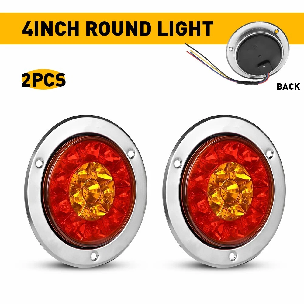 2pcs Amber Red LED Round Tail Light Stop Rear Brake Reverse Truck RV Trailer