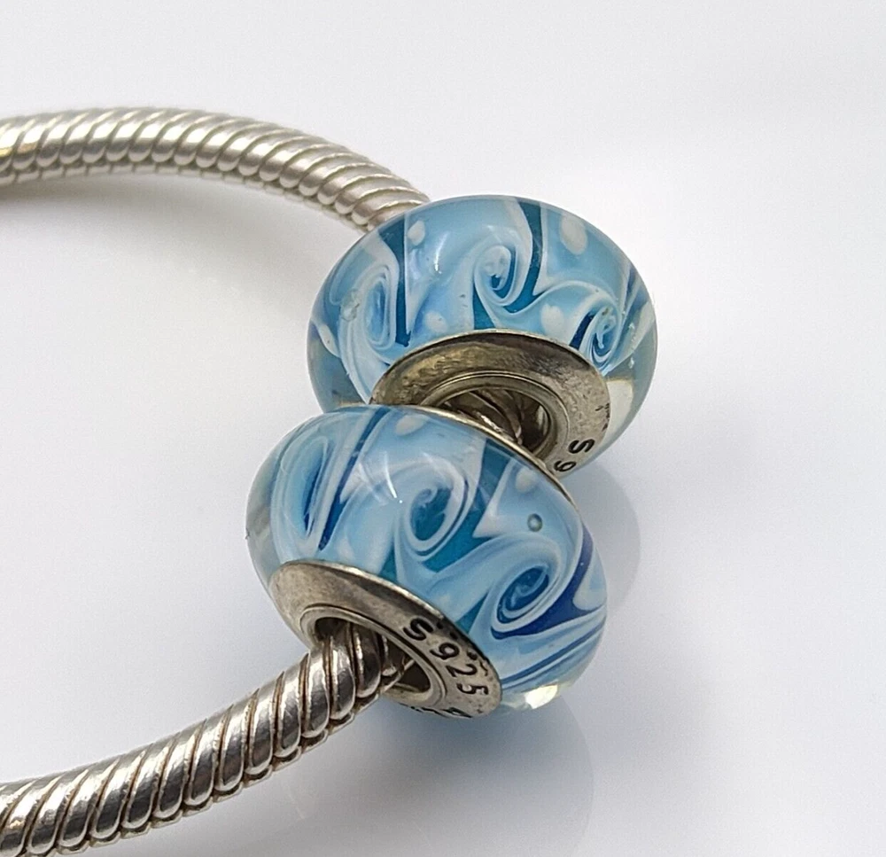 The delicate blue swirl pattern beautifully contrasts with the shimmering silver accents, creating a timeless and versatile piece that complements any style. Crafted with care, these charm beads are the perfect way to personalize your accessories or make a thoughtful gift for the special woman in your life. Elevate her style with these eye-catching Murano glass beads—ideal for birthdays, anniversaries, or any special occasion. With US stock availability, you can enjoy fast delivery and hassle-free service. 100% New and high quality Material: S925 Sterling silver Note: Bracelet and Box NOT INCLUDED, they are just a display. FITS PANDORA, CHAMILIA, TROLLBEADS, AND EUROPEAN STYLE CHARM BRACELETS Help us serve you better—leave your feedback today and be a part of our ongoing improvement!