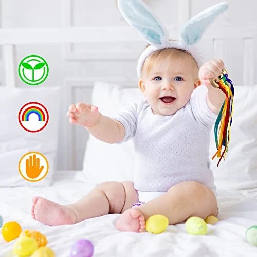 2pcs Baby Natural Wood Bracelet with Bell Rainbow Ribbon Sensory Toy- The Best Sensory Toys for Audiovisual and Motor Development, Encourages Parent-Child Interaction, for Babies Aged 3-24 Months Baby Natural Wood Bracelet with Bell Rainbow Ribbon Sensory Toy Taking care of newborn babies can be challenging, especially when it comes to soothing them and keeping them engaged. If you're struggling with these issues, then the Baby Natural Wood Bracelet with Bell Rainbow Ribbon Sensory Toy might be just what you need. This delightful toy is designed to help stimulate your baby's senses and provide them with a fun and engaging playtime experience. Product Features: Use of natural wood and fabric; Safe, natural, harmless, lightweight and non-toxic. Comes with brightly colored ribbons: It can enrich the baby's color cognition. Each bracelet comes with 3 bells: Shaking will emit a crisp and pleasant bell, which can attract the baby's attention and stimulate the baby's hearing development(note: don't let the baby put the bell in his mouth). Small wooden circle design: With a maximum diameter of approximately 9.5 cm / 3.74 inches, it fits perfectly into your baby's small hands. Don't worry about your baby's hands getting stuck in the small wooden circle while playing. The bracelet is in the shape of a lovely cloud: Can exercise the baby's cognition of shape. Encourage parent-child interaction: Sensory toys exercise sensory development and will capture your baby's attention. At the same time, it is also suitable for parent-child interactive games to enjoy happy parent-child time. Best gift: It's a great gift for baby and mom. The rainbow ribbon bell bracelet toy is the best choice for boys/girls. Will be the best gift idea for family reunion, birthday party or Christmas holiday. Both kids and parents will love and enjoy these toys. Warm reminder: Since the baby's teeth are in the development stage, please don't let the baby bite the natural wooden rainbow ribbon bracelet toy. You can remove the bell and ribbon when biting. ★ Composed of natural wood materials and fabrics, it is strong and resistant to falls. The toy is finely polished, smooth and rounded in appearance, and without any odor or irritation, it will not harm the baby in any way. ★ The maximum diameter of the grip ring is about 9.5 cm/3.74 inches, so there is no need to worry about your baby's hands getting stuck and causing harm to your baby. ★ Soft ribbons and bright colors can stimulate your baby's visual abilities during play, helping them exercise their observation and coordination skills earlier. The bell attached to the bracelet will emit a crisp and pleasant "Jingle Bell... Jingle bells..." sounds, which can attract your baby's attention and help them exercise their hearing and reaction skills earlier. ★ You can shake the bracelet toy around the baby to attract the baby to come and play with the toy. While playing games with the baby, it can exercise the baby's crawling ability, which can be beneficial for the baby's growth. ★ This is the best sensory toy gift for boys/girls. Use it to play interactive games with your baby, encourage your baby's creativity, exercise your baby's audiovisual reactions and movements, and help your baby grow happily and healthily. Shipping from the USA All of our products are shipped from the USA, ensuring quick delivery to your destination. Payment We offer the following payment methods: PayPal, credit card, bank transfer, and eBay's secure payment system. Free Shipping & Free Returns Shipping within the USA is FREE. Additionally, any return is absolutely free for you. Risk-Free Purchase You have the option to return an item within 30 days without any justification. We cover the return shipping costs! Fast Shipping We ship immediately upon receipt of payment. Generally, the package is delivered within 2-3 days in the USA. If it takes longer, we will contact you. Quality and Costs Made in Europe, USA, China No customs fees or additional charges Total satisfaction guarantee Invoice with declared VAT available upon request in .pdf format Feedback Your feedback is very important to us. After you pay for your purchase, you will automatically receive positive feedback from us.