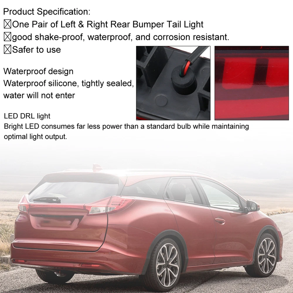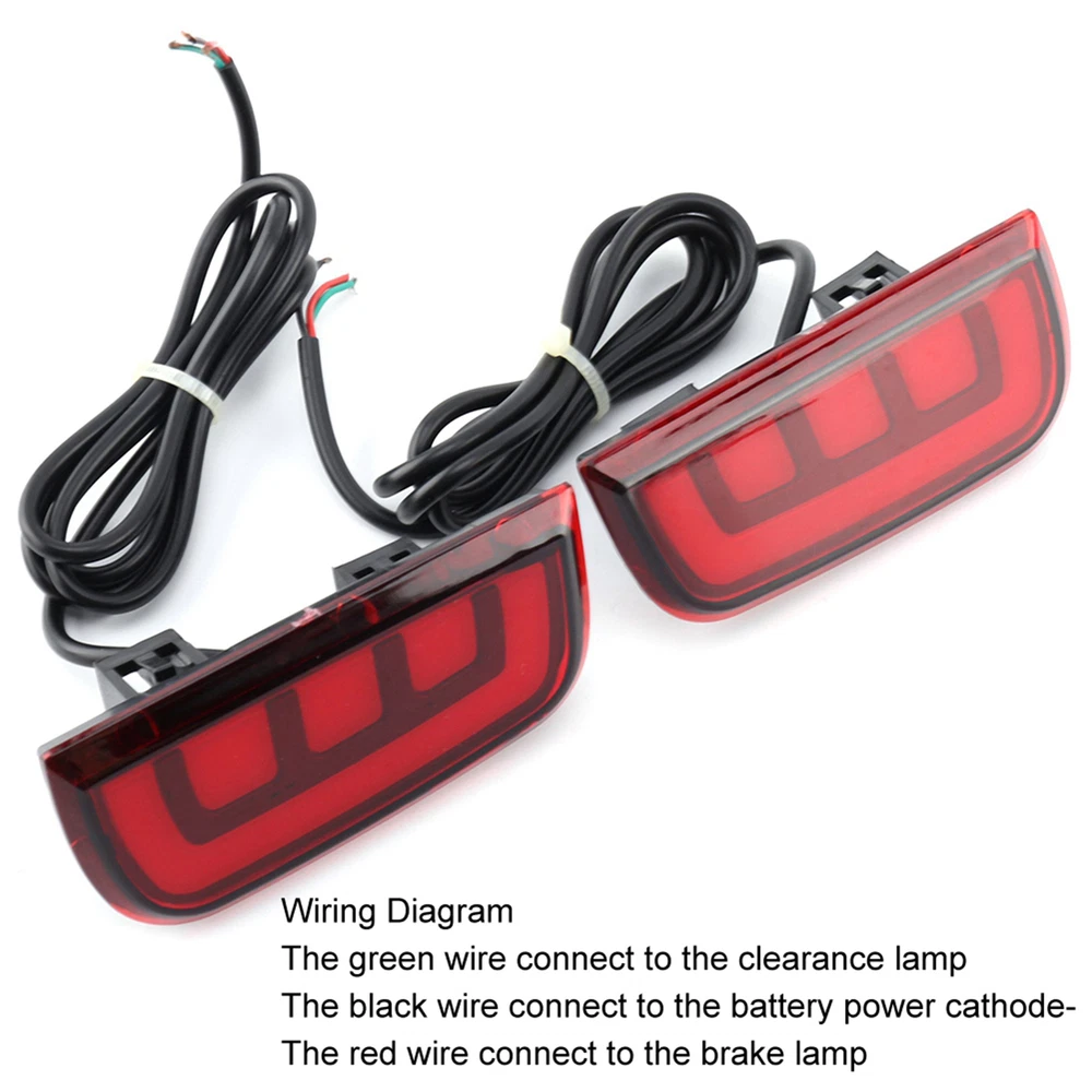 Features: Bright LED consumes far less power than a standard bulb while maintaining optimal light output. Rear bumper tail light improves safety while driving. It allows your vehicle to be seen at much further distances. Greatly improves reaction time of oncoming motorists in an accident. Advanced constant current technology, well-distributed luminescence. Longer life LED up to 50,000 hours, minimal maintenance cost. Support 2 functions: daytime running light / brake lamp. Oxidation treatment on surface. Nice appearance with good shake-proof, waterproof, and corrosion resistant. High quality ABS plastic material, waterproof reflector for all road weather conditions. Easy to install, perfect match for the original car. Specification: Condition: 100% Brand New Material: ABS, LED Housing Color: Black + Red Light Color: Red Color Temperature: 6000-6700K Power: 0.5W/each Rated Working Current: ≤300mA Current Stability: ≤±2mA (within 24 hours) Brightness: 45-55LM/W Life-span: 5,0000hours Working Voltage: DC 12V Rated Input Current: <1A Total Rated Power: <10W( Based on the models ) Working Temperature: -40°C~60°C Storage Temperature: -5℃-80℃ Waterproof: With reverse polarity protection and open circuit protection Fitment: for 2016-2017 Wiring Connection: The red wire connect to the brake lamp The black wire connect to the battery power cathode- The green wire connect to the clearance lamp Package list: 1 * Pair of Rear Bumper Tail Light (Left&Right) 6 * Cable Clamp Notes: 1. Please kindly confirm the fitment before ordering to make sure this item is perfectly fit. 2. Please note this item only fit the original rear bumper, professional installation may required. 1. Our listing price includes the value of goods,packaging cost,and export taxes,not including international duties. 2. duties,taxes,and charges are not included in the item price or shipping fee. 3. T he duties are buyers' responsibility .Please check with your country's customs office determine what these additional costs will be prior to your purchase. 4. All disputes arising from the duties will be submitted to ebay for solution. 1. Any questions, pls. contact us via ebay message or email us. We will reply your message within 48 hours. 2. If you are satisfied with our service, pls. kindly leave us a positive feedback and give us the Detailed Seller Rating with all " 5 " in very area 3. Our aim is to provide Level Customer Service, your recognition will encourage us greatly and serve you better. We strive to keep all our customers satisfy. We will do our up most to exceed your expectations in customer service, communication and dispatching of your orders. On 17/12/2024 at 14:37:35 AEDT, seller added the following information: