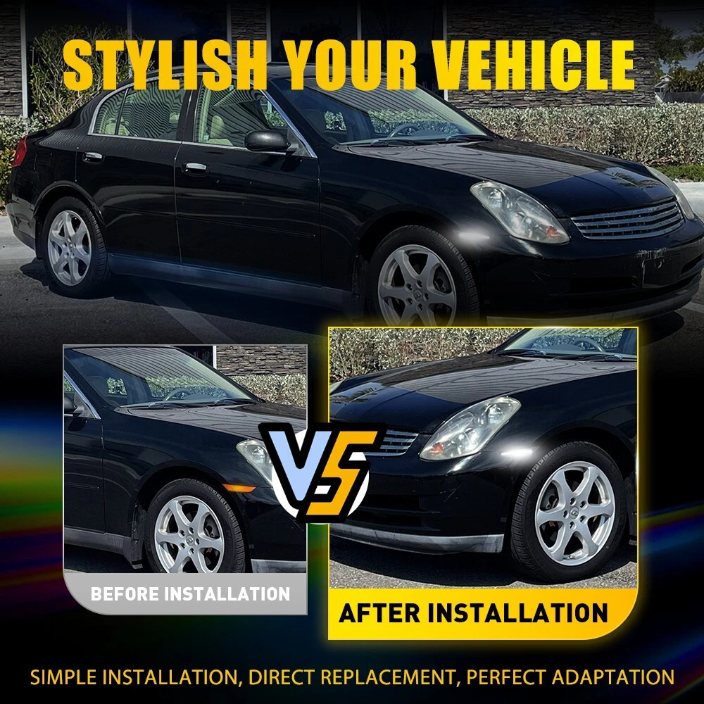 These LED side marker lights are a perfect upgrade for my G35 sedan! The smoked lens gives a sleek, modern look while the bright white LEDs are super sharp and visible. Installation was a breeze—they fit exactly like OEM. Love that they’re waterproof and built to last. No flickering or issues so far, just a clean, premium finish. Highly recommend for anyone wanting to refresh their ride!