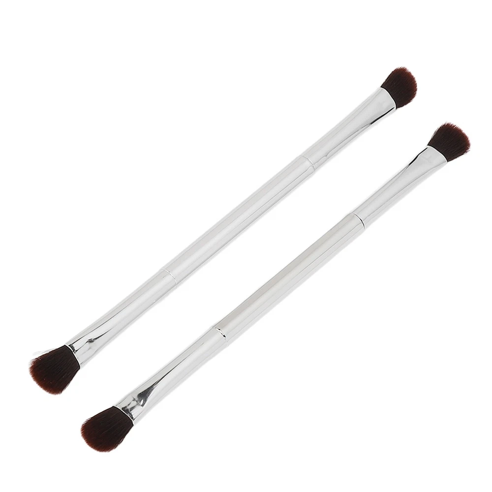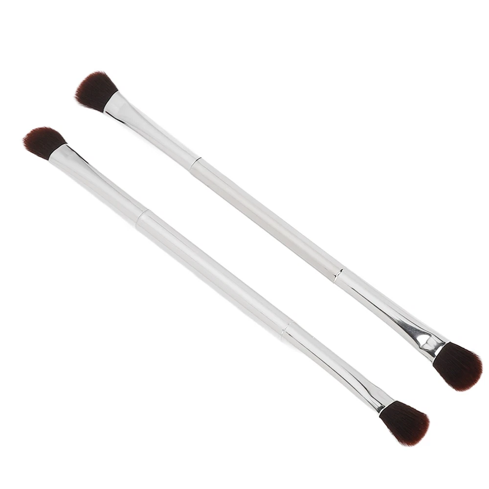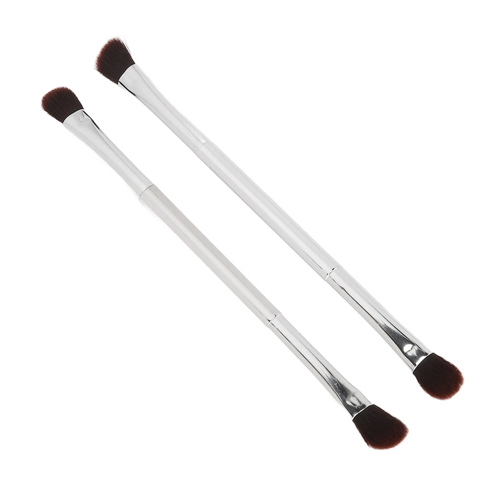 2pcs Double Ended Eyeshadow Brush Set Silver Makeup Soft Fiber Hair Nose Contour