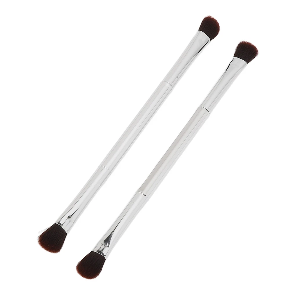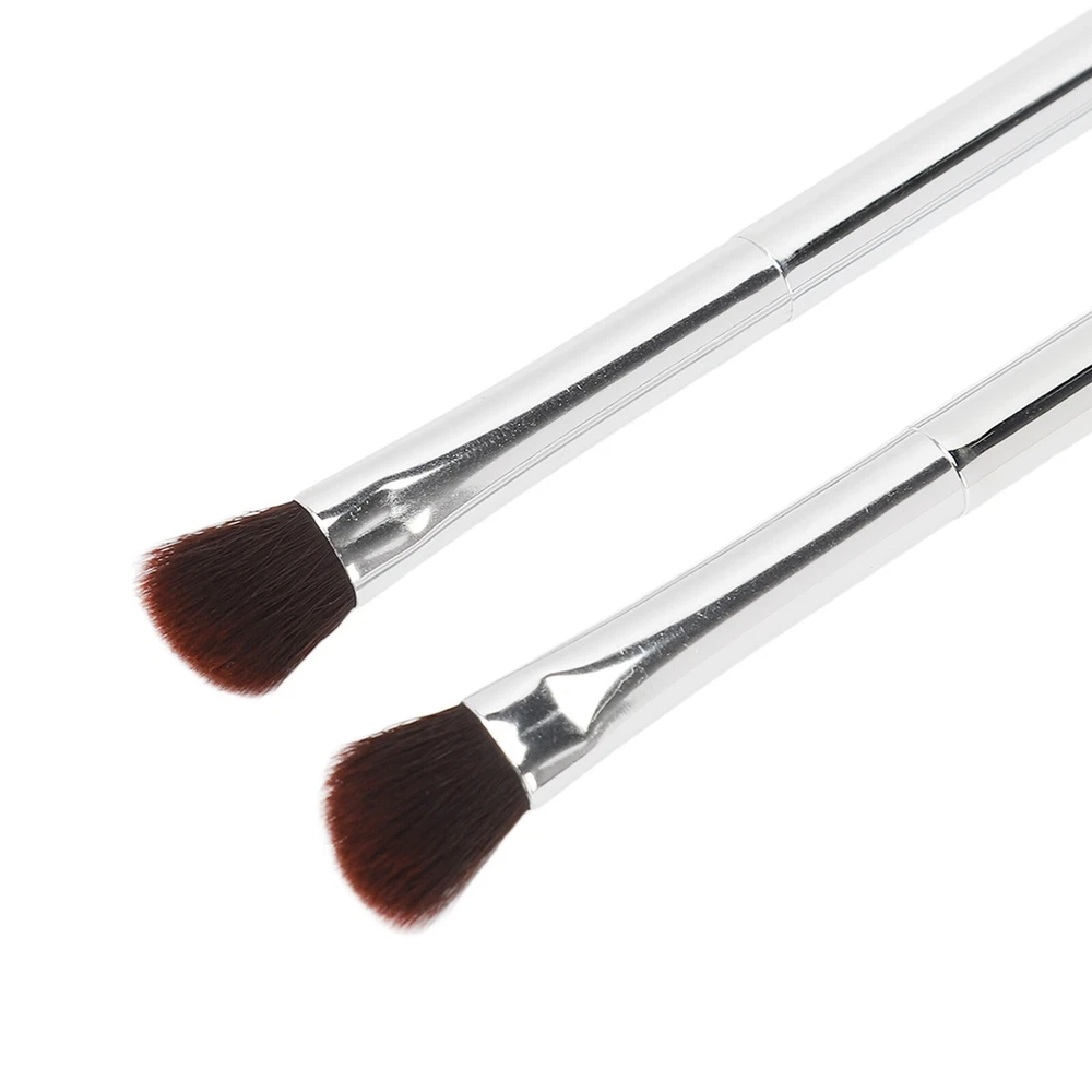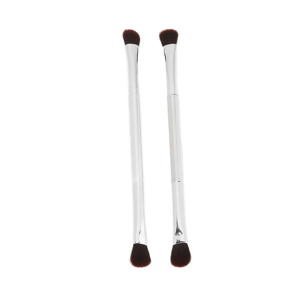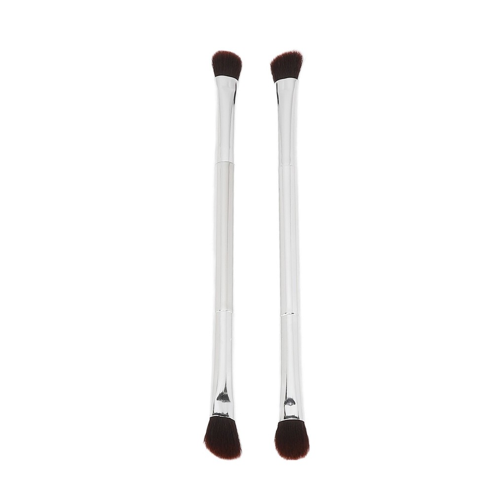 2pcs Double Ended Eyeshadow Brush Set Silver Makeup Soft Fiber Hair Nose Contour
