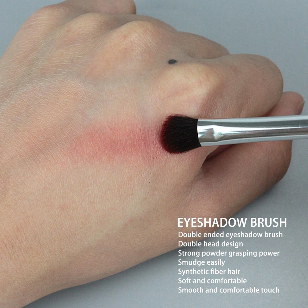 Feature: 1. EYE MAKEUP: Eyeshadow brushes are mainly used to apply eyeshadow to the eyelids, help create delicate eye makeup look, suitable for makeup artist and women. 2. DOUBLE END DESIGN: Can be used as eyeshadow brush and nose contour brush. 2pcs of makeup eyeshadow brush are available, meet your use and replacement needs. 3. EVEN POWDER GRASPING: Synthetic fiber hair, soft and skin friendly, smooth and comfortable touch, strong powder grasping power, flexible and convenient for use. 4. ELECTROPLATED HANDLE: Nose contour brush handle adopts vacuum electroplating process, ergonomic design, easy to hold and use. Aluminum die casting tube mouth, securely fix the brush hair. 5. MULTIPLE APPLICABLE SCENARIOS: Light weight and in small size, easy to store and carry, can be easily put into makeup bag, perfect for home, stage performance, wedding party, etc. Specification: Item Type: Eyeshadow Brush Material: Fiber Hair Color: Silver Package List: 2 x Eyeshadow Brush