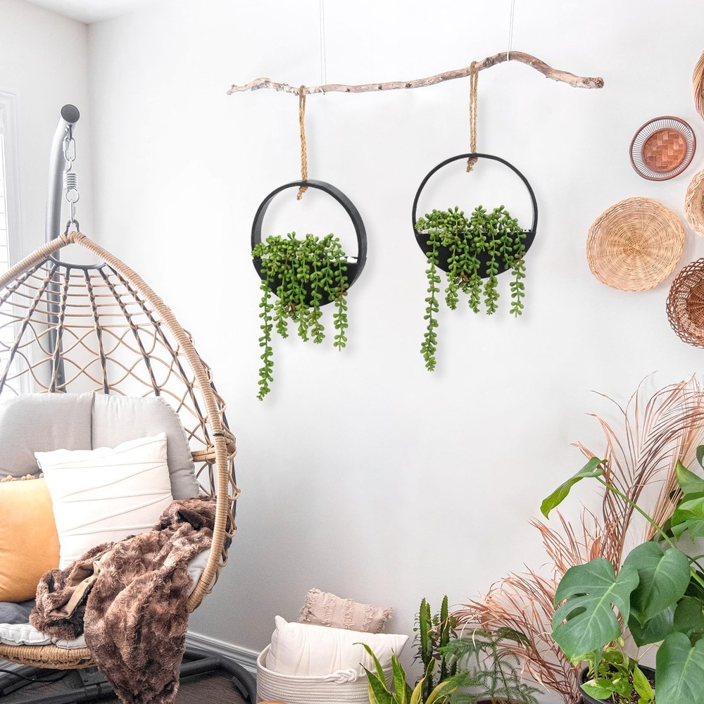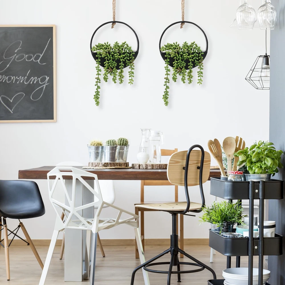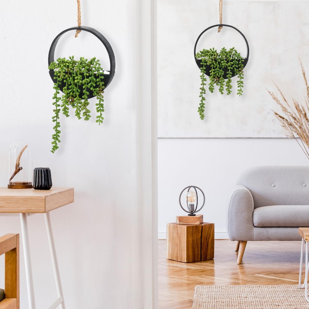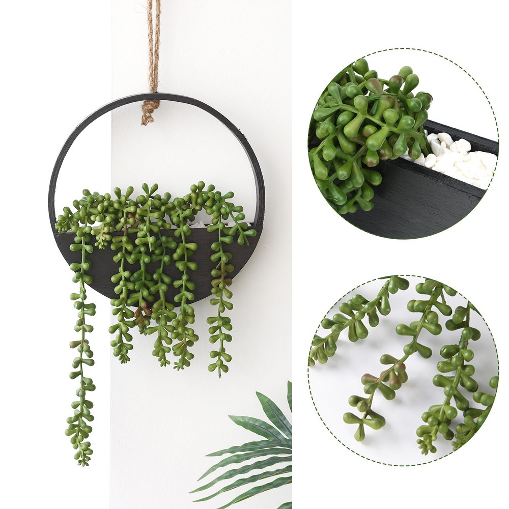 These artificial hanging succulents are absolutely charming! The vibrant green pearls look so realistic, and the wooden planter adds a rustic touch. At 12 inches long plus extra hanging string, they’re perfect for shelves, windows, or empty corners. The quality is impressive—durable plastic that stays fresh-looking without any maintenance. Love that each set comes with two plants, making it a great value. They arrived safely packed in a sturdy box, ready to brighten up any space instantly. No watering, no fading—just effortless beauty!