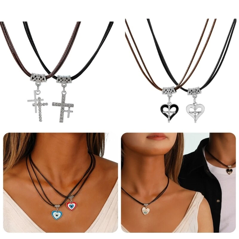 2pcs Fashion Heart Cross Pendant Necklace Clavicle Chain Couple Jewelry Features: The length of the pendant chain can be adjusted according to needs, suitable for different neck sizes. Alloy+Wax Rope material, it is comfortable to wear without putting pressure on the neck. The is simple and elegant, suitable for pairing with various clothing styles, showcasing individuality and fashionable temperament. Suitable for couples to wear, symbolizing mutually love and commitment. It can also be given as a to showcasing friendship and blessings. Suitable for important dates such as couple anniversaries and Valentine's Day, adding a warm Can be used as a birthday or Valentine's Day Specifications: Alloy+Wax Rope X3113/X3114/X3117/X3084/X3116/X3118 Size: As Shown In The Picture Package Includes: 2x Necklace note: Please allow 1-2cm errors due to manual measurement, make sure that you do not mind before you order. Due to the difference between different monitors, the picture may not reflect the actual color of the item.
