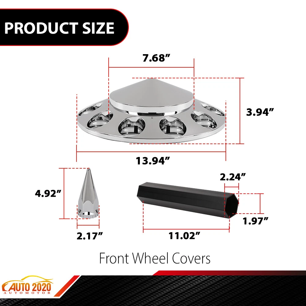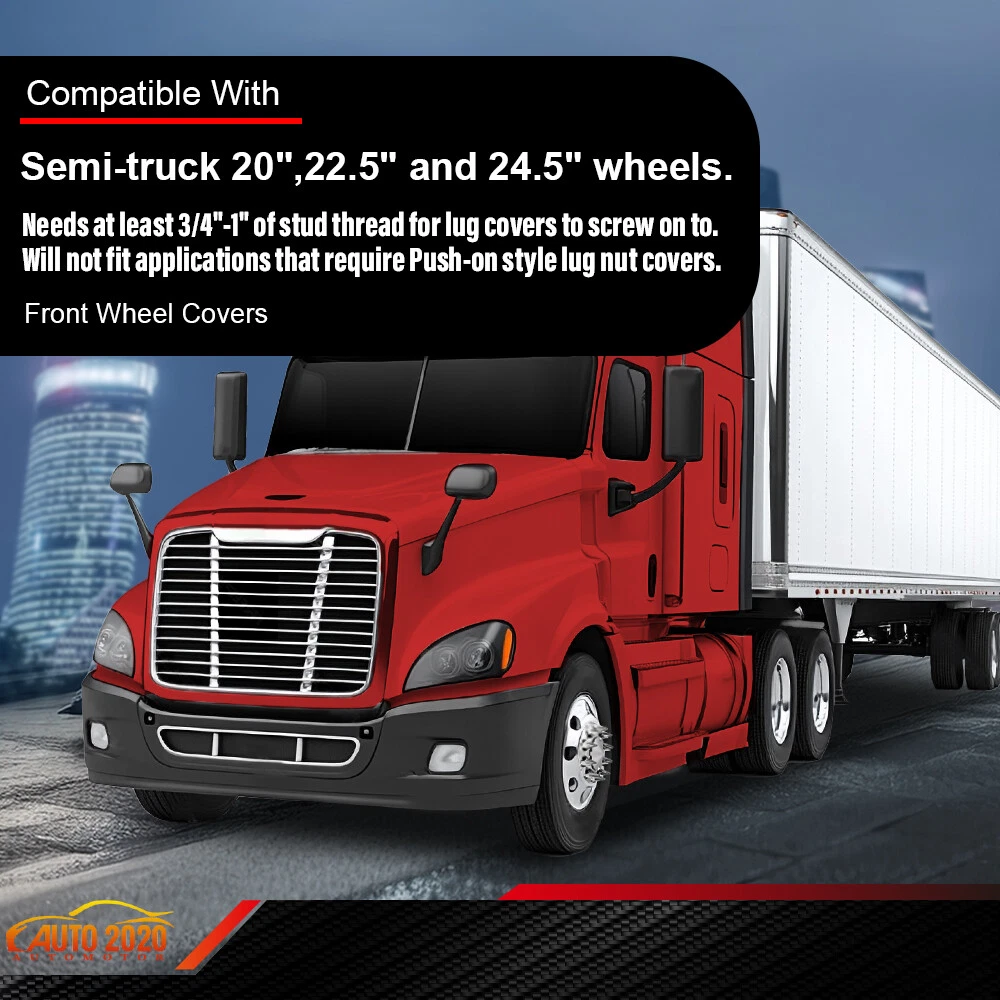 AUTOMOTO PRODUCT 2pcs Fit For Chrome Semi Truck Front Hub Wheel Cover Nut Covers Spiked 33mm Product Introduction Title: Front Wheel Covers Application: Fit For Semi-Truck 20",22.5"and 24.5" Wheels. Needs at least 3/4"-1" of stud thread for lug covers to screw on to. Will not fit applications that require Push-on style lug nut covers. Please confirm the item whether matches your vehicle in the compatibility table before purchase. Description: 100% brand new and high quality Easy To Install and durable use. High Quality Materials and High Quality Product. Direct pricing by the factory, no price increase by the middleman. Limited life guarantee for workmanship and defects. No Installation Guide or Instruction Included. Color: Silver, as the picture Warranty: 1 Year Quantity: 1 Pair Material: ABS Plastic Package include: 1 Pair Front Wheel Covers ( If not shown in the photo, it is not included. ) Note: All of the items in our shop will come to you with the tracking number If any question, pls contact us on eBay freely, we'll reply you in 2 business day. Visit shop home WELCOME to our ebay shop CONTACT US We Open 7 Days A Week ABOUT US ABOUT US: Welcome to GPLUS's eBay Store. We specialize in aftermarket automotive car parts and is the #1 industry distributor for affordable and quality products. Welcome to GPLUS's eBay Store. We specialize in aftermarket automotive car parts and is the #1 industry distributor for affordable and quality products. Welcome to GPLUS's eBay Store. We specialize in aftermarket automotive car parts and is the #1 industry distributor for affordable and quality products. SHIPPING Shipping Information All items will ship within 24 hours (Monday - Friday). Payment cleared/received on Friday will be shipped on the next business days (Monday or Tuesday). We are not responsible for carrier transit time. This information is provided by the carrier and excludes weekends and holidays. Note that transit times may vary, particularly during peak periods or in climate weather conditions, and that delivery times frames will need to be extended for any processing time frames in excess of 1-2 business days. excess of 1-2 business days. International Shipping: International buyers are responsible for possible customs fees, brokerage fees or duty fees. We would appreciate for understanding of tracking number would not be updated in between the city of departing in the U.S. and the city of destination. ATTENTION Cargo transportation Double check shipping address. We are not responsible for incorrect or undeliverable addresses. Please use Shipping & Payments tab on top of page for shipping details for your location. Transaction will be held until a full shipping amount received. Shipping address Some of the packages cannot be delivered to a PO Box. Customer is responsible to ensure PO Box address given is deliverable by the shipping company. Package will be held until a valid physical address is provided. Customer assumes shipping charges incurred in shipping to undeliverable address. Customs duties International buyers are responsible for all customs duties, taxes, and other applicable fees incurred by the country's customs/border regulations. Please contact customs for more information. We are not responsible for any changes to address after item has been shipped. RETURN please notify us within 30 days after you've received your purchased item. Return Policy: Buyers pay for return shipping fee. Items to be returned must be in resalable condition.14 Days money back, please notify us within 14 days after you've received your purchased item. If your order has been received and it is not what you ordered, or if your item has a manufacturer defect, please contact us within 14 days from delivery date. And you must contact us to request an Return Merchandise Authorization Number (RMA). No return package will be accepted without a valid RMA number. All products are covered by our warranty against defects. EMAIL click here for questions All return requests must be submitted through your eBay account. Iterms and Condition For emissions related items, please check with your local jurisdiction for emission specific requirements before purchasing. All items do not come with installation instruction unless otherwise specified. If item is questionable, please consult your local professional/mechanic before making purchase. On Feb 11, 2025 at 09:42:40 PST, seller added the following information:
