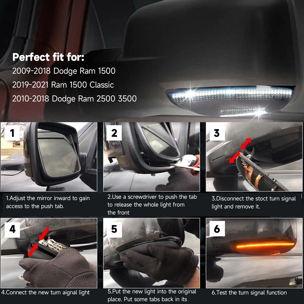 Reliability Meets Performance with Our High-Quality Car Parts Store Home New Arrival Ending Soon Add to Favourites View Feedback Contact us Store Categories Other Excavator Water Pump Transmission Parts Car Audio & Navigation System Window Parts Drive Shaft Assembly Ignition System Engine Overhaul Kits & Parts AC Compressor AC Compressor Clutch Kits AC Condenser Fuel Injectors Automotive interior Engine mount & Other Accessory Pistons & Rings Set Radiator Power Steering Pump Power Steering Rack & Pinion Sensor System Turbocharger Camshaft Headlight Alternator Side Mirrors Carburetor Air Suspension Control Arms Intercooler Catalytic Converter Fuel Pump Other Auto accessories Crankshaft & Connect Rods Brake Calipers Solenoid Valve Wheel Bearing Assembly Timing Chain Kit Throttle Body Oil Pump Starter Motor Payment Options 2pcs LED Side Mirror Turn Signal Puddle Lamp For Dodge RAM 1500-3500 68064948AA Item Description Feature: 100% Brand new and quality Smoked Black lens Color: Dynamic Amber (While turn signal is switched on); Xenon White (When side mirror bottom light is switched on) Good for 2009-2018 Dodge RAM 1500, 2019-2022 RAM 1500 Classic & 2010-2018 Dodge RAM 2500 | 3500 Full of dynamic super bright light strip repeater sequential blink flash indicator Direct replace the factory OEM LH RH mirror turn signal with this smoked lens LED Replace the original clear lens with LED strips lamps in smoked lens Give your Dodge an unique premium Sport style with excellent LED lighting and increased safety and style! Specification: Type of Lights: Dual Colors LED front side mirror signal light lamps Material: Durable Black & Clear ABS Housing Waterproof: IP67 Lens color: Smoked Light color: Amber & White Installation position: Front Side Mirror Lamps Ultrasonically sealed Work Temperature:-40 - 60 centigrade degree Voltage:12-24V DC; Power: 3W Fitment: For 2009-2018 Dodge RAM 1500 For 2019-2022 RAM 1500 Classic For 2010-2018 Dodge RAM 2500 | 3500 US Warehouse Contact us Shipping Payment Returns About us We are committed to providing our customers with an efficient and fast logistics experience. Once you place your order, we will arrange to send out your order as soon as possible within 24 h. Please make sure your address is accurate when placing your order. We accept PayPal , Visa and so on. All major credit cards are accepted through secure payment processor PayPal. NOTE : Import duties, taxes are not included in the item price or shipping charges. These charges are the buyer's responsibility. Please check with your country's customs office to determine what these additional costs will be prior to bidding buying. If the product has quality problems, shipping costs for return or exchange will be covered by us but please make sure the product is in its original packaging and in good condition. If you want to return it for your own reasons, you need to bear the shipping cost. Refund for return will be issued within 3 business days after we receive the product. And we offer: 1. One-Year Warranty 2. Technical Support Please stay in touch for after-sales support. We value every customer and order. Our products have high quality. The scope includes various controllers, monitors, main valves, water pumps, air compressors, gasket kits, cooling parts, etc. In addition, we also have professional excavator diagnostic tools and maintenance instructions, as well as maintenance services for controllers and monitors. We also have reliable after-sales service. We are committed to creating products that satisfy our customers and ensuring that every purchase provides them with a perfect experience.
